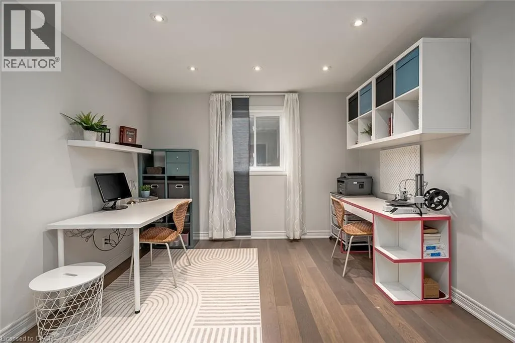 Lakeshore Road to Pine Cove Road to Sprue Avenue Located in the heart of Roseland, this beautifully renovated and redesigned home offers a rare layout for the neighbourhood with 4 spacious bedrooms and 3 full bathrooms above grade, surrounded by everything that makes this community one of Burlingtonâs most desirable places to live. With over 2,400 sq. ft. of finished living space, the home sits on a large, private lot just steps from top-rated schools including John T. Tuck, Nelson High School, St. Raphael, and Assumption High School, as well as Roseland Park Country Club, tennis courts, waterfront parks, and scenic walking trails. Recently transformed with extensive renovations, the home features a stunning great room addition complete with vaulted ceilings, large windows, and a cozy gas fireplace, creating the perfect space for family gatherings and entertaining. The open-concept kitchen offers abundant cabinetry, high-end appliances, and beautiful finishes. Additional upgrades in recent years include all three full bathrooms, engineered hardwood flooring, pot lights, windows, furnace, roof, and a stone patio in the backyard. Designed with both family living and work-from-home flexibility in mind, the main floor includes a spacious living room, dining room, and dedicated home office. The finished lower level provides additional living space with a rec room and laundry area. Completing the home is a double garage and a large private backyard surrounded by mature trees, offering a peaceful outdoor retreat. A fantastic opportunity to own a move-in ready home in one of Burlingtonâs most sought-after neighbourhoods. (id:27476)