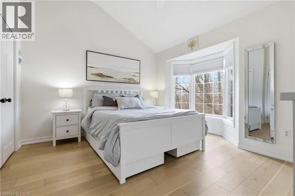 Breathtaking Views From This Very Private Ravine Lot With No Rear Neighbours! This Bright And Spacious Home Offers A Serene And Intimate Living Space With Vaulted Ceilings, Bay Windows, A Gas Fireplace And Walk-out To A Large Patio Overlooking Greenspace. The Open-Concept, Kitchen-Living-Dining Area Is Prefect For Entertaining. Upstairs, You'll Find Two Generous-Sized Bedrooms, A Newly Renovated 4-Piece Bathroom (2023) And The Convenience Of Upstairs Laundry (Purchased in 2025). Other Updates Include New Garage Door, Front Door Lock, Staircases, Fresh Paint And Upgraded Light Fixtures. The Finished Lower Level With Bathroom And Garage Access Provides Extra Living Space Or Third Bedroom. Ideally Situated Near Shops, Hwy, Restaurants & Entertainment, This Home Delivers An Unparalleled Maintenance Free Retreat With Snow Removal, Leaf Blowing, Window Cleaning, and more. Managed By Condo! (id:27476)