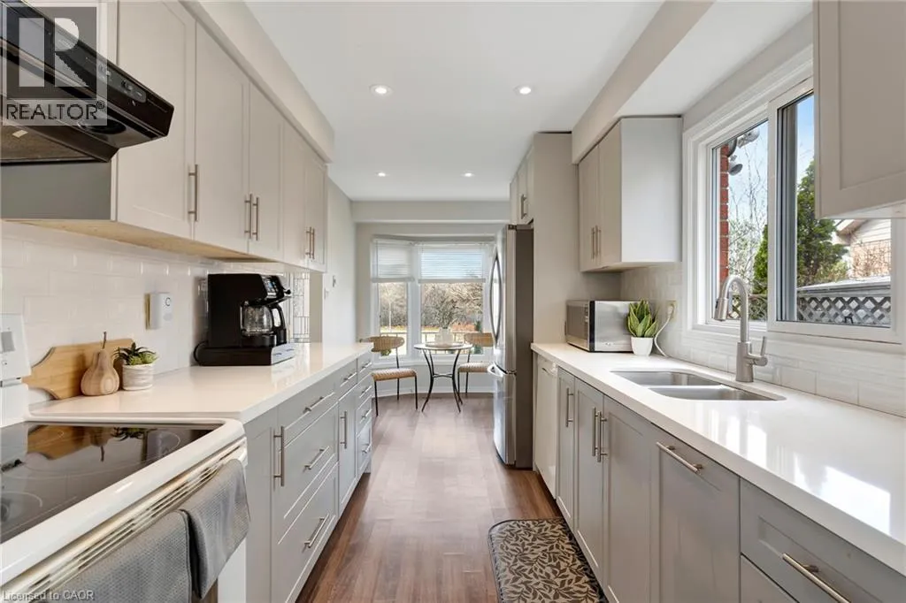 Welcome to this lovely family home located in the highly desirable, family-friendly Headon Forest neighbourhood. This well-maintained 4-bedroom home features a beautifully updated galley kitchen complete with quartz countertops and stainless steel refrigerator, stove, and dishwasher. The kitchen opens to the dining area with a patio door leading to a private, fully fenced backyardâperfect for entertaining or relaxing outdoors. The spacious living room is filled with natural light from the large front window, creating a warm and inviting atmosphere. The main floor also includes a convenient 2-piece powder room, a laundry area, and a side entrance with access to the yard. The second level offers a comfortable primary bedroom along with three additional bedroomsâideal for children, guests, or a home officeâand a well-appointed 4-piece main bathroom. The partially finished basement provides excellent additional living space, featuring a large recreation room, an updated 3-piece bathroom, and potential for a fifth bedroom if desired. This versatile space is ready for your finishing touches. The property includes a single-car garage and a driveway that accommodates two additional vehicles. Ideally situated close to Timothy Christian School, Notre Dame Catholic Secondary School, and C.H. Norton Public School, as well as Ireland Park, St. Paulâs Church, walking trails, shopping, restaurants, and the GO Train. With easy access to major highways, this home is perfect for commuters. . (id:27476)