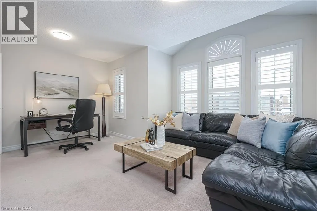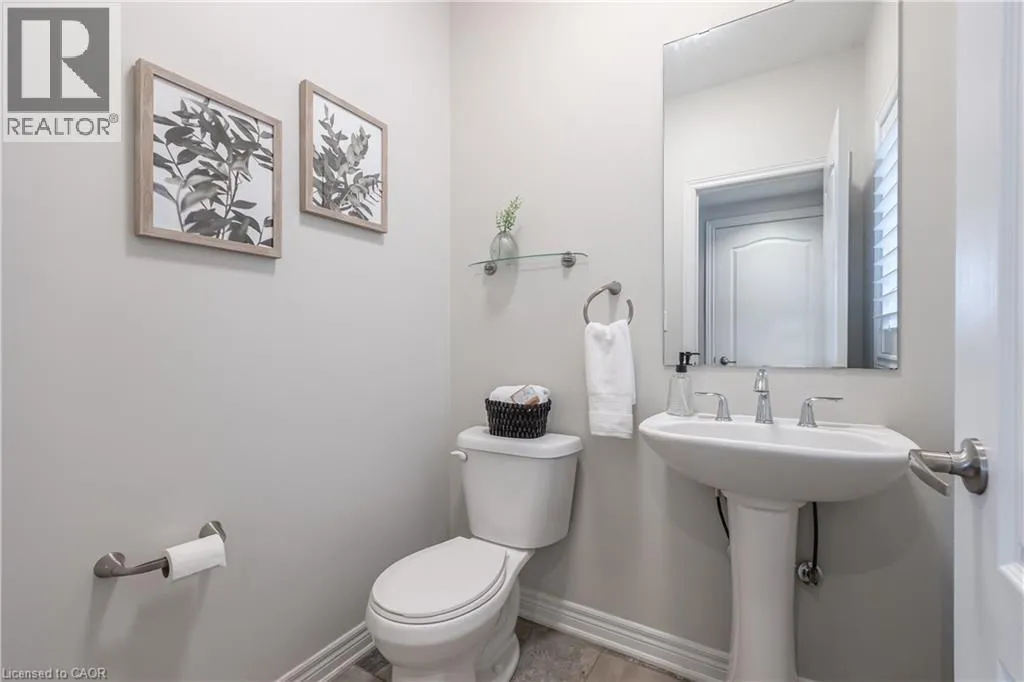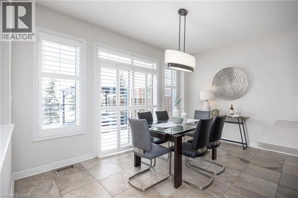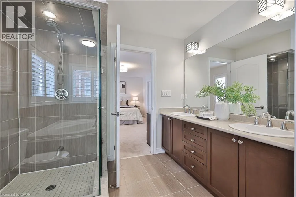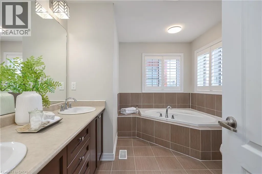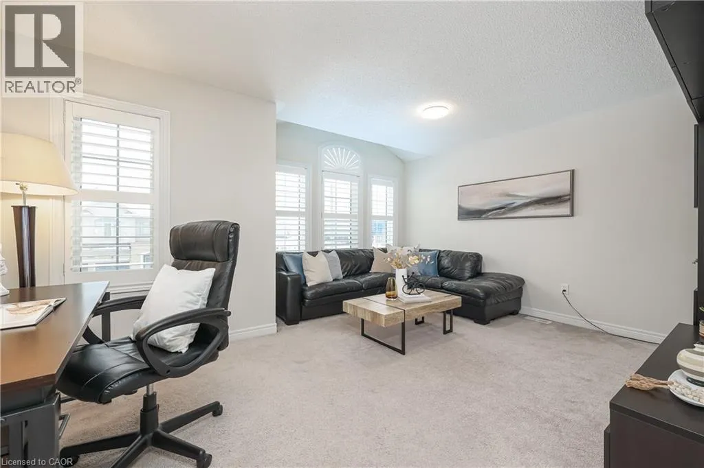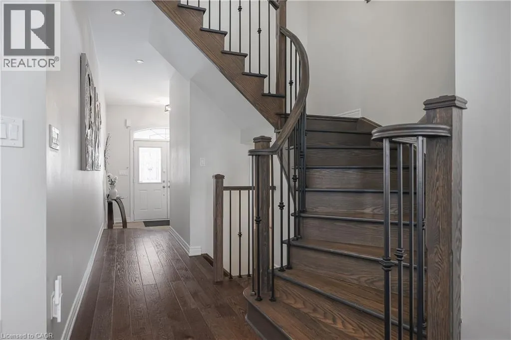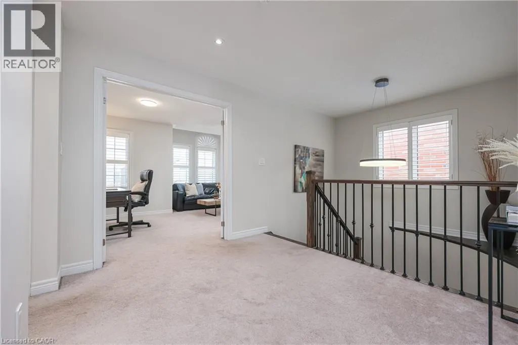 Thomas Alton and Appleby Ln Nestled on a quiet and private street in sought-after Alton Village, this beautiful Fernbrook built home showcases the âCornerstoneâ model, offering a beautifully designed layout that seamlessly blends comfort, style, and functionality. A double-door entry welcomes you into the open-concept main level, where 9-foot ceilings, hand-scraped hardwood flooring, pot lighting, and a gas fireplace with a custom feature wall that creates a warm and sophisticated ambience. The oak staircase with wrought-iron spindles adds an architectural element to the space. At the heart of the home is the chef-inspired kitchen, thoughtfully designed for both everyday living and entertaining. It features stainless steel appliances, upgraded cabinetry with ample storage, under-cabinet lighting, a stylish glass tile backsplash, and an impressive 5 ft x 6 ft oversized islandâperfect for gathering with family and friends. The second level offers three spacious bedrooms and a bright, expansive family room that can easily be converted into a fourth bedroom if desired. The primary suite complete with a walk-in closet and a 5-piece ensuite featuring a glass shower and a relaxing soaker tub. Two additional generously sized bedrooms share a 4-piece bath, while the convenient upper-level laundry room adds everyday practicality. The basement features a 3-piece rough-in, cold room, and approximately 985 sq. ft. of additional space ready to be customized to suit your lifestyle. Step outside to your private, fully fenced backyard featuring a pergola and hot tub, backing directly onto a school and green spaceâproviding both privacy and a serene setting for outdoor relaxation and entertaining. Perfectly located close to Burlingtonâs top-rated schools, parks, shopping, and amenities, this exceptional home offers the ideal blend of comfort and functionality. A must-see opportunity in one of Burlingtonâs most desirable communities. (id:27476)