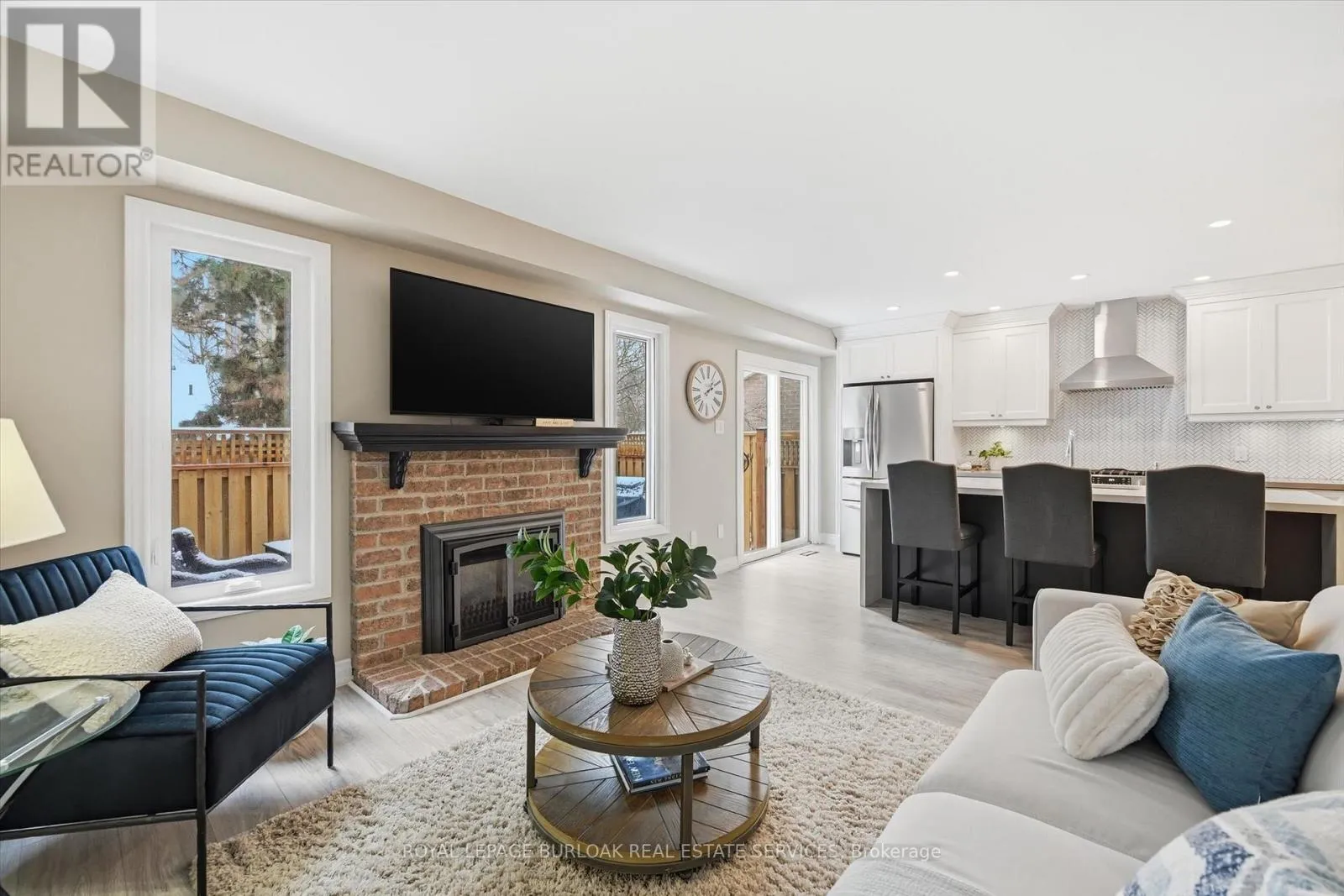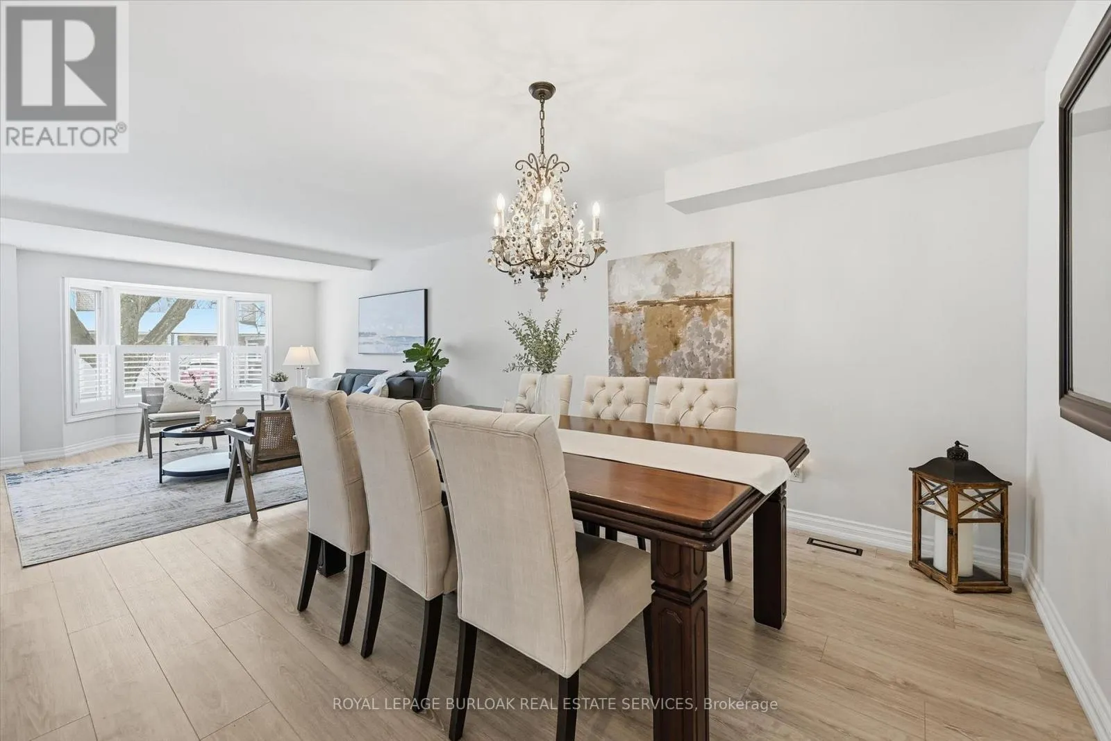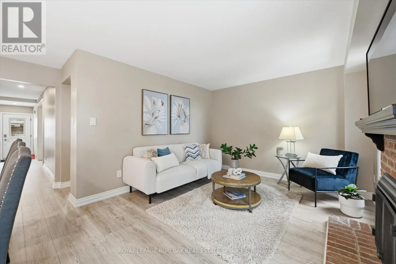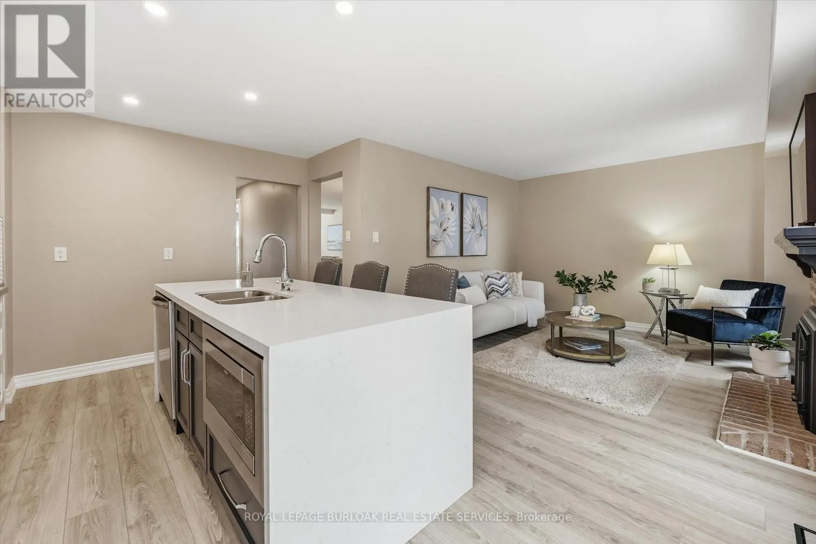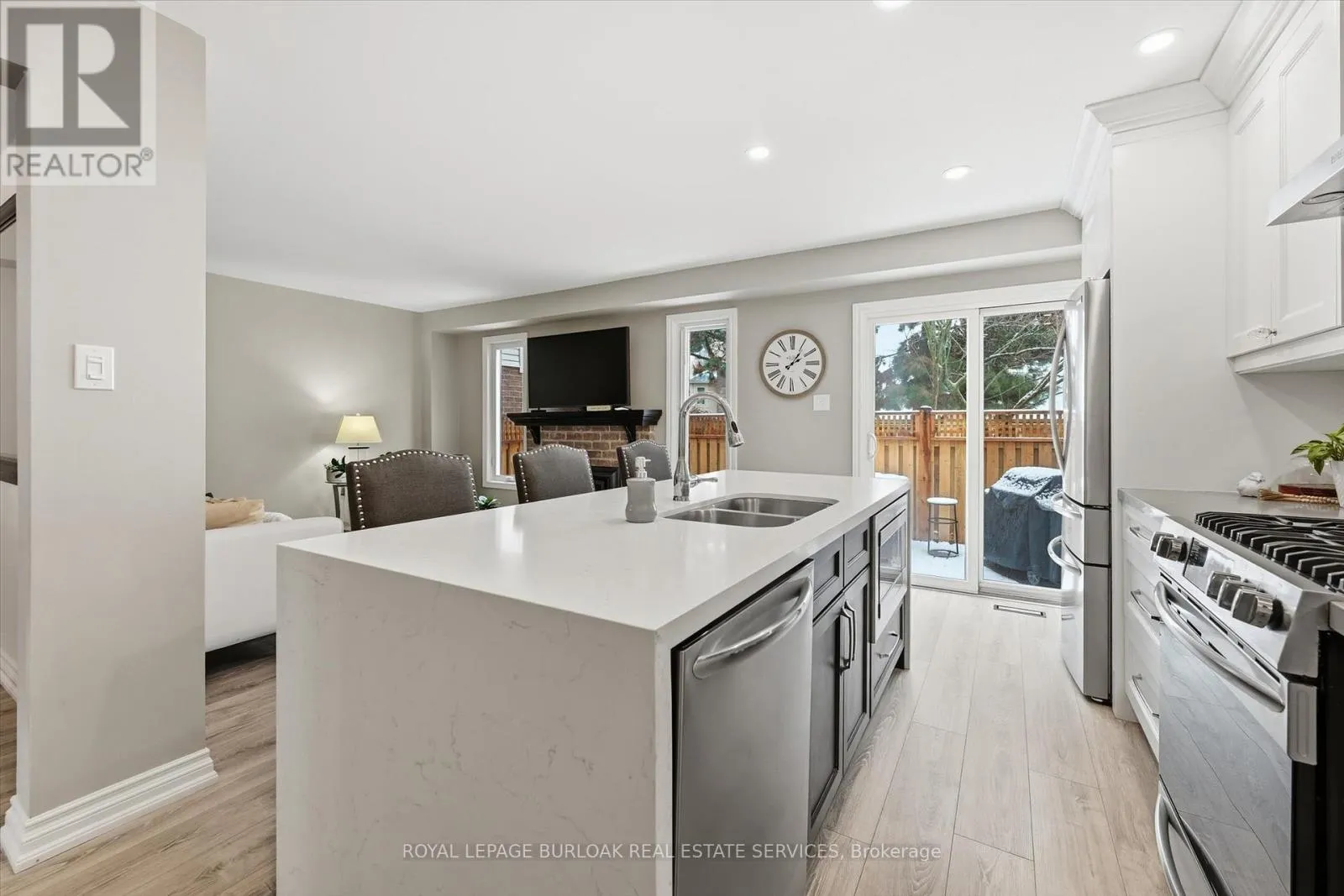 Cross Streets: Lakeshore/Hampton Heath. ** Directions: Appleby Line/ Lakeshore Rd. Gorgeous updated town home in the sought after South East Burlington steps to the Lake & all amenities. A small enclave of owners in a private setting with mature trees, gardens, parks and tree lined neighbourhoods for walking and enjoying life. The home has recently been updated with new flooring throughout, a stunning open concept chefs kitchen with large quartz island, backsplash, custom cabinetry, breakfast bar, pot lighting open to a cozy family room with natural gas fireplace, bright natural light and a walk-out to your private sun deck for outdoor dining/bbq area. Separate dining area with plenty of space for large gatherings open to a spacious living room for entertaining. The 2nd floor features two large primary bedrooms with spacious ensuites, large windows/natural light/skylights. The lower level has been fully finished with 3 piece bathroom, comfortable den and office space. This house is perfect for families, down sizers, retirees and those looking to lock up and go. Move in and enjoy. New A/C & furnace. HOA includes snow removal to the door, salting, all landscaping. Close to Go Train, Highway access, Lake Ontario, grocery, restaurants and banking. Move in ready. (id:27476)