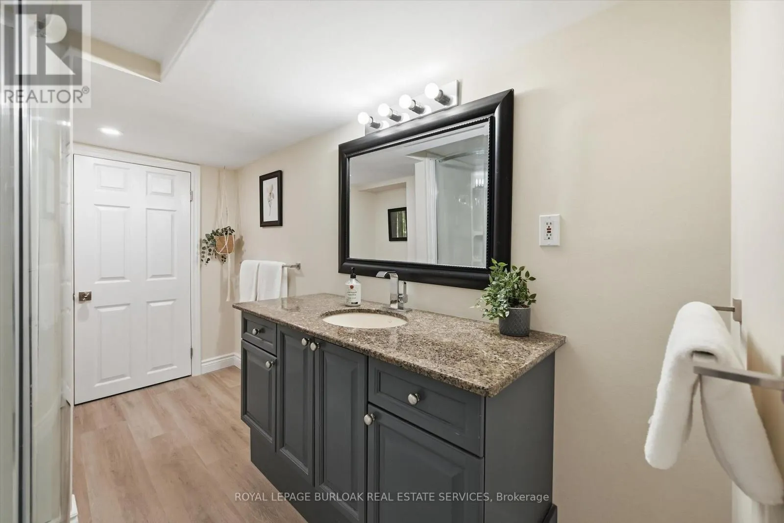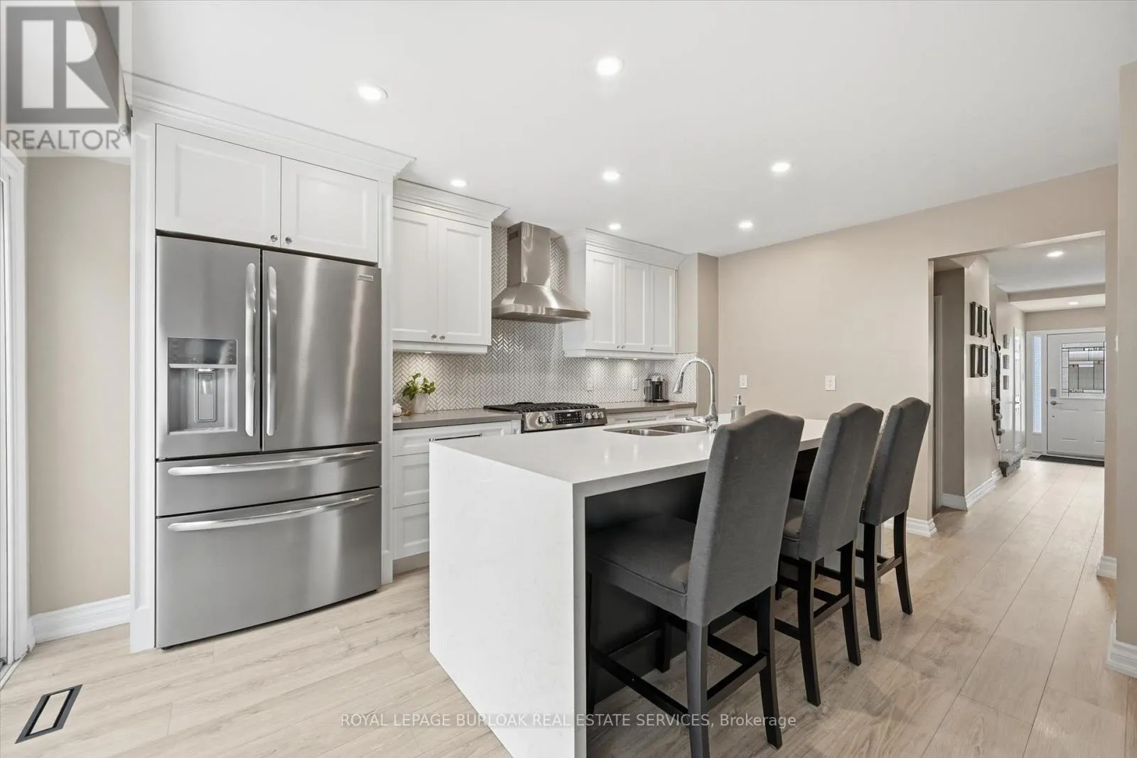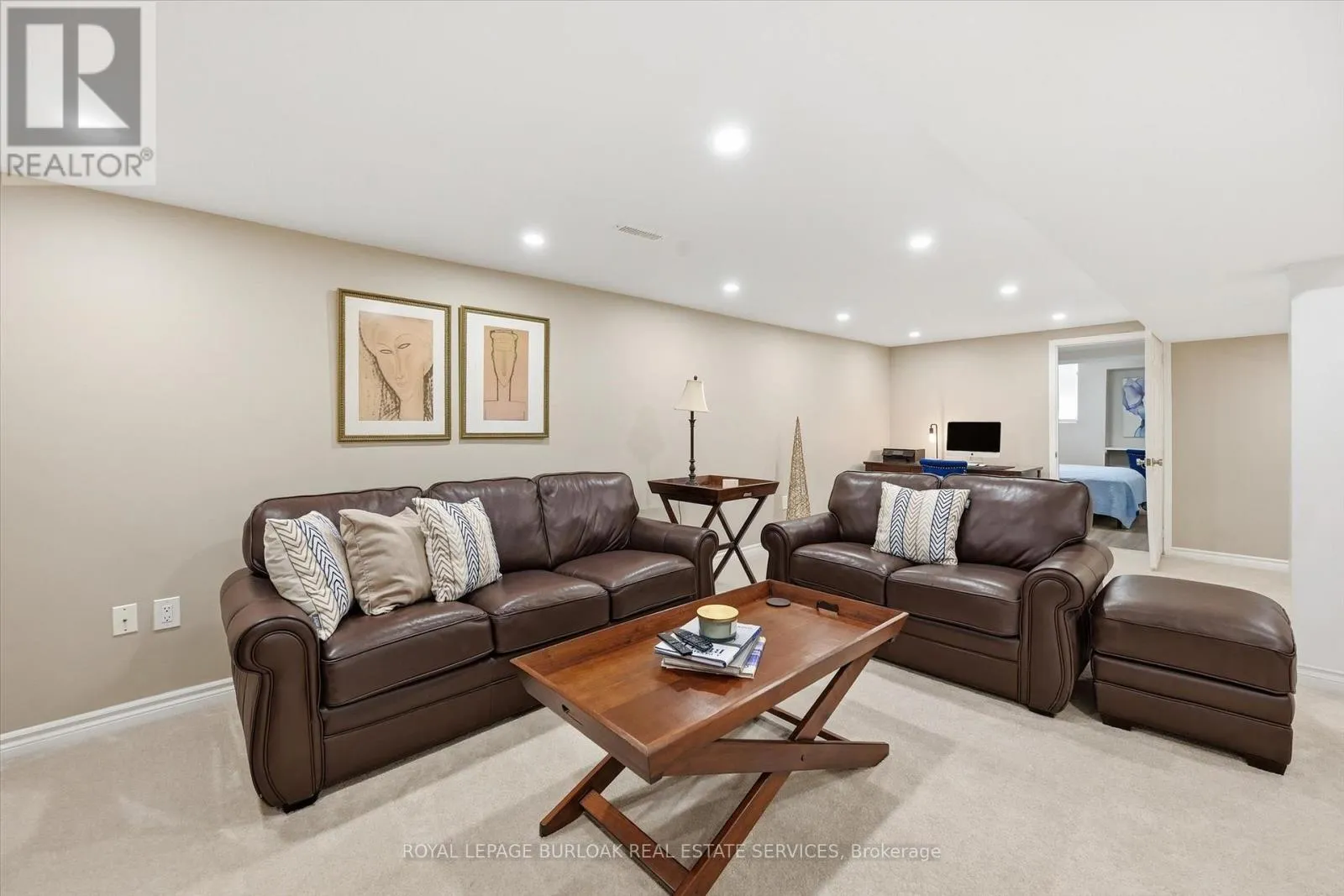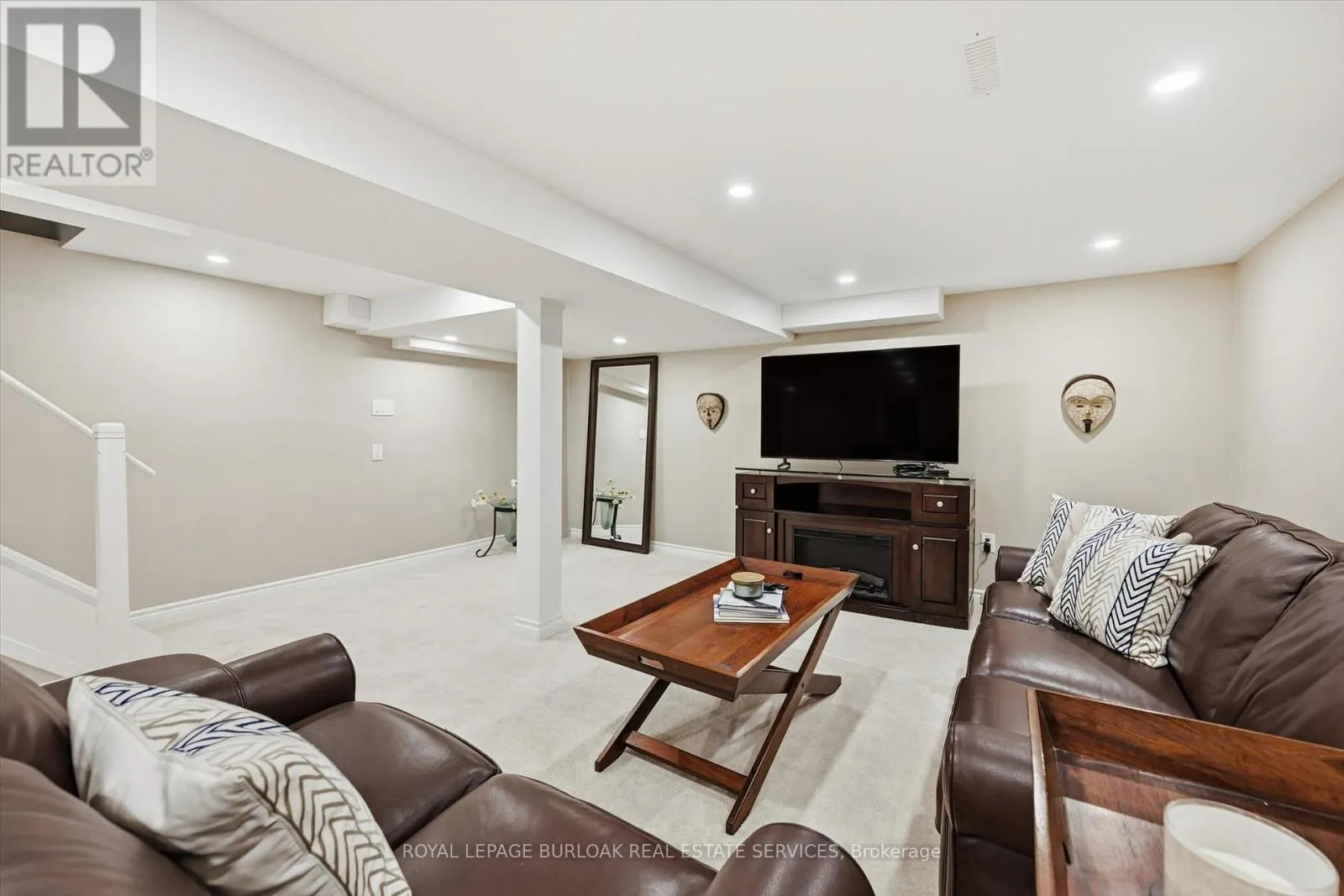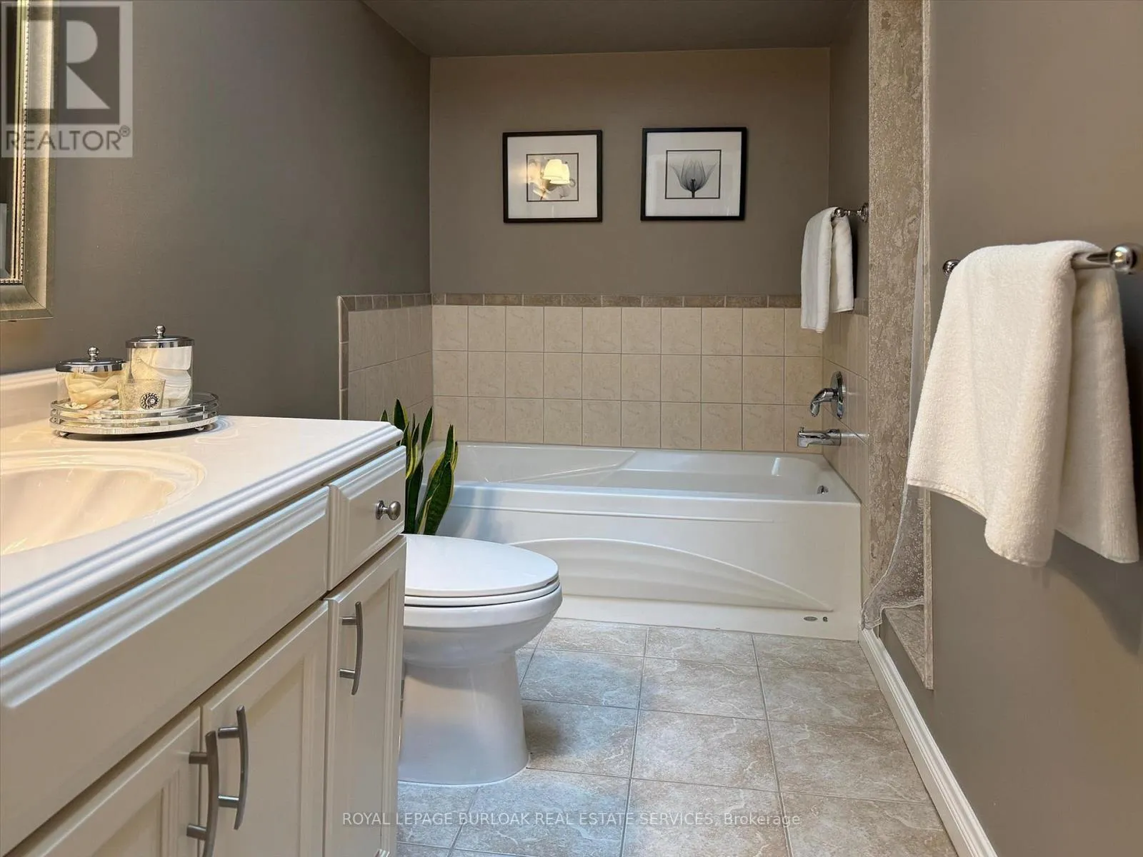 Cross Streets: Lakeshore/Hampton Heath. ** Directions: Appleby Line/ Lakeshore Rd. Gorgeous updated town home in the sought after South East Burlington steps to the Lake & all amenities. A small enclave of owners in a private setting with mature trees, gardens, parks and tree lined neighbourhoods for walking and enjoying life. The home has recently been updated with new flooring throughout, a stunning open concept chefs kitchen with large quartz island, backsplash, custom cabinetry, breakfast bar, pot lighting open to a cozy family room with natural gas fireplace, bright natural light and a walk-out to your private sun deck for outdoor dining/bbq area. Separate dining area with plenty of space for large gatherings open to a spacious living room for entertaining. The 2nd floor features two large primary bedrooms with spacious ensuites, large windows/natural light/skylights. The lower level has been fully finished with 3 piece bathroom, comfortable den and office space. This house is perfect for families, down sizers, retirees and those looking to lock up and go. Move in and enjoy. New A/C & furnace. HOA includes snow removal to the door, salting, all landscaping. Close to Go Train, Highway access, Lake Ontario, grocery, restaurants and banking. Move in ready. (id:27476)