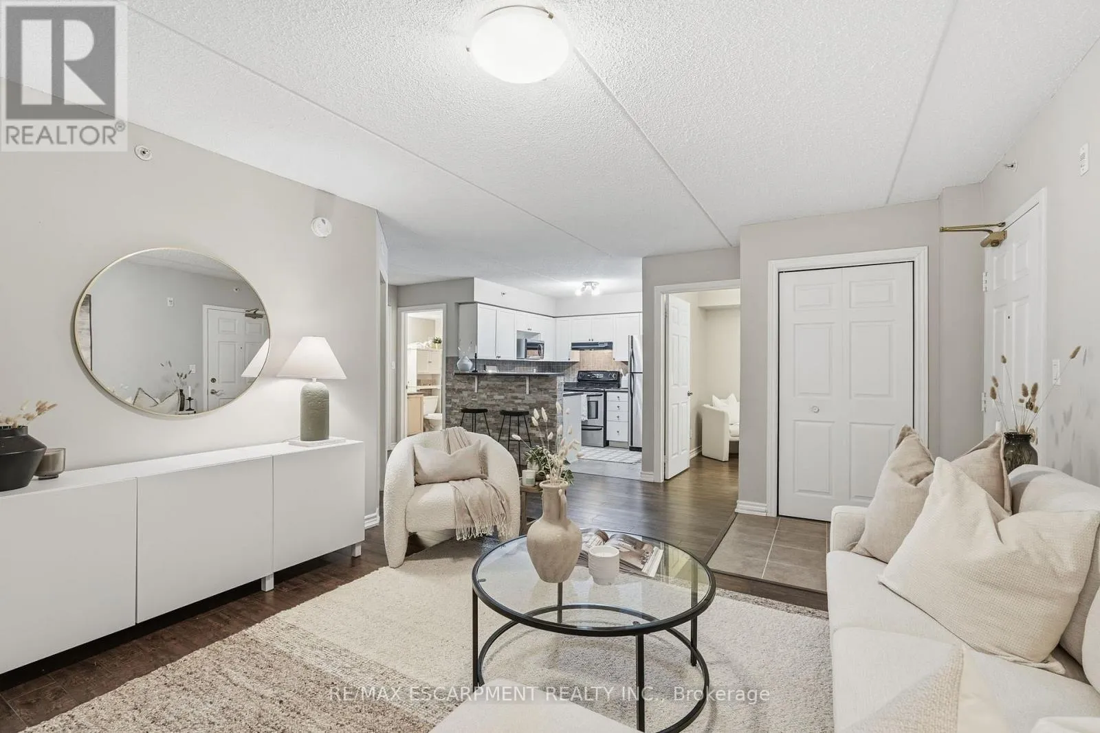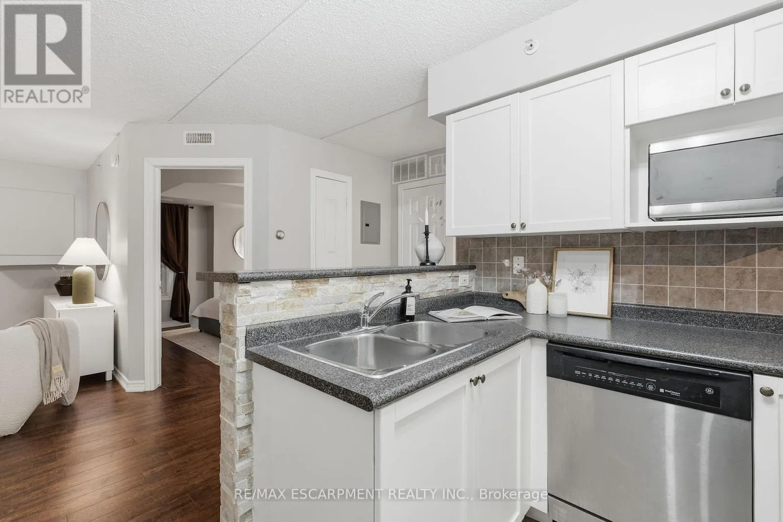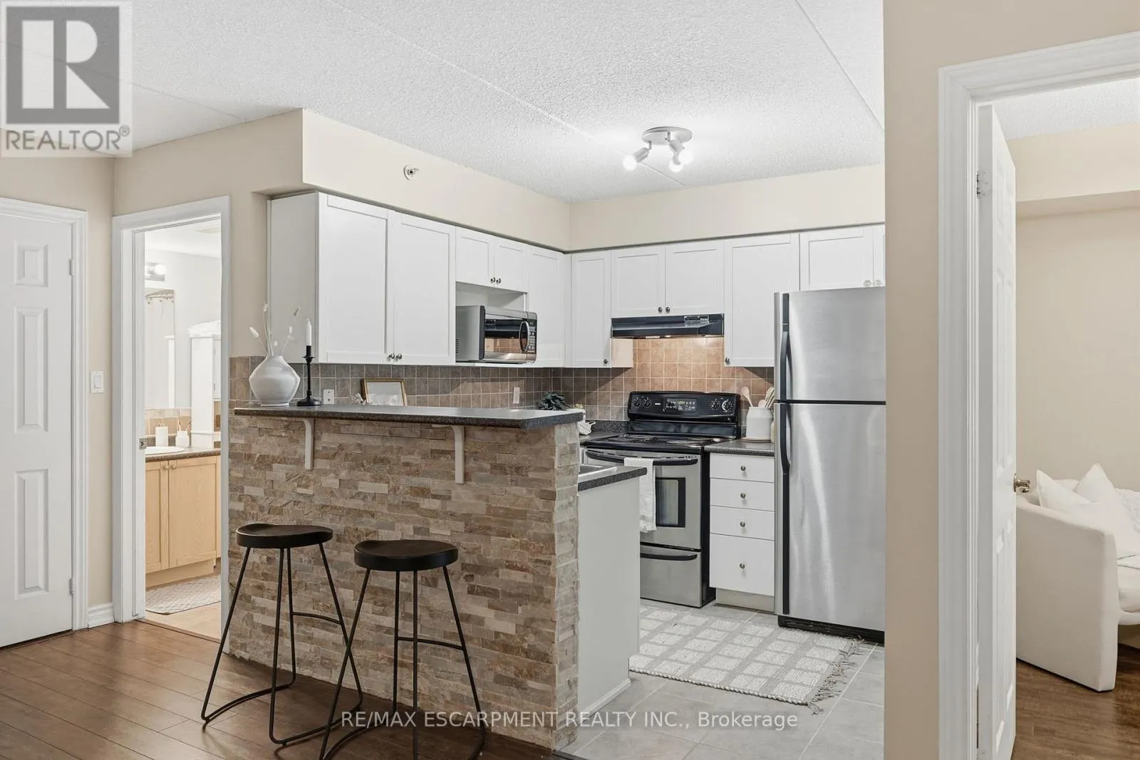 Cross Streets: Appleby Line/Upper Middle Road. ** Directions: North East corner of Upper Middle and Appleby Line. Stylish, low-maintenance living in the heart of Burlington! This modern 1 bedroom plus den, 1 bathroom unit is the perfect fit for young professionals looking to own their first home or retirees seeking comfort, convenience, and lifestyle. Located just minutes from the QEW and Hwy 407, commuting is a breeze while being steps to restaurants, cafes, and all the shopping you need means keeping your time spent in the car to a minimum. Bright kitchen cabinetry and sleek laminate flooring throughout the main living space make this space fresh and move in ready. The spacious den provides an ideal work from home space or hobby room. Other conveniences include in-suite laundry, 1 underground parking space, and 1 locker for extra storage. Plus an additional bonus storage room can be found on the balcony for added convenience. Plenty of visitor parking means friends and family can drop by anytime. Residents also enjoy access to a fitness centre and party room, ideal for socializing or staying active without ever leaving home. Whether you're working downtown, hybrid, or remote, this is a smart move in a fantastic location! Don't miss this opportunity to simplify your life without sacrificing style, comfort, or location! (id:27476)