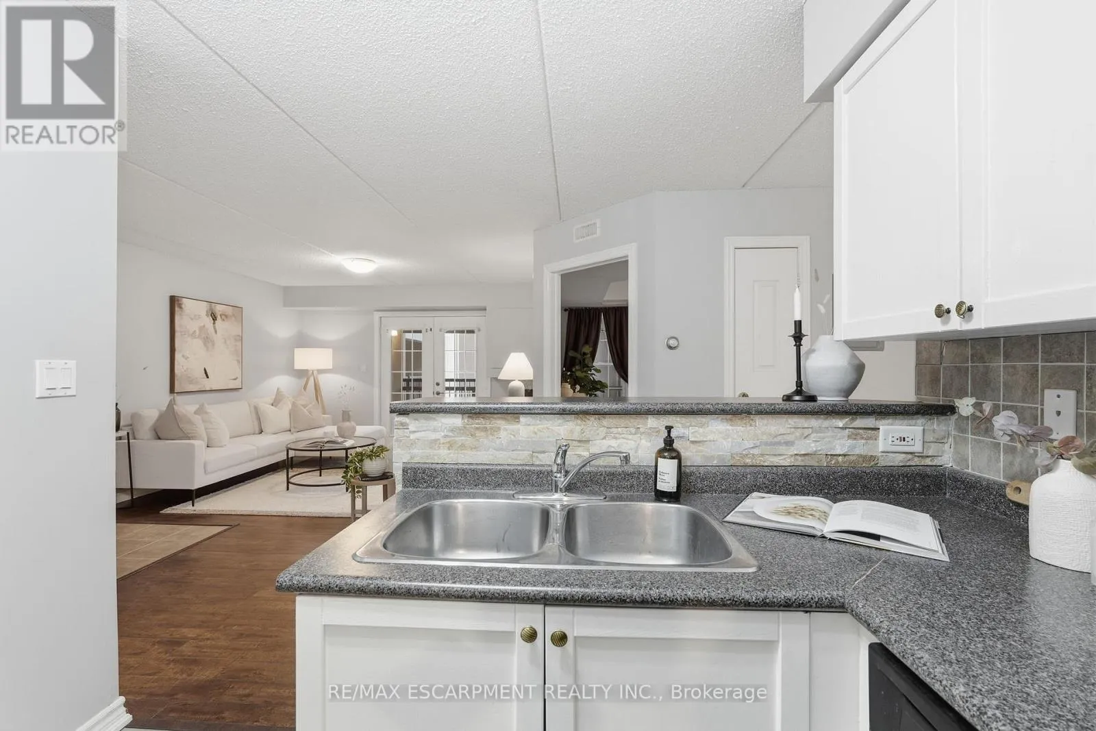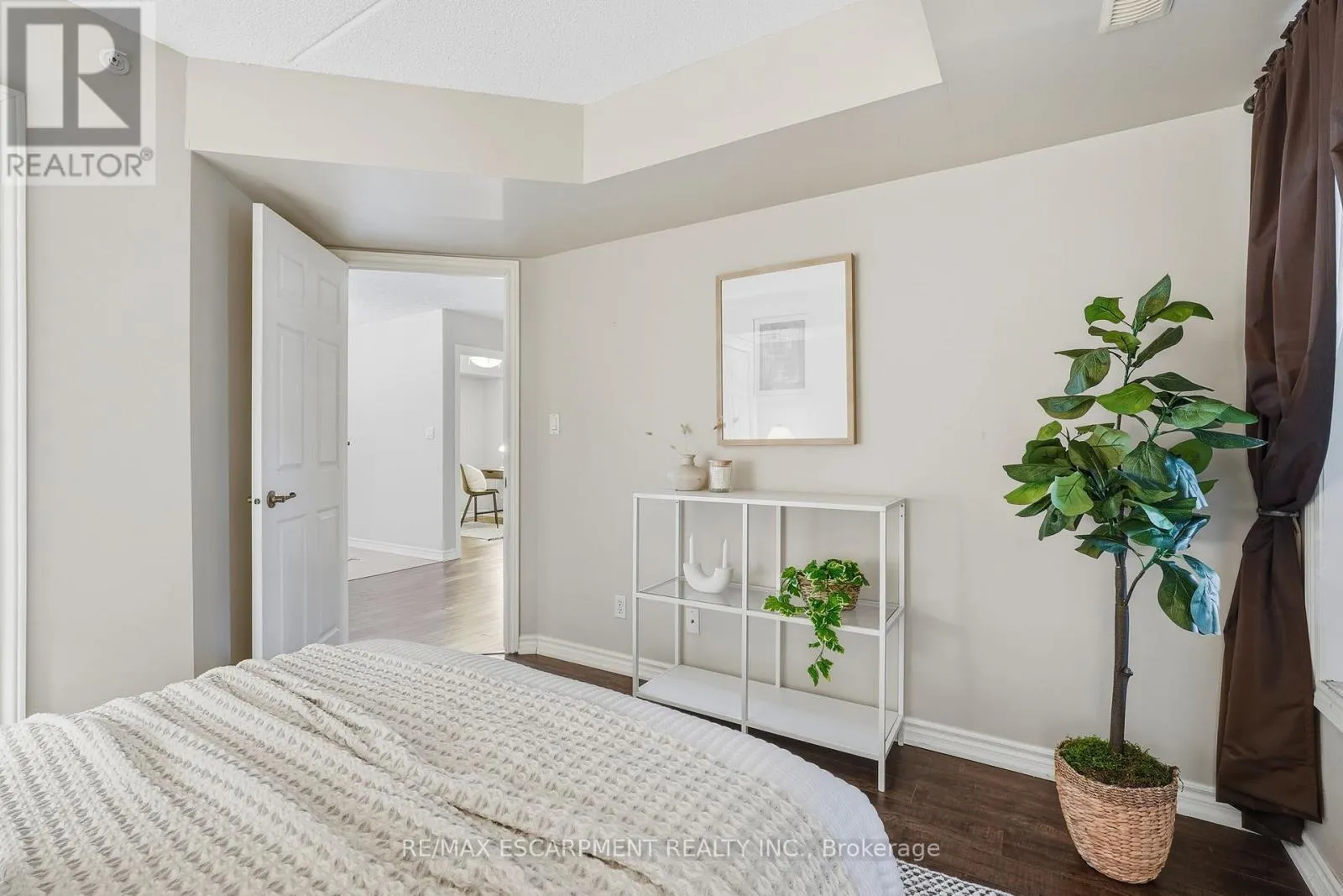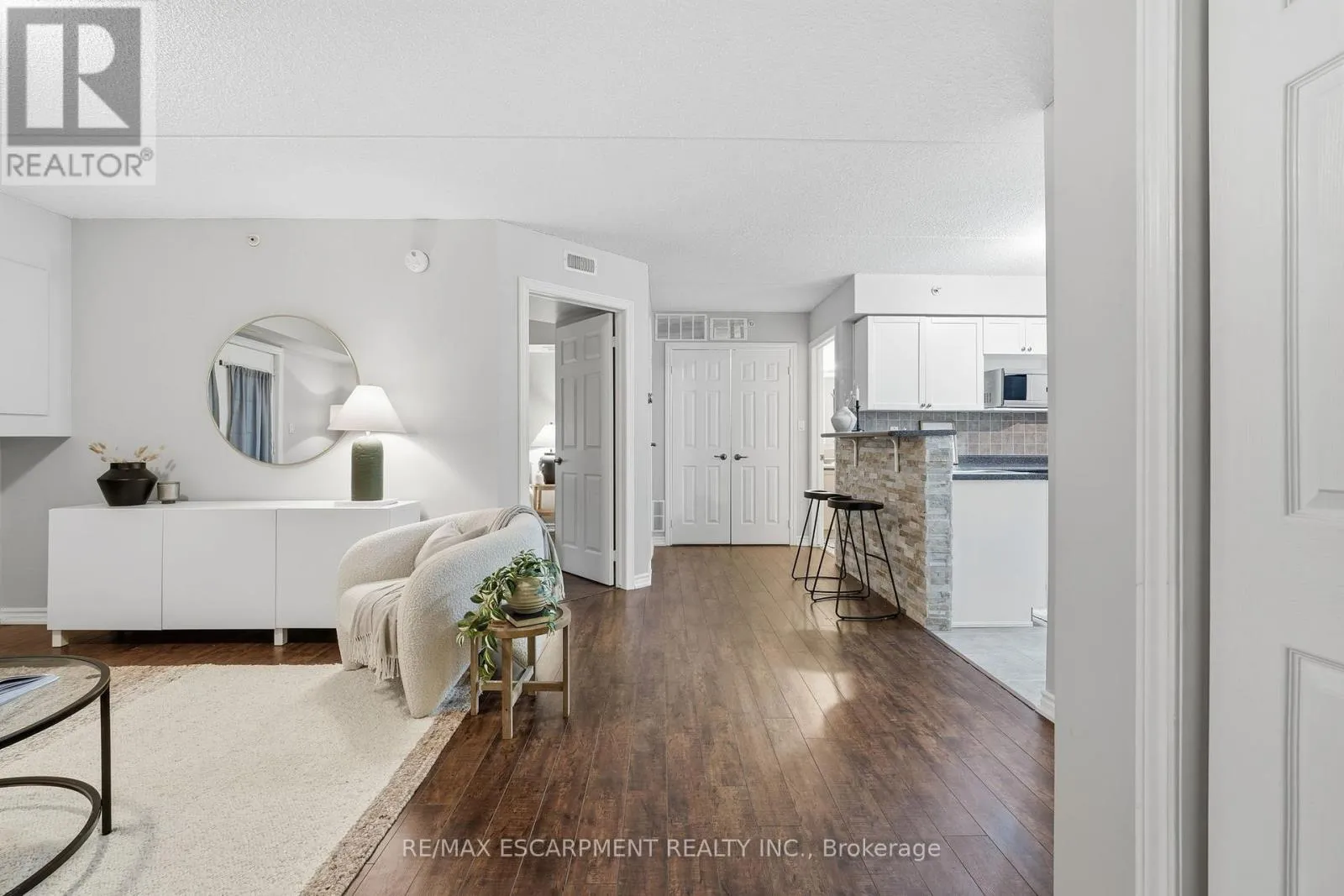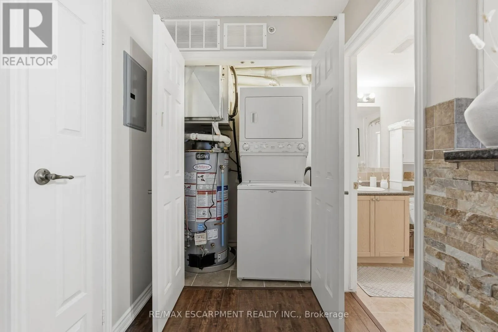 Cross Streets: Appleby Line/Upper Middle Road. ** Directions: North East corner of Upper Middle and Appleby Line. Stylish, low-maintenance living in the heart of Burlington! This modern 1 bedroom plus den, 1 bathroom unit is the perfect fit for young professionals looking to own their first home or retirees seeking comfort, convenience, and lifestyle. Located just minutes from the QEW and Hwy 407, commuting is a breeze while being steps to restaurants, cafes, and all the shopping you need means keeping your time spent in the car to a minimum. Bright kitchen cabinetry and sleek laminate flooring throughout the main living space make this space fresh and move in ready. The spacious den provides an ideal work from home space or hobby room. Other conveniences include in-suite laundry, 1 underground parking space, and 1 locker for extra storage. Plus an additional bonus storage room can be found on the balcony for added convenience. Plenty of visitor parking means friends and family can drop by anytime. Residents also enjoy access to a fitness centre and party room, ideal for socializing or staying active without ever leaving home. Whether you're working downtown, hybrid, or remote, this is a smart move in a fantastic location! Don't miss this opportunity to simplify your life without sacrificing style, comfort, or location! (id:27476)