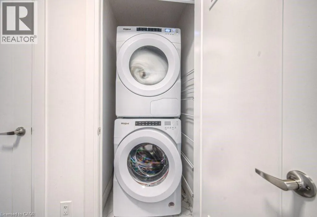 South West corner of Brock Avenue & Ontario Street, one block east of Maple Avenue. Experience modern urban living in this 1 Bedroom + Den Brilliance Model suite at Illumina Condos, offering 850 sq. ft. of bright, open-concept space. Floor-to-ceiling windows flood the home with natural light, highlighting a designer kitchen equipped with premium Fisher & Paykel appliances, a quartz waterfall island, and abundant cabinetry and counter space. The versatile den is perfect for a home office or dining area. The spacious primary bedroom features a custom built-in closet and direct access to a 4-piece bathroom. Enjoy the convenience of underground parking and a private locker, along with premium building amenities including 24-hour concierge and security, a state-of-the-art fitness centre, bike storage, BBQ area, and a stylish party room. The 22nd-floor party room with rooftop terrace offers stunning lake views, ideal for entertaining or relaxing. Located just steps from the lake, shops, cafés, restaurants, the Art Gallery of Burlington, and the Performing Arts Centre, with a pharmacy and medical clinic at the buildingâs base and quick access to the GO Station and highways, this suite delivers the perfect combination of comfort, style, and convenience. (id:27476)