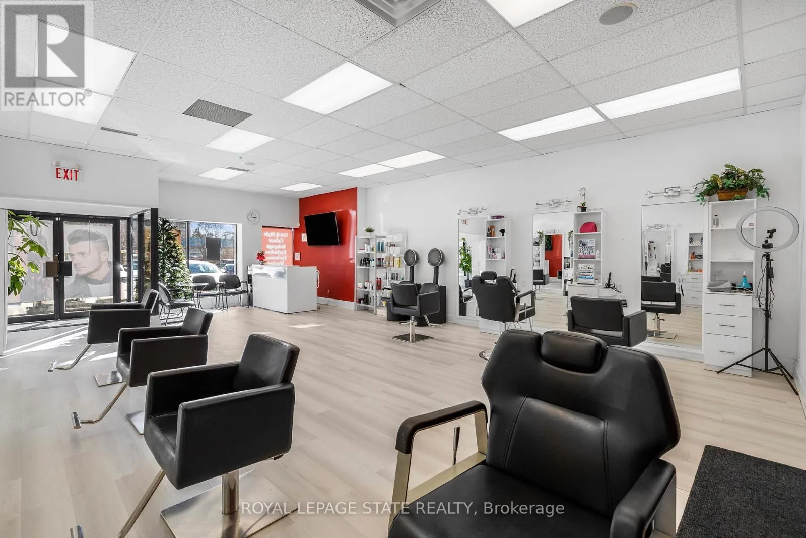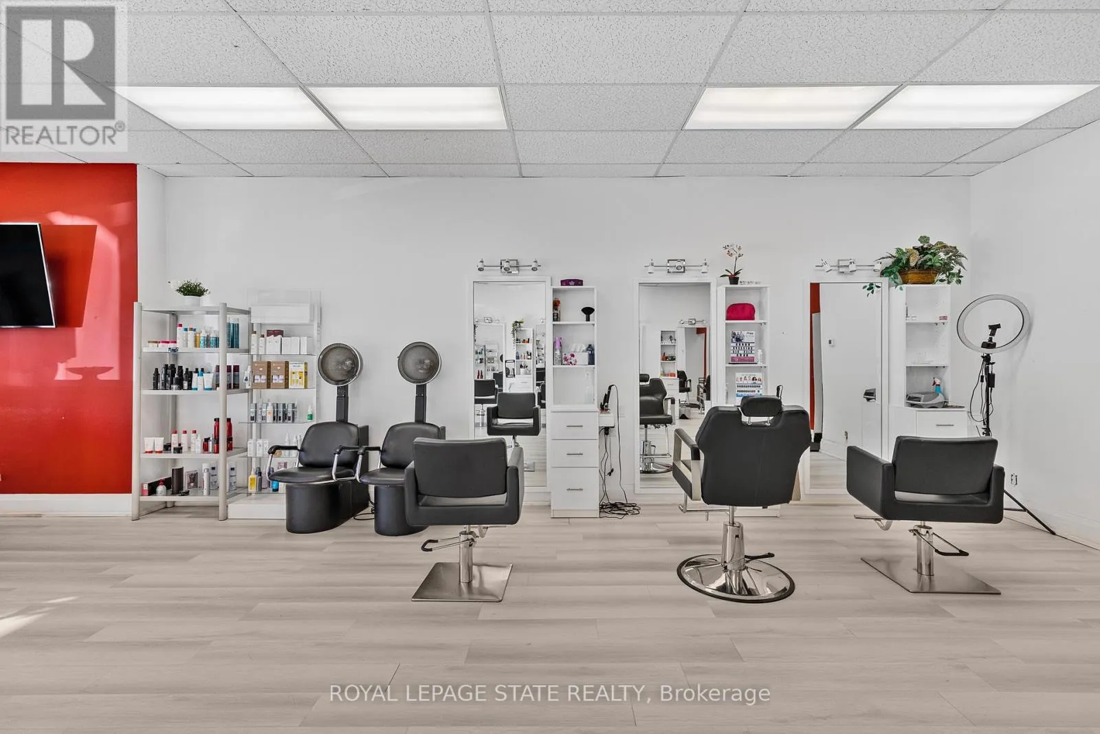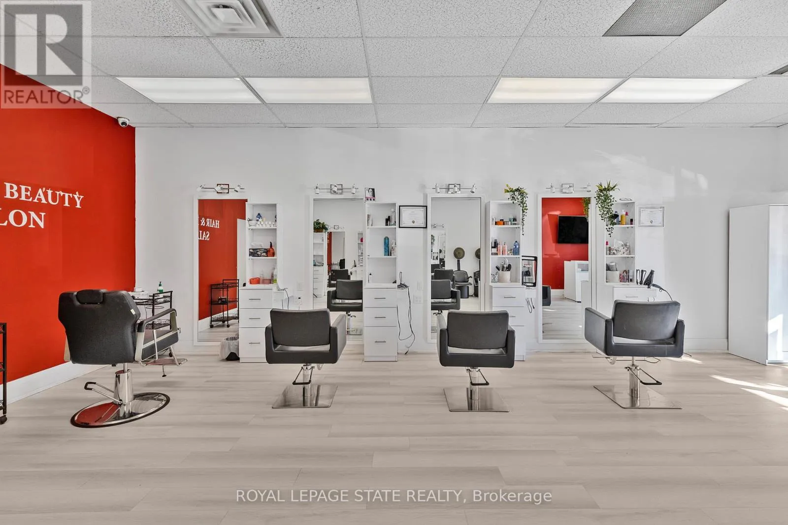 Cross Streets: Plains Road East & Francis Road. ** Directions: QEW to Plains Road East. Turnkey Hair Salon for Sale, in a prime location. Fully equipped & move-in ready. Discover an exceptional opportunity to own a bright, modern, and beautifully maintained salon with over 1350 sq. ft. Located in a busy, well-established plaza with ample customer parking. Surrounded by thriving neighbouring businesses and offering convenient highway access, this salon provides the perfect environment for stylists, entrepreneurs, or investors looking for a seamless, ready-to-operate space. This open, airy layout features nine fully equipped hair stations with seven large mirrors. A generous workspace along with two smaller mirror stations and two well-positioned wash stations to ensure smooth client flow. A warm and inviting reception area welcomes guests with its bright, spacious feel, while neutral paint tones throughout the salon create a professional backdrop suitable for any branding style. The unit also includes a private spa room, ideal for esthetics or additional services, and a compact kitchenette for staff convenience. Offered as an asset sale, this salon allows you to step directly into a professionally designed space, without the time or cost of building from the ground up. Perfect for launching a new salon, expanding your brand, or relocating to a high-visibility, established area, this turnkey opportunity is ready to support your success from day one. (id:27476)
