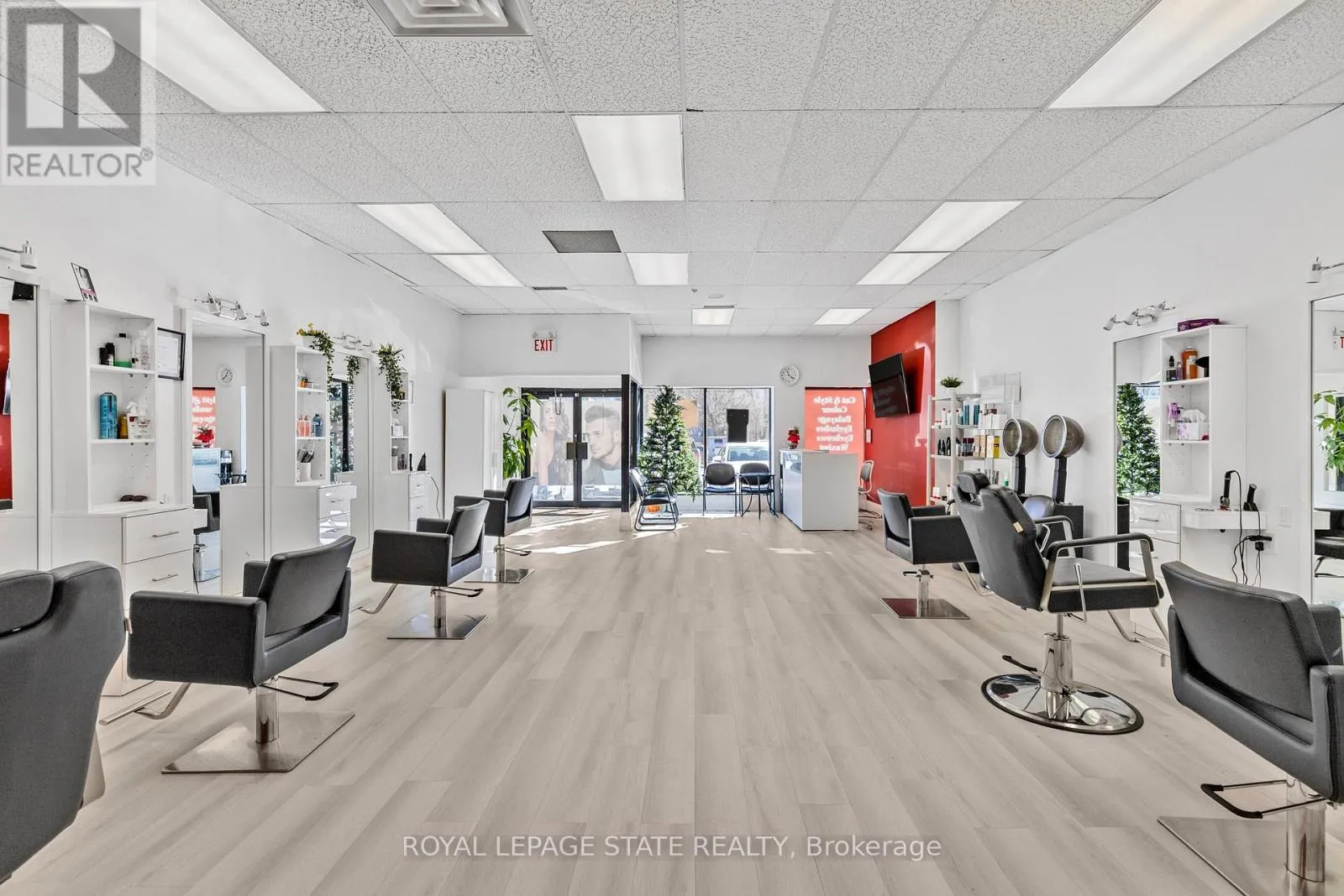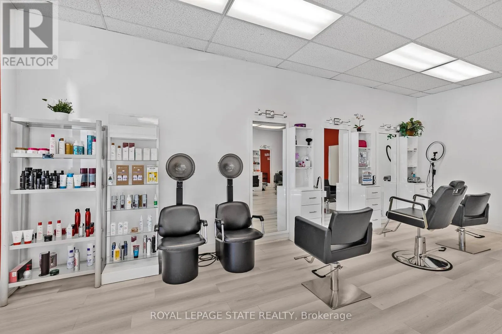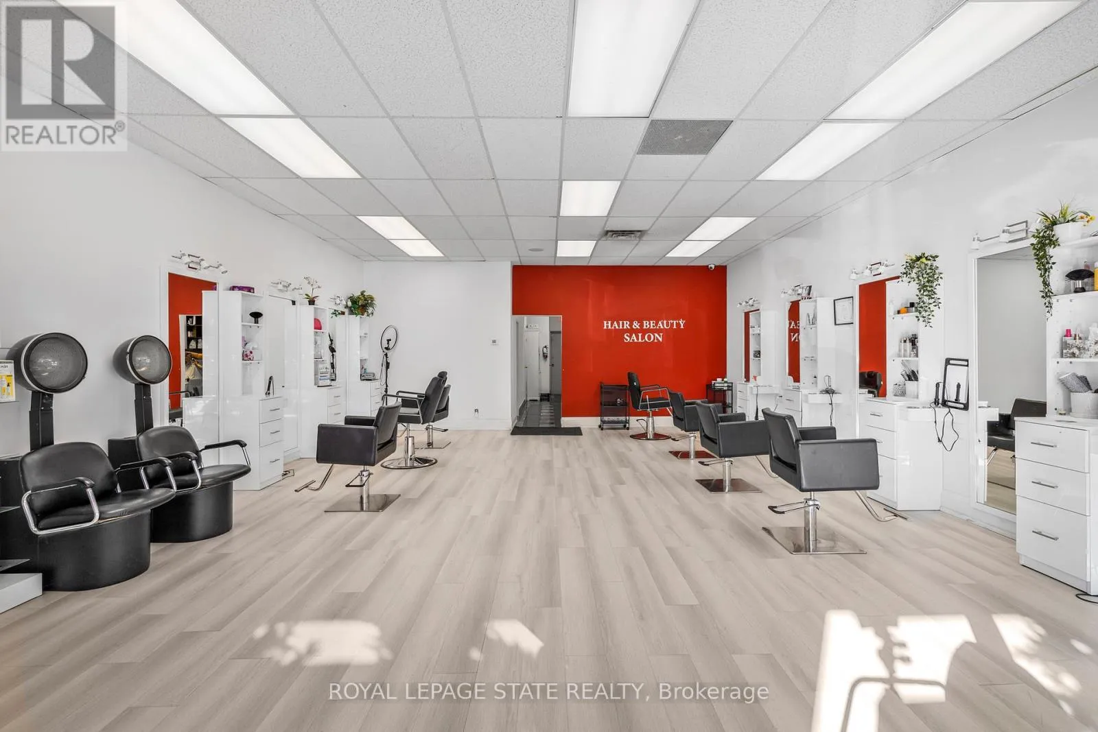 Cross Streets: Plains Road East & Francis Road. ** Directions: QEW to Plains Road East. Turnkey Hair Salon for Sale, in a prime location. Fully equipped & move-in ready. Discover an exceptional opportunity to own a bright, modern, and beautifully maintained salon with over 1350 sq. ft. Located in a busy, well-established plaza with ample customer parking. Surrounded by thriving neighbouring businesses and offering convenient highway access, this salon provides the perfect environment for stylists, entrepreneurs, or investors looking for a seamless, ready-to-operate space. This open, airy layout features nine fully equipped hair stations with seven large mirrors. A generous workspace along with two smaller mirror stations and two well-positioned wash stations to ensure smooth client flow. A warm and inviting reception area welcomes guests with its bright, spacious feel, while neutral paint tones throughout the salon create a professional backdrop suitable for any branding style. The unit also includes a private spa room, ideal for esthetics or additional services, and a compact kitchenette for staff convenience. Offered as an asset sale, this salon allows you to step directly into a professionally designed space, without the time or cost of building from the ground up. Perfect for launching a new salon, expanding your brand, or relocating to a high-visibility, established area, this turnkey opportunity is ready to support your success from day one. (id:27476)