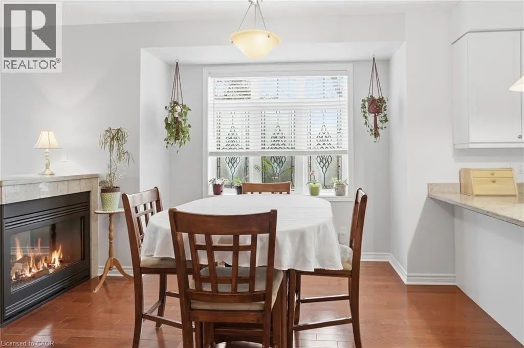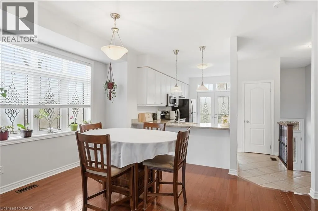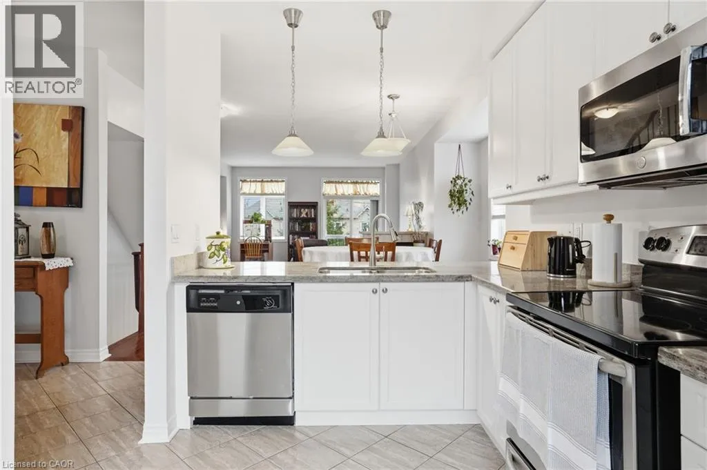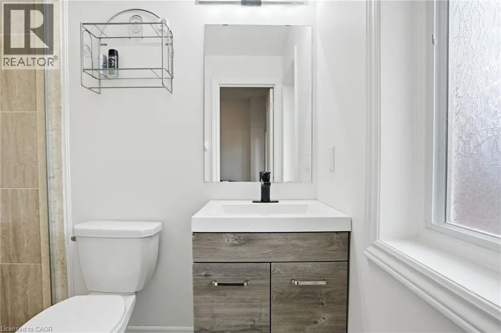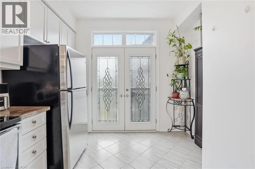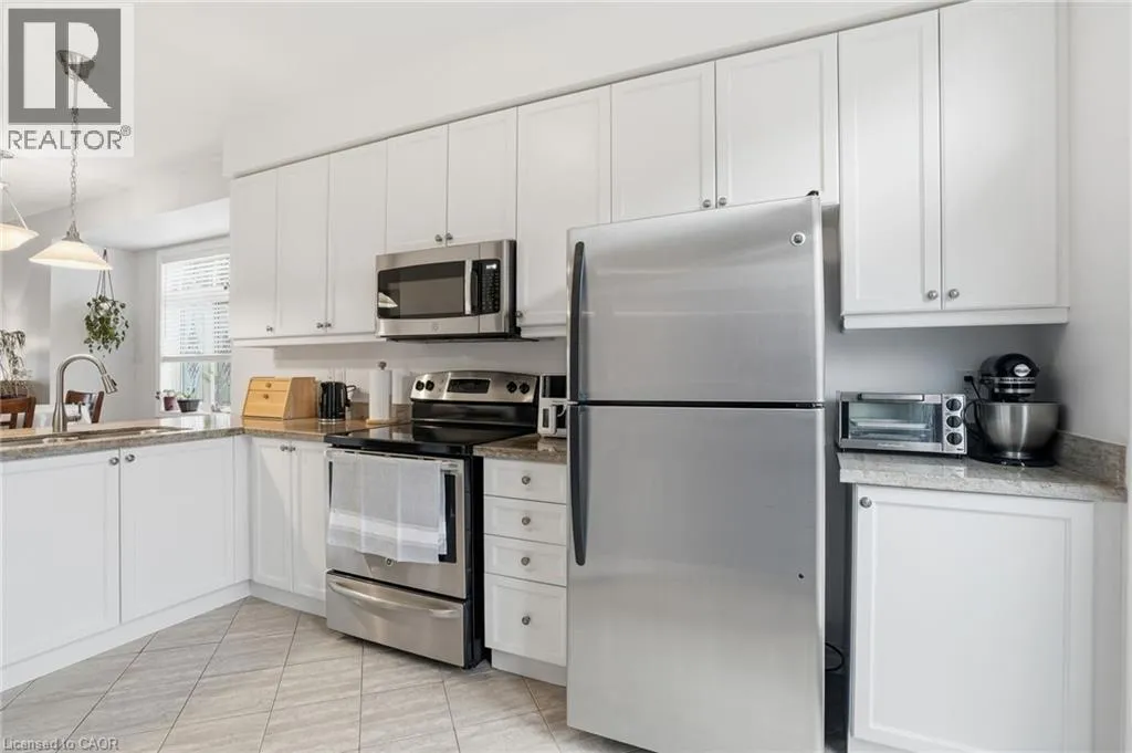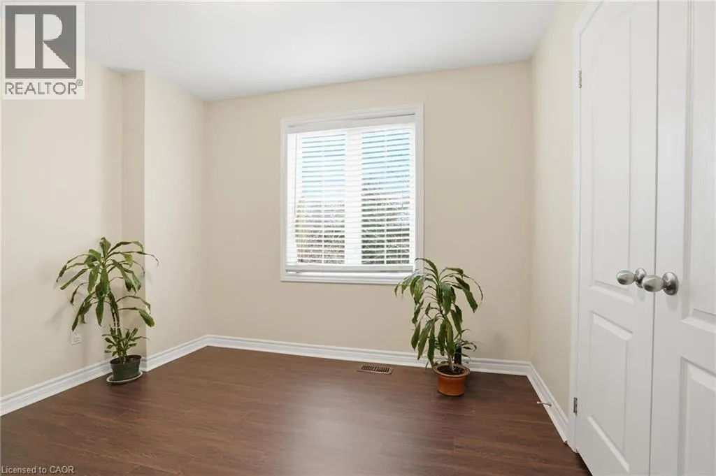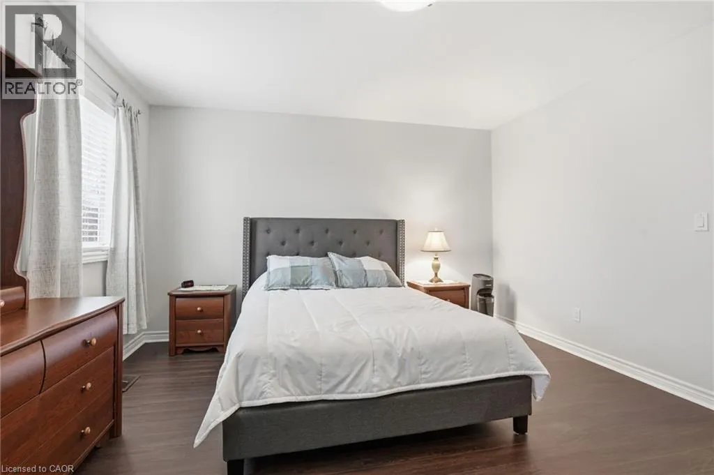 Queensway to Reimer Common to Treverse Common Beautifully updated 3-storey freehold end-unit townhouse in Burlington located in a highly desirable neighbourhood. This bright and spacious home offers 4 bedrooms and 2 bathrooms, ideal for families, professionals, or investors looking for a move-in ready property in a prime Burlington location. As an end-unit townhouse, the home enjoys extra windows, abundant natural light, and added privacy, giving it a desirable semi-detached feel. Recent upgrades include new flooring on the third floor, brand new kitchen cabinets, updated bathrooms, and fresh paint throughout, creating a modern and stylish interior. The home also features a private one-car garage with additional storage and functional living space across three levels. Situated in one of the best locations in the complex, this property backs onto a peaceful open field, offering beautiful views and rare privacy for townhouse living. Enjoy the benefits of freehold ownership with a low $150 monthly road maintenance fee. An excellent opportunity to own a modern, updated freehold townhouse in Burlington, close to parks, schools, shopping, transit, and major highways. A must-see home in a sought-after Burlington community. (id:27476)