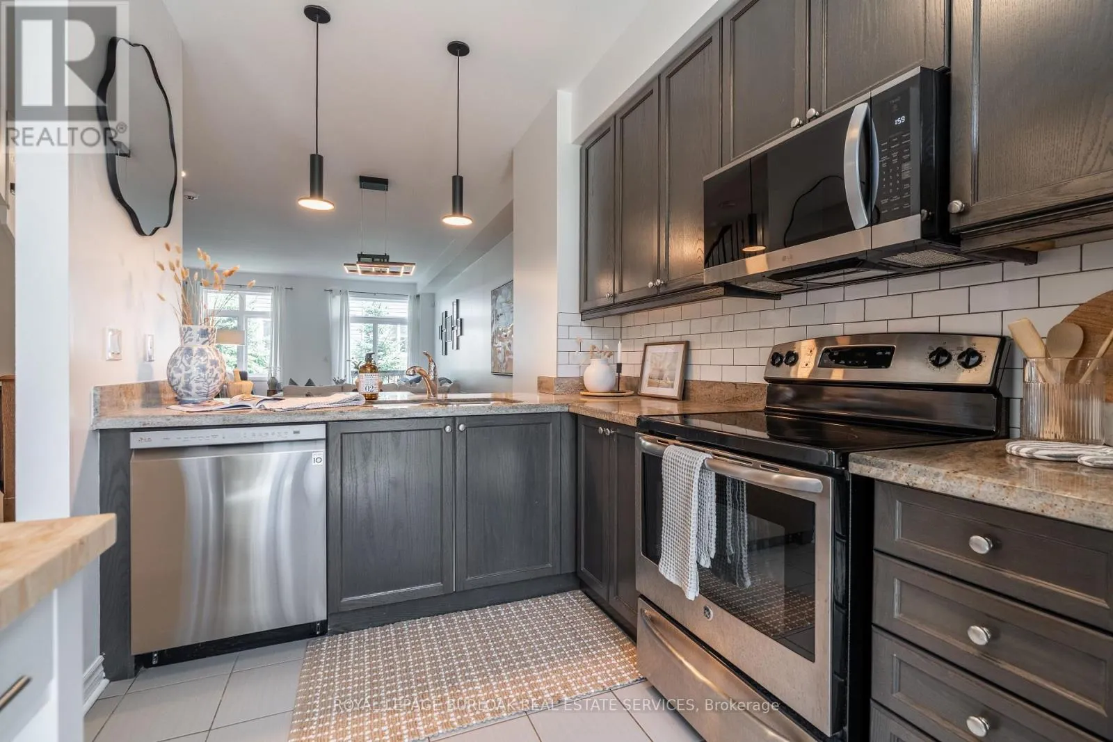 Cross Streets: Guelph Line & Queensway Dr. ** Directions: Guelph Line to Queensway Dr to Reimer Common. Opportunity awaits to own a beautifully maintained, turn-key freehold townhome in sought-after South Burlington! This sun-filled and spacious home features hardwood flooring throughout, upgraded lighting on the main floor, and stunning rod iron spindles that elevate the main living area. The modern kitchen boasts stainless steel appliances, including a 2024 dishwasher and over-the-range microwave, French doors that open to a Juliette balcony, and a breakfast bar with space for barstools. The dining area flows seamlessly into the open-concept living room, which offers access to a private balcony overlooking the tree-lined backyard. Upstairs, you'll find three generously sized bedrooms, including a primary retreat with dual closets and custom blackout blinds. The 4-piece bathroom features double sinks and plenty of counter space. The ground floor offers a versatile space ideal for a bedroom, office, or rec room, with sliding doors leading to a backyard complete with an extended stone patio and mature trees for added privacy. Additional highlights include interior garage access and a separate entrance to the basement, perfect for a home gym, yoga studio, or creative workspace. Don't miss the chance to own a perfectly situated home near everyday essentials, parks, shopping, and quick access to the highway! (id:27476)