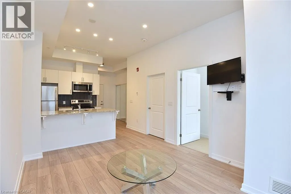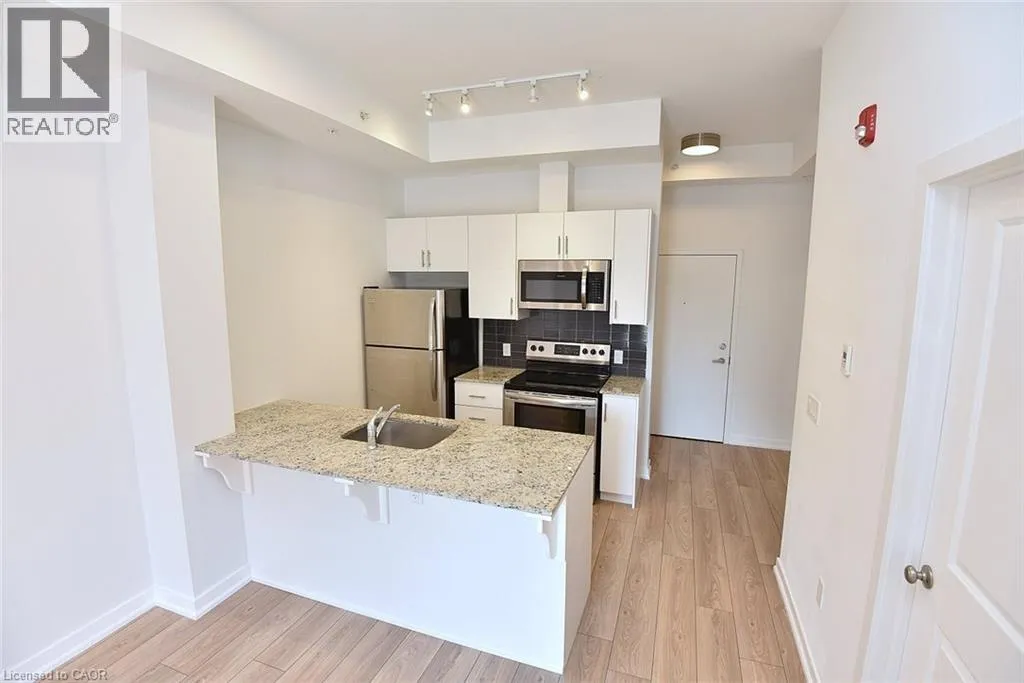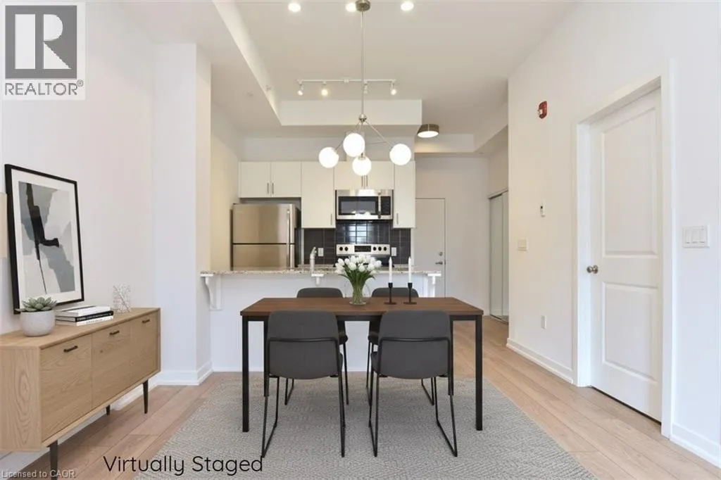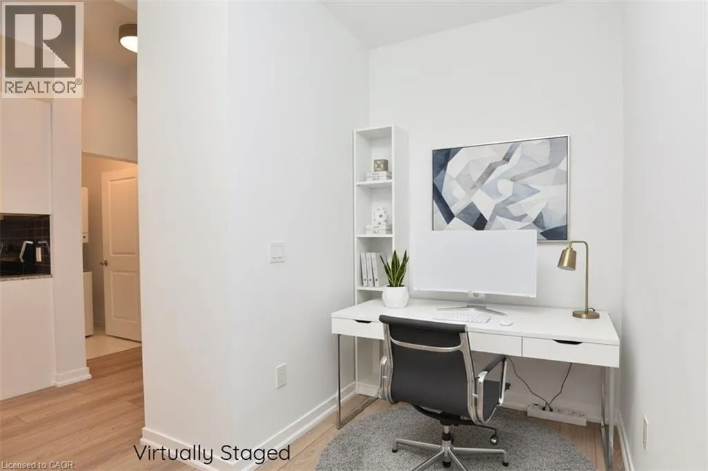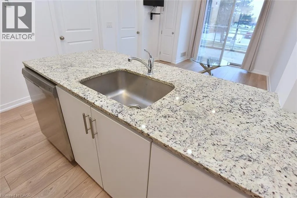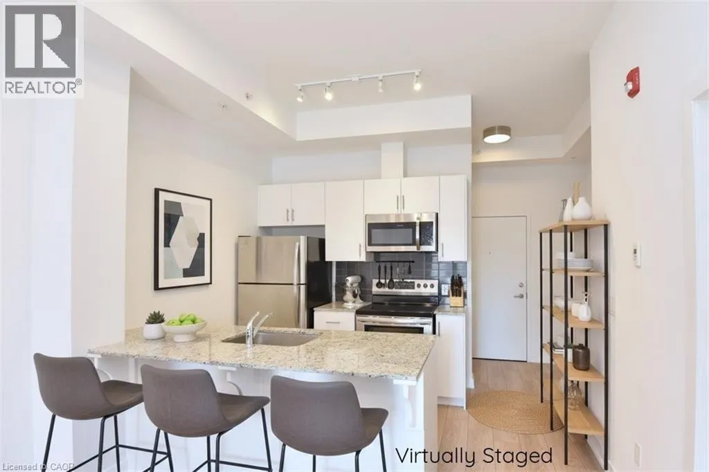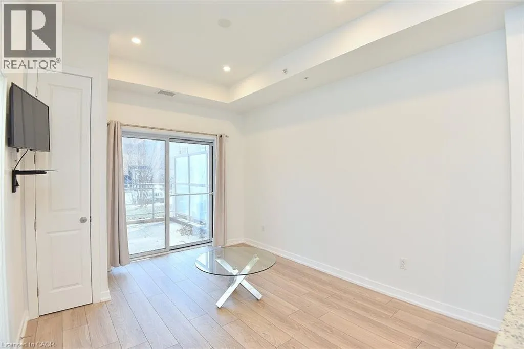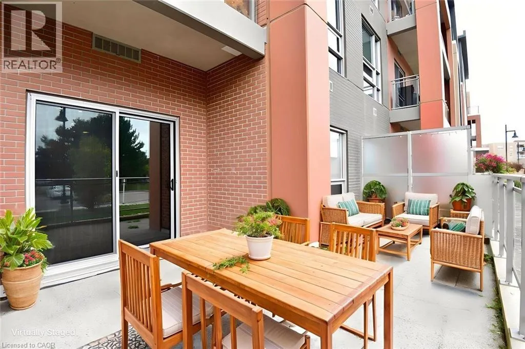 Walkers Line to Kilmer to Tobyn Welcome to Park City Condo - your new home! This stylish 1 bedroom plus den, 1 bathroom combines comfort, convenience and contemporary design - perfect for professionals, first-time home buyers, or investors. Open concept living and dining area soaring with 10ft ceilings that is filled with natural light, newly installed flooring in KIT, LR, DEN and foyer. Unique to this unit is the rare walkout to extra large Terrace measuring 20'x13' - enjoy your morning coffee or evenings with serene garden views. Modern kitchen cabinetry fully equipped with sleek stainless-steel appliances and granite countertops - perfect for entertaining or casual dining. Spacious primary suite with ample closet space and large window. Additional den adds room for home office, studio or guest room. Convenient washer and dryer for everyday ease. Central heating and cooling system ensures year-round comfort. Condo fees includes heat, water, building maintenance, snow removal, visitor parking and access to a party room. Situated in the sought-after Tansley Woods Community, surrounded by dining, shopping, walking trails, community recreation center and parks, easy highway access and public transit. (id:27476)