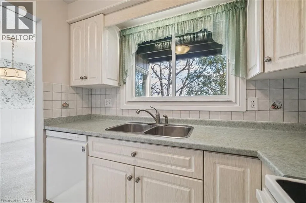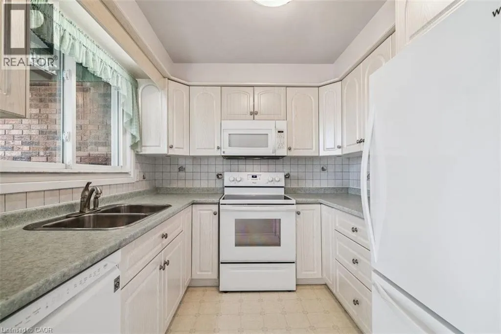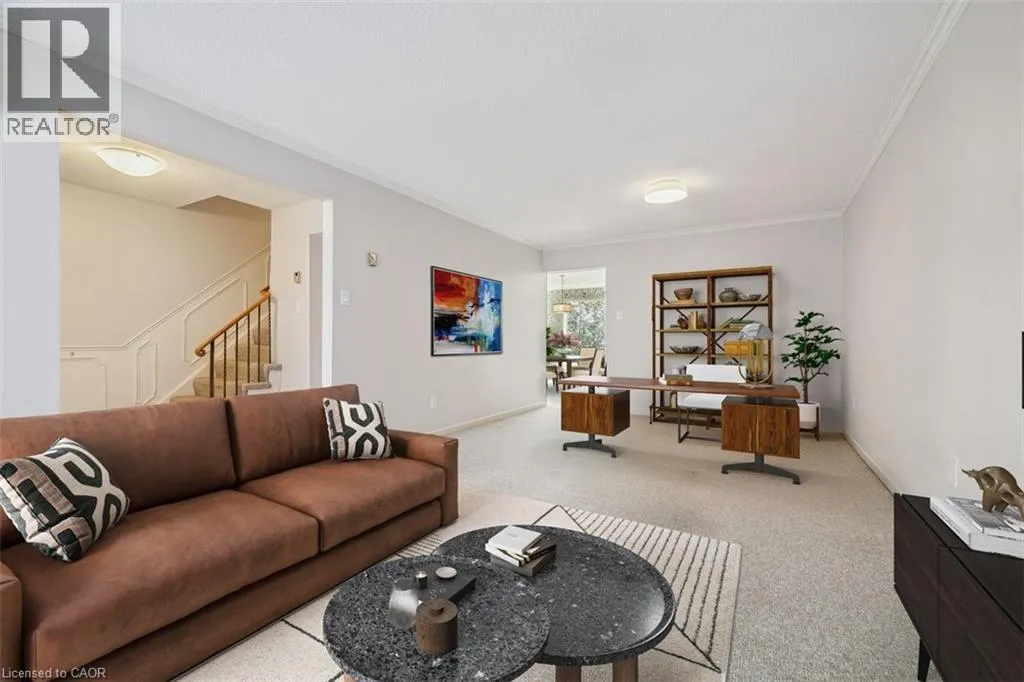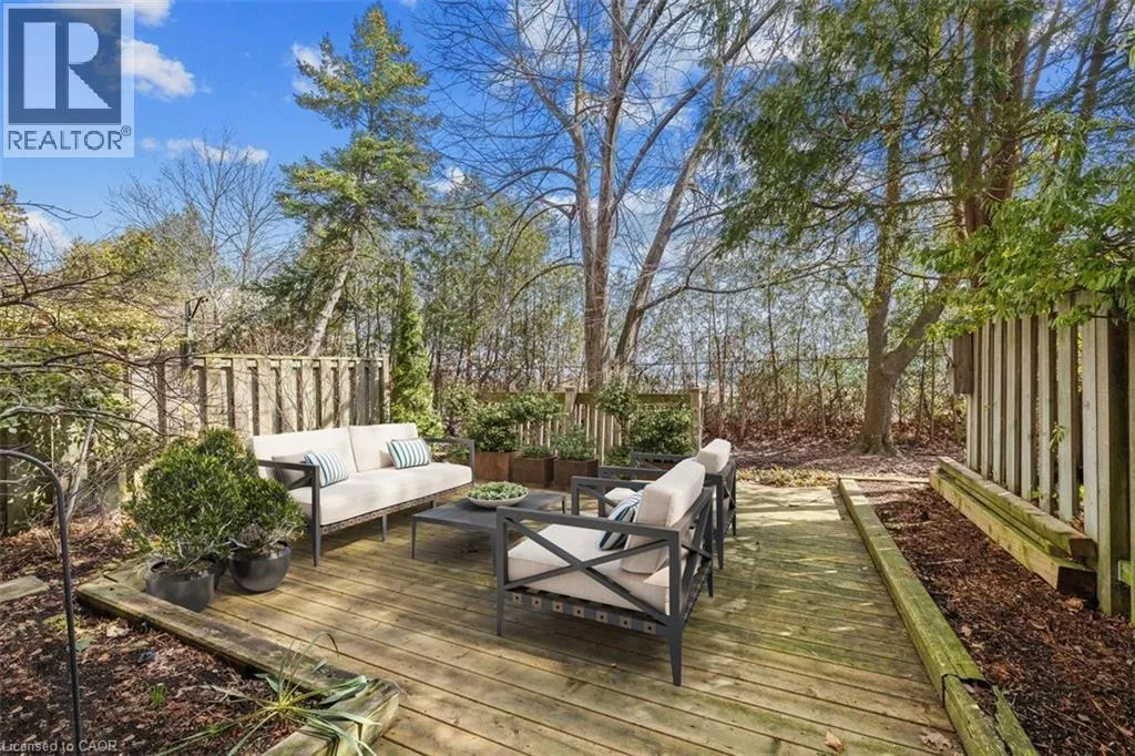 N. Service Rd to Kerns Rd, Kerns Rd to ""Tyandaga Mews"" Townhome Complex Welcome to beautiful Tyandaga, and the sought after Tyandaga Mews townhome complex. This well featured 1,566sf spacious home offers tremendous value, and is perfect for first time buyers, empty nesters, or anyone seeking to enjoy a low maintenance lifestyle. Boasting a brand new (Feb 2026) energy efficient heat pump, providing central heating and cooling for the main floor and upstairs bedrooms, with supplementary baseboard and fireplace heating if needed. Dine in the newly decorated dining room, where an abundance of natural light streams in through the extra large window. The large freshly painted living room with cozy fireplace is perfect for entertaining. For outdoor relaxation, there is great choice, with one balcony off of the Primary Bedroom, another balcony off of the dining room, and in the finished basement, a walk out to a welcoming patio, all overlooking the natural beauty of the well treed grounds. During those hot summer days, enjoy the outdoor pool centrally located within the complex. Great shopping and dining, community parks, and Tyandaga Golf Course are all within a five minute commute. Easy access to QEW, 403 and 407 highways. Easy visitor parking on the street. Condo fees including lawn care, snow clearing and repairs to major exterior components of the home. (id:27476)