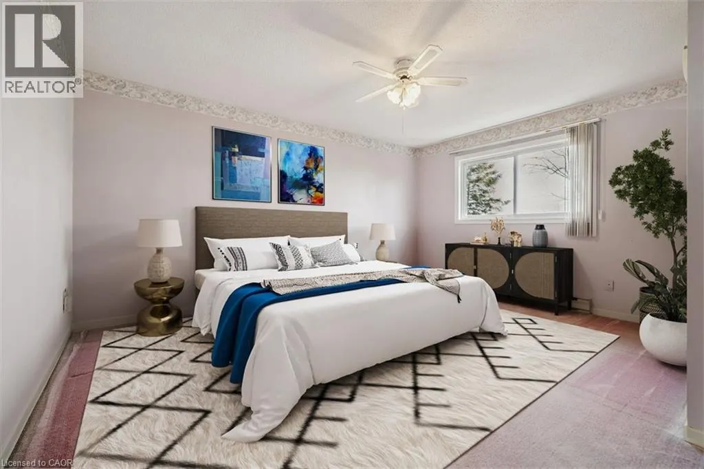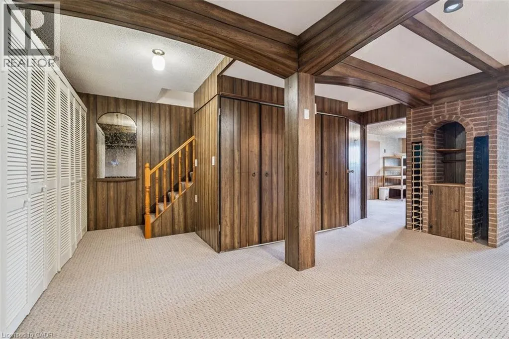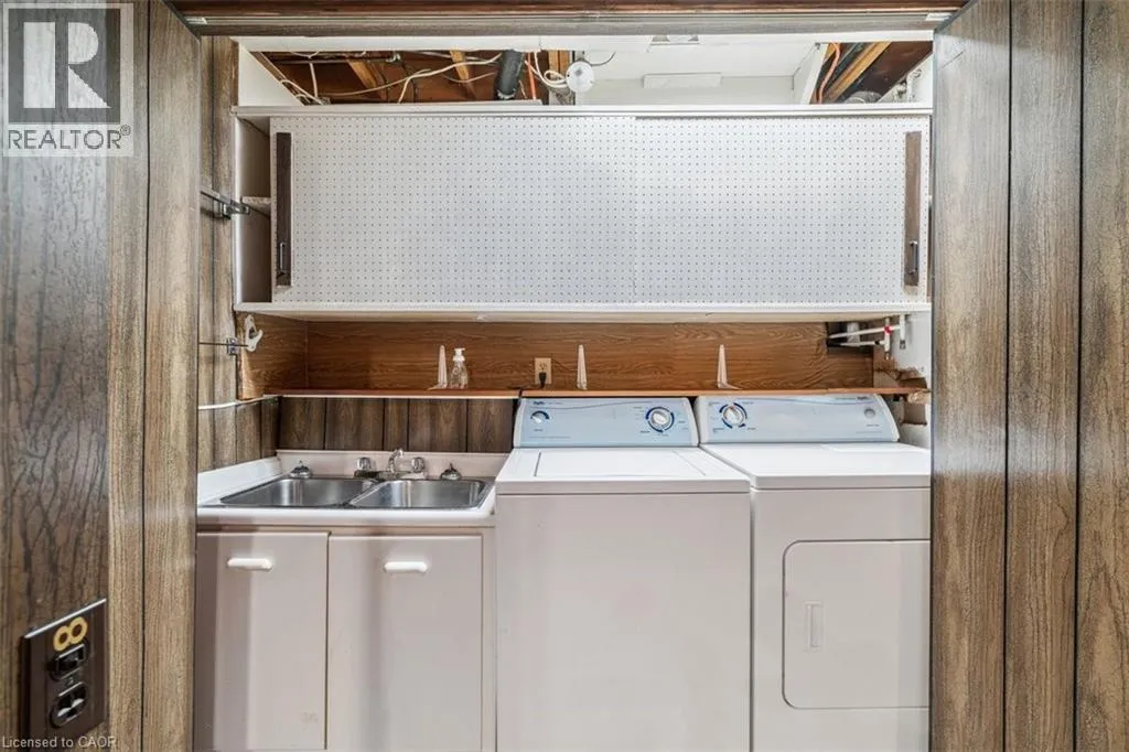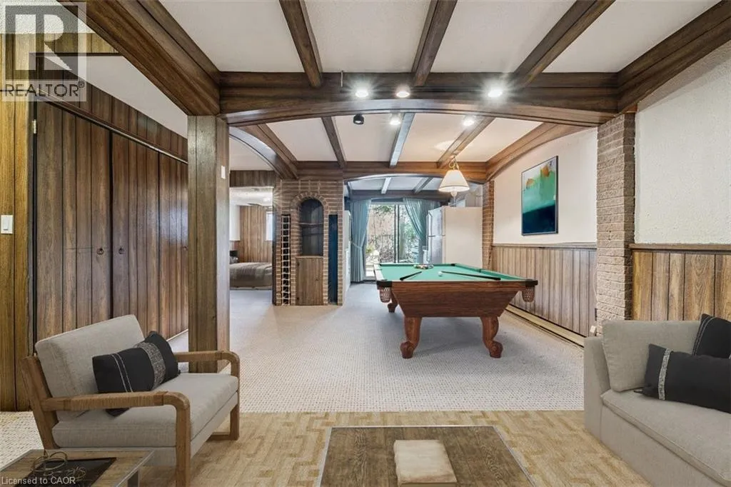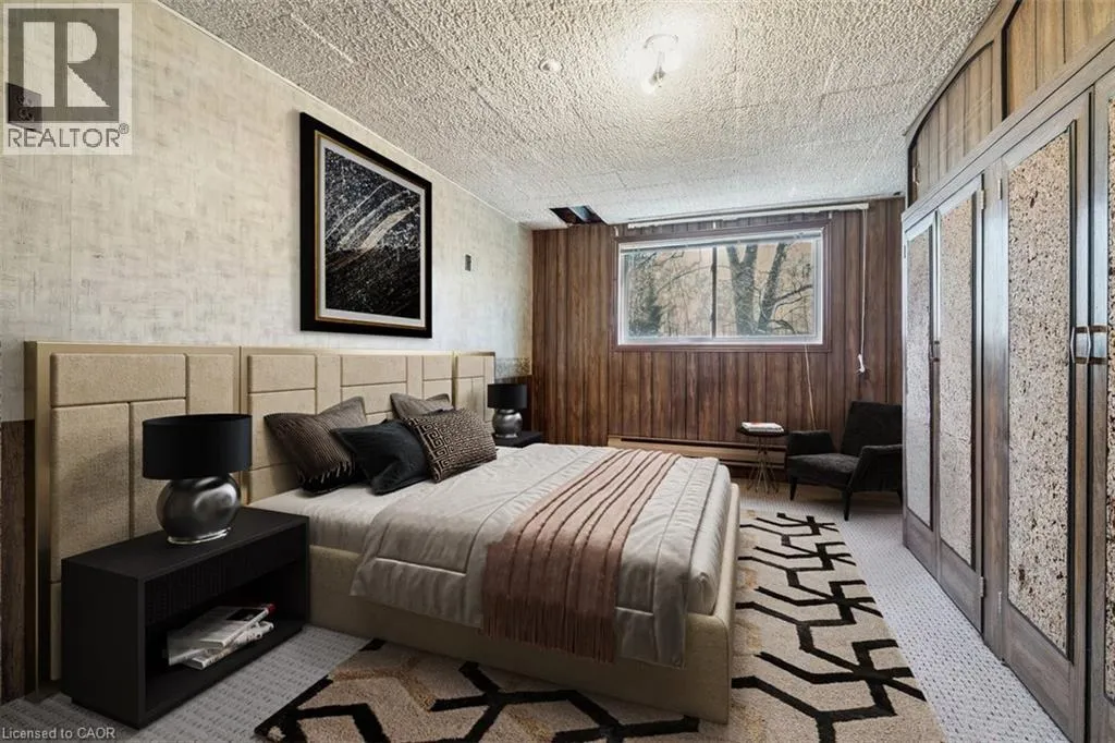 N. Service Rd to Kerns Rd, Kerns Rd to ""Tyandaga Mews"" Townhome Complex Welcome to beautiful Tyandaga, and the sought after Tyandaga Mews townhome complex. This well featured 1,566sf spacious home offers tremendous value, and is perfect for first time buyers, empty nesters, or anyone seeking to enjoy a low maintenance lifestyle. Boasting a brand new (Feb 2026) energy efficient heat pump, providing central heating and cooling for the main floor and upstairs bedrooms, with supplementary baseboard and fireplace heating if needed. Dine in the newly decorated dining room, where an abundance of natural light streams in through the extra large window. The large freshly painted living room with cozy fireplace is perfect for entertaining. For outdoor relaxation, there is great choice, with one balcony off of the Primary Bedroom, another balcony off of the dining room, and in the finished basement, a walk out to a welcoming patio, all overlooking the natural beauty of the well treed grounds. During those hot summer days, enjoy the outdoor pool centrally located within the complex. Great shopping and dining, community parks, and Tyandaga Golf Course are all within a five minute commute. Easy access to QEW, 403 and 407 highways. Easy visitor parking on the street. Condo fees including lawn care, snow clearing and repairs to major exterior components of the home. (id:27476)