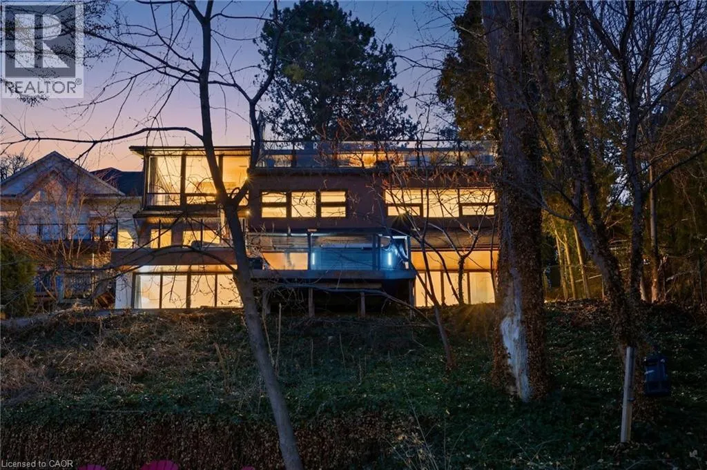 Head to Danforth Place in Burlington off Walkers Line, then follow the street to number 868 on the residential stretch. A rare waterfront setting in Burlington where land, water, and everyday living come together in a way that feels both natural and hard to find. Set on nearly half an acre with over 130 feet of shoreline and riparian rights, this home sits elevated above the bay with wide open views and a sense of space that immediately sets it apart. It feels quiet here, yet youâre still just minutes from everything you need. From the street, the home stays tucked away. As you make your way toward the water, it opens up around you. The view stretches out, the air changes, and the setting takes over. A standout feature is the hidden waterfront trail extending nearly half a kilometer along the shoreline, accessed directly from the property. It becomes part of your daily routine. Morning walks, runs along the water, or simply stepping out to reset. Life here naturally moves outdoors. Layered decks overlook the bay, creating space to gather, unwind, and take in the view. Mornings start quietly by the water. Afternoons bring time outside on the water or around the shores. Evenings slow down with sunsets and the occasional glow of fireworks across the harbour. Inside, the home spans three levels, each offering its own view of the water. The layout provides flexibility for living, working, and hosting, with a natural separation between spaces. Every season brings something different. Summer is active on the water. Fall brings quiet shoreline walks. Winter offers stillness and skating on colder days. Spring brings everything back to life. The Hidden Shore invites you outside, connects you to the water, and creates a lifestyle thatâs hard to replicate. Itâs a property you donât just live in. Itâs one you experience every day. (id:27476)