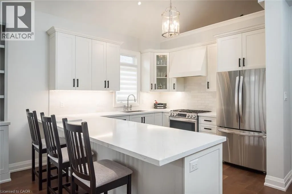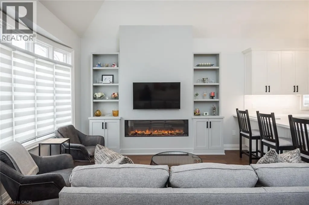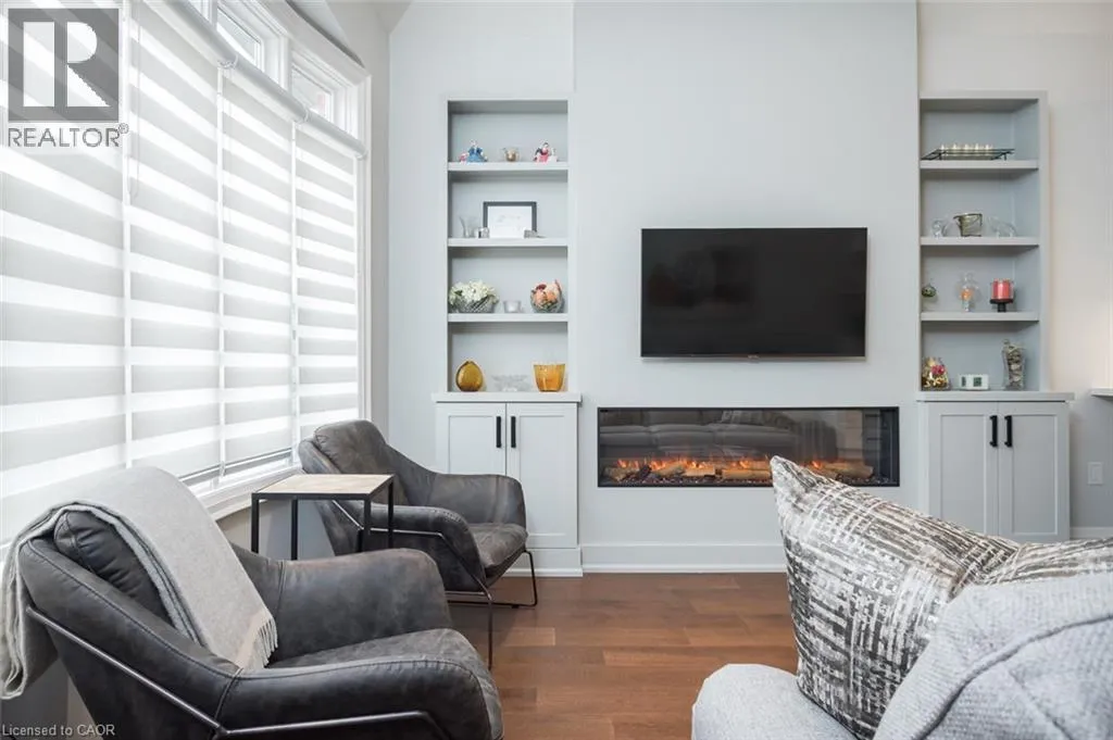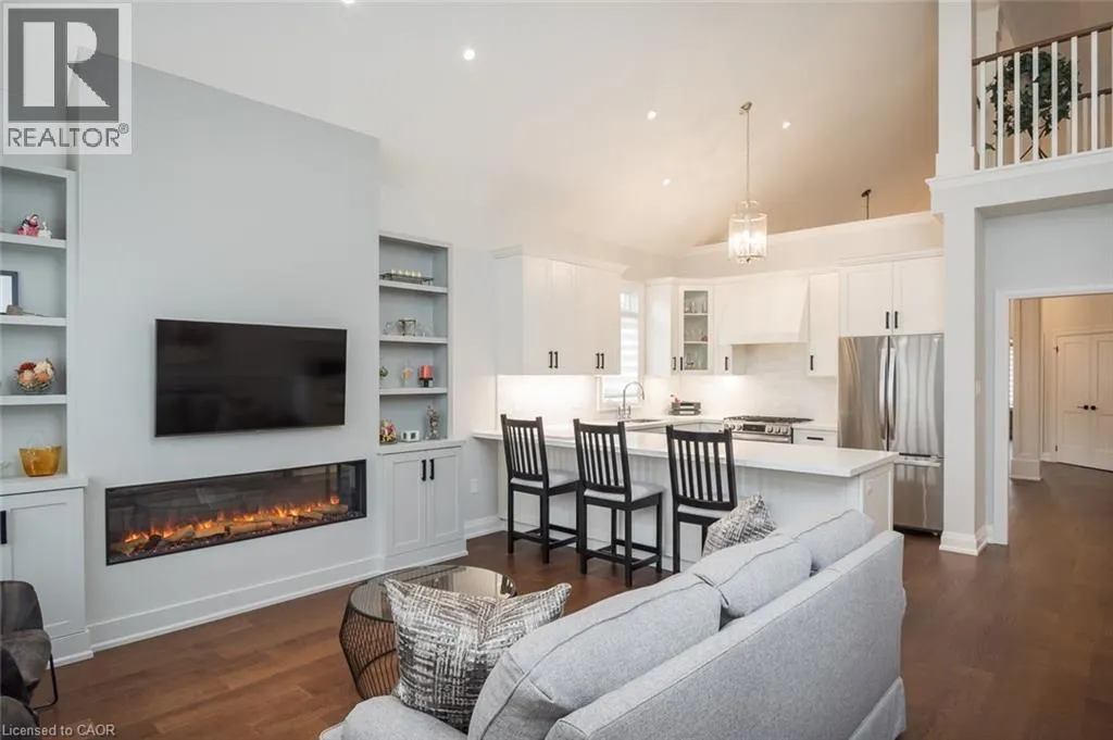 Country Club to Millcroft Park Drive, Millcroft Park Drive to Turnberry Newly renovated from top to bottom in 2024, this stunning bungaloft in one of Millcroftâs most serene enclaves is completely turn-key. Enjoy spacious main floor living with hardwood flooring, smooth ceilings, pot lighting, upgraded fixtures, designer hardware, and a custom electric fireplace with millwork surround. Soaring lofted ceilings and expansive rear windows fill the home with natural light, creating a bright and welcoming atmosphere. The custom kitchen features white cabinetry, quartz countertops, a custom hood vent, all stainless steel appliances (2024), and an oversized island with breakfast bar seating. The front den is the perfect space for a home office, quiet retreat, or guest room. The main floor primary suite includes a beautifully renovated ensuite with a custom glass shower, double vanity, designer tile, and access to a private sunroom. The professionally finished lower level adds valuable living space, upgraded 3-piece bathroom, vinyl flooring, and a large storage area, all waiting for your personal touches. Additional highlights include a double car garage, parking for four vehicles, a spacious front patio, open balcony accessible from the loft bedroom, main floor laundry, and a gas BBQ hookup. Ideally located just steps to top-rated schools and parks, and minutes to the 407, QEW, and Appleby GO, 4155 Stonebridge Cres. offers true lock-and-leave living. (id:27476)