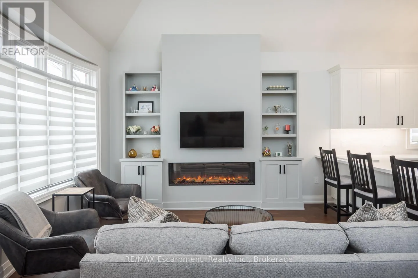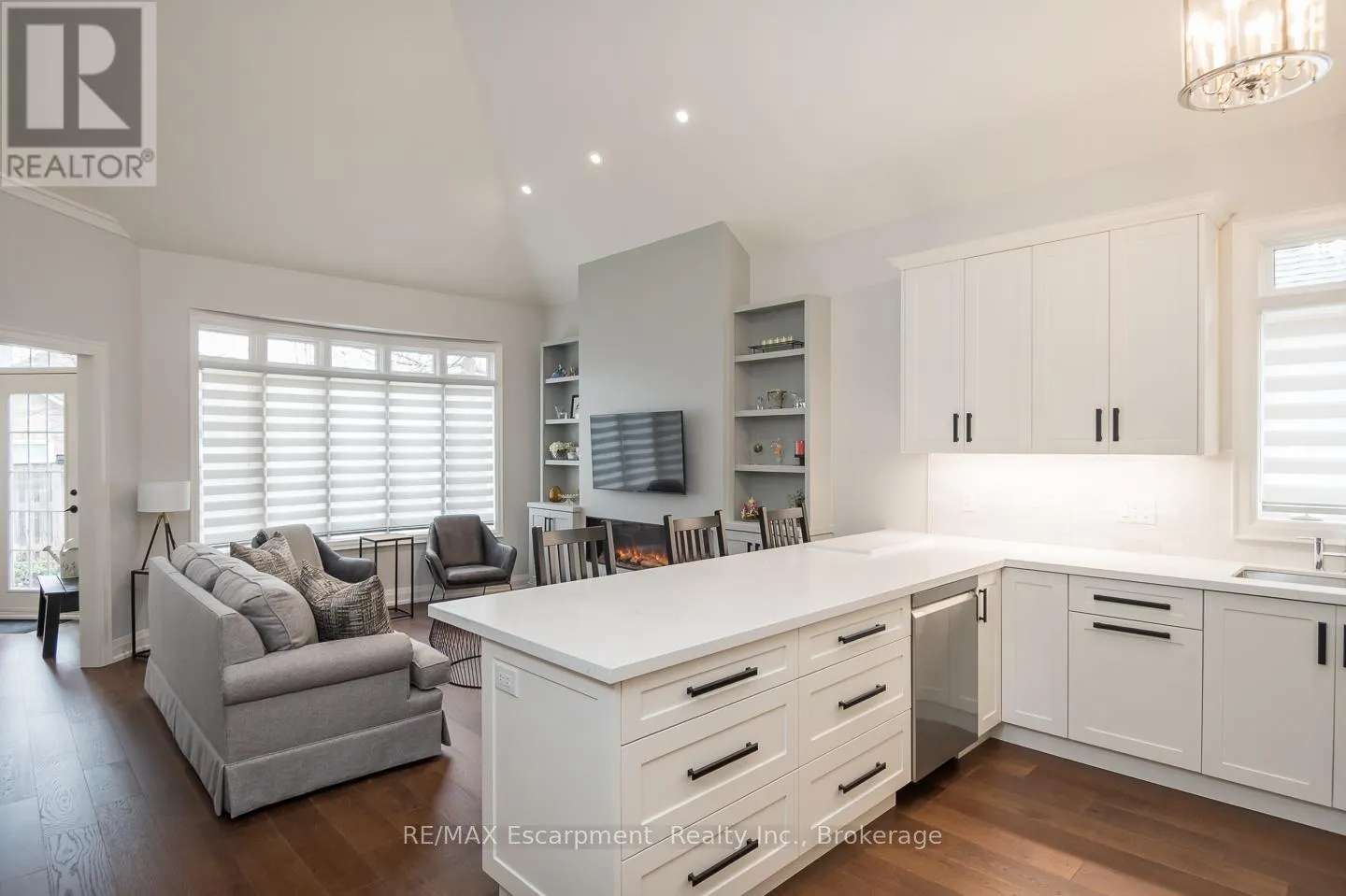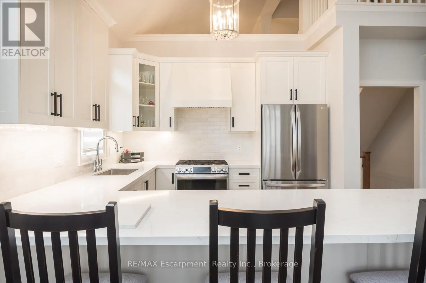 Cross Streets: Country Club to Millcroft Park Drive, Millcroft Park Drive to Turnberry. ** Directions: Turnberry. Newly renovated from top to bottom in 2024, this stunning bungaloft in one of Millcroft's most serene enclaves is completely turn-key. Enjoy spacious main floor living with hardwood flooring, smooth ceilings, pot lighting, upgraded fixtures, designer hardware, and a custom electric fireplace with millwork surround. Soaring lofted ceilings and expansive rear windows fill the home with natural light, creating a bright and welcoming atmosphere.The custom kitchen features white cabinetry, quartz countertops, a custom hood vent, all stainless steel appliances (2024), and an oversized island with breakfast bar seating. The front den is the perfect space for a home office, quiet retreat, or guest room. The main floor primary suite includes a beautifully renovated ensuite with a custom glass shower, double vanity, designer tile, and access to a private sunroom. The professionally finished lower level adds valuable living space, upgraded 3-piece bathroom, vinyl flooring, and a large storage area, all waiting for your personal touches. Additional highlights include a double car garage, parking for four vehicles, a spacious front patio, open balcony accessible from the loft bedroom, main floor laundry, and a gas BBQ hookup. Ideally located just steps to top-rated schools and parks, and minutes to the 407, QEW, and Appleby GO, 4155 Stonebridge Cres. offers true lock-and-leave living. (id:27476)