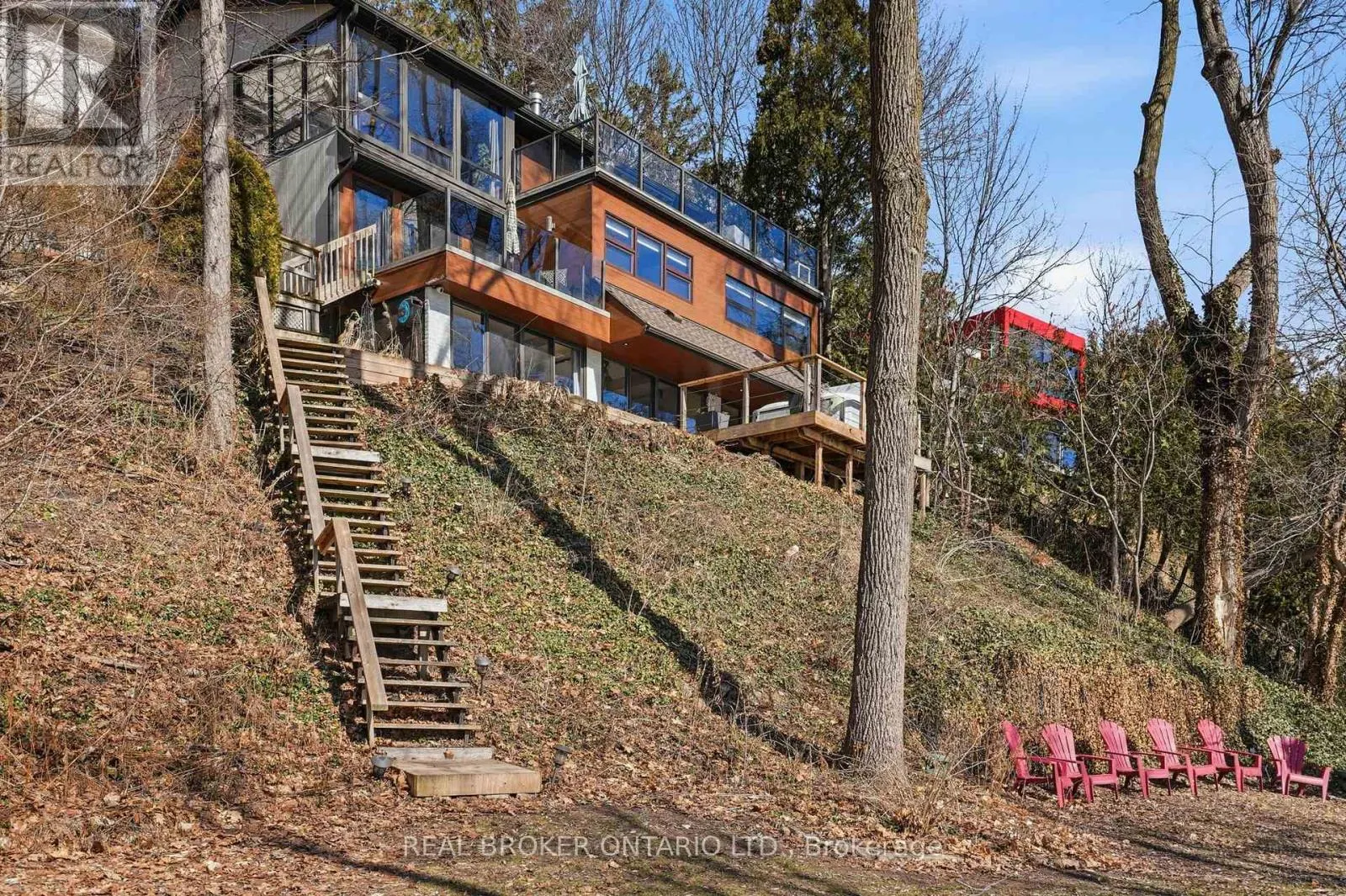 Cross Streets: Hendrie Ave. ** Directions: Head to Danforth Place in Burlington off Walkers Line, then follow the street to number 868 on the residential stretch. A rare waterfront setting in Burlington where land, water, and everyday living come together in a way that feels both natural and hard to find. Set on nearly half an acre with over 130 feet of shoreline and riparian rights, this home sits elevated above the bay with wide open views and a sense of space that immediately sets it apart. It feels quiet here, yet you're still just minutes from everything you need. From the street, the home stays tucked away. As you make your way toward the water, it opens up around you. The view stretches out, the air changes, and the setting takes over. A standout feature is the hidden waterfront trail extending nearly half a kilometer along the shoreline, accessed directly from the property. It becomes part of your daily routine. Morning walks, runs along the water, or simply stepping out to reset. Life here naturally moves outdoors. Layered decks overlook the bay, creating space to gather, unwind, and take in the view. Mornings start quietly by the water. Afternoons bring time outside on the water or around the shores. Evenings slow down with sunsets and the occasional glow of fireworks across the harbour. Inside, the home spans three levels, each offering its own view of the water. The layout provides flexibility for living, working, and hosting, with a natural separation between spaces. Every season brings something different. Summer is active on the water. Fall brings quiet shoreline walks. Winter offers stillness and skating on colder days. Spring brings everything back to life. The Hidden Shore invites you outside, connects you to the water, and creates a lifestyle that's hard to replicate. It's a property you don't just live in. It's one you experience every day. (id:27476)