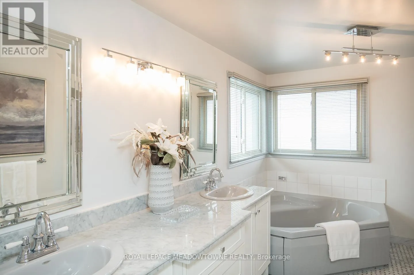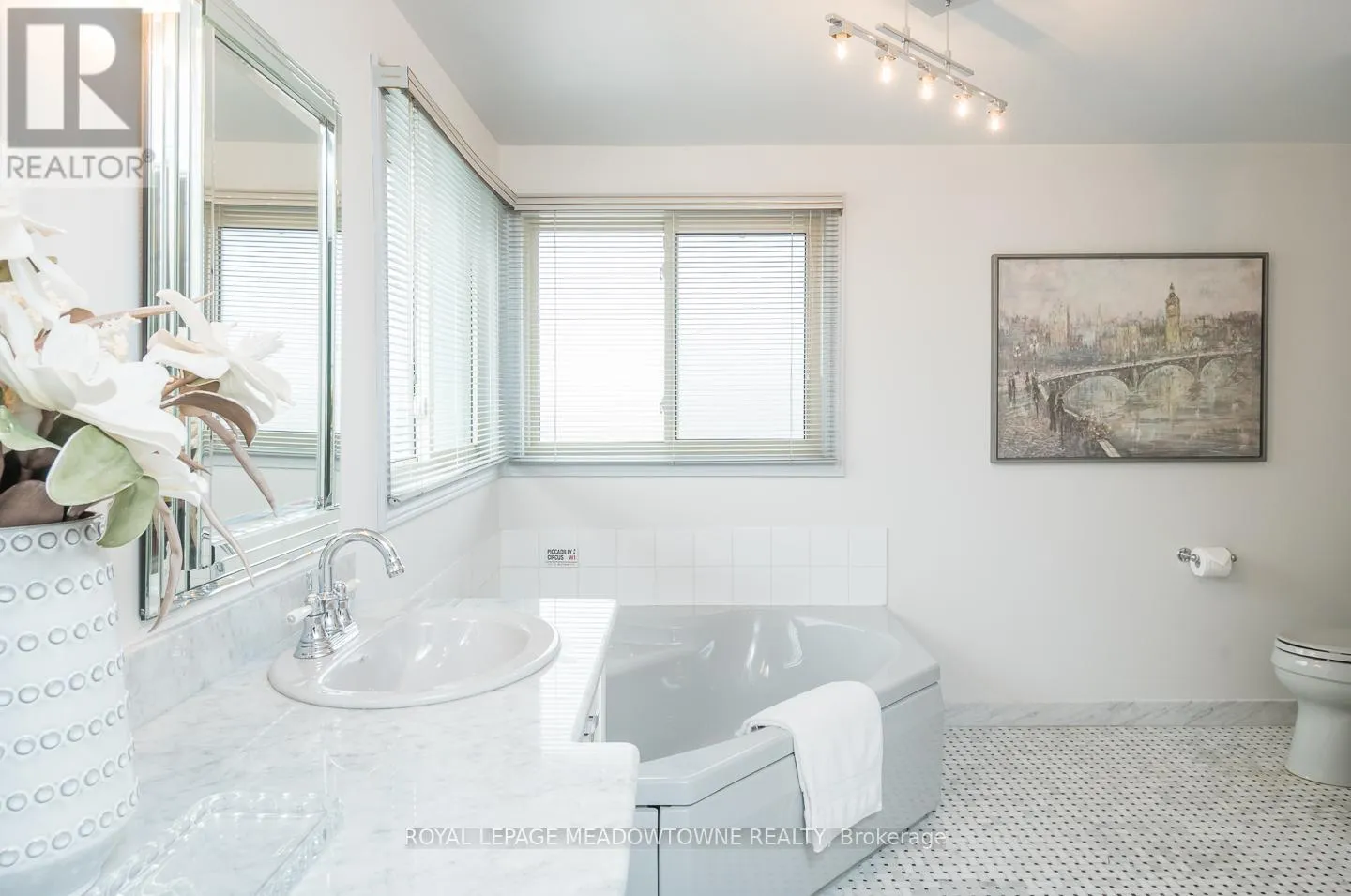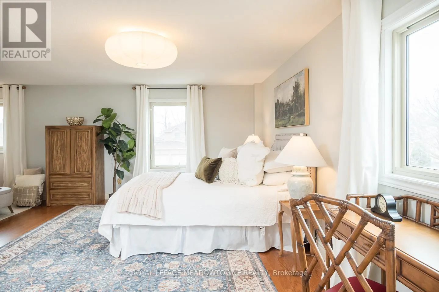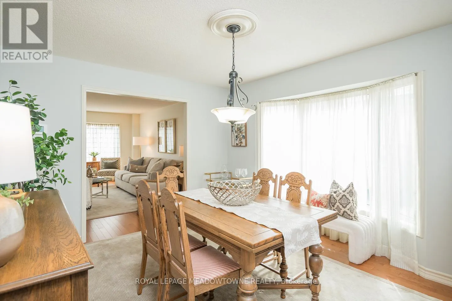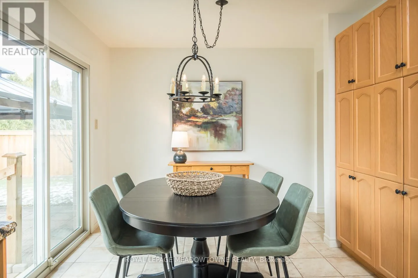 Cross Streets: Headon Forest Drive. ** Directions: Headon Forest Drive/Pinemeadow Dr. Welcome to this lovingly maintained all-brick two-storey home in Burlington's desirable Headon Forest neighbourhood, perfectly located just steps from the scenic trails and mature trees of Pinemeadow Park. Offering 3 spacious bedrooms and 3 full bathrooms, this home features a double car garage and double driveway. Inside, the carpet-free home offers a formal living room, a distinct dining room, and a comfortable family room with walkout access to the backyard. The spacious eat-in kitchen is designed for everyday living with solid stone counters, tile backsplash, warm-toned cabinetry with a pantry wall, black appliances, and direct backyard access. A convenient main floor laundry room includes interior garage access and a side door to the yard. Upstairs, the primary suite has been expanded from the original fourth bedroom to create a generous retreat complete with a walk-in closet and a 5-piece ensuite, while two additional bedrooms share a 4-piece main bath. The basement is partially finished with one completed room, while the remaining space offers excellent storage and room for a workshop or future finishing. (id:27476)