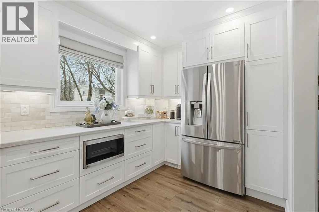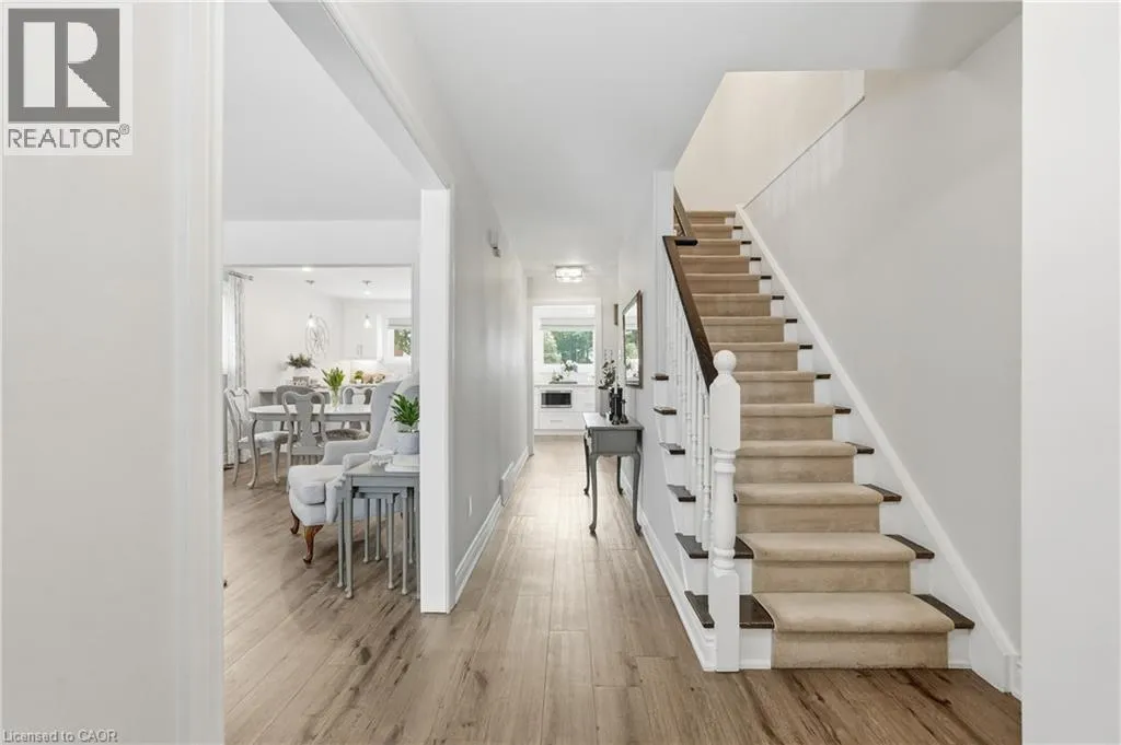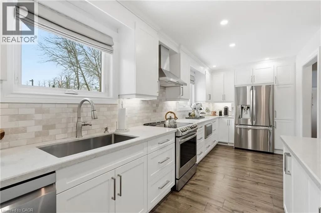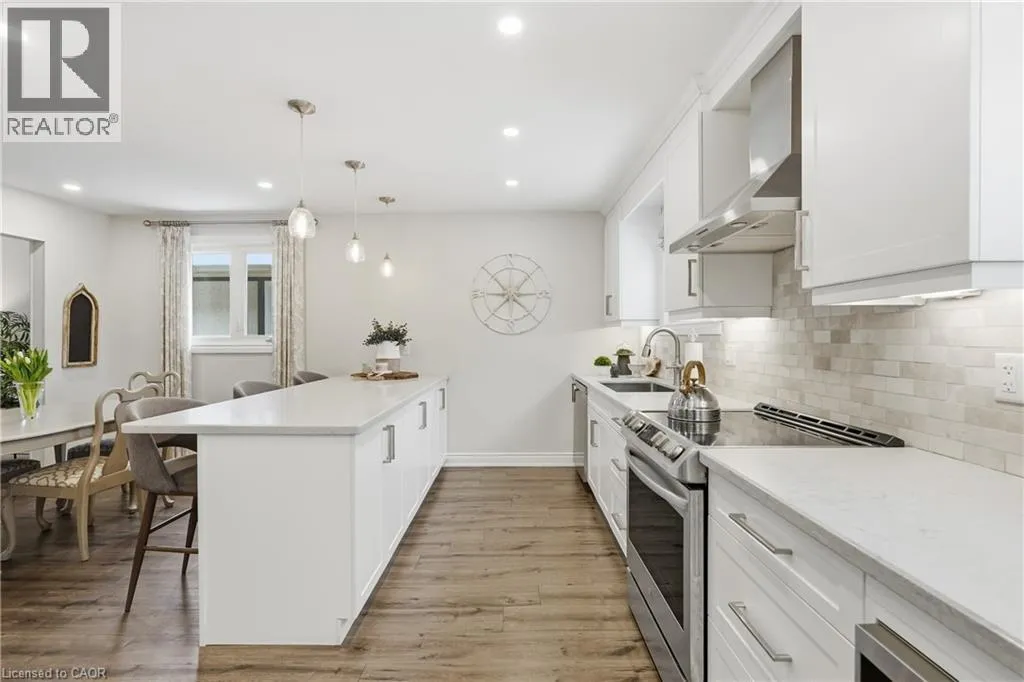 Appleby Line to Sheraton Rd to Brady Ave Welcome to 5054 Brady Avenue! Move-in ready and beautifully updated, this South Burlington home in the desirable Pinedale neighbourhood offers the perfect blend of style and modern convenience. Featuring 4 spacious bedrooms and 1.5 baths, this home offers a bright interior and a layout designed for comfortable everyday family living. The main level features new flooring, a bright living room with a large bay window, leading into the oversized kitchen and dining area. The kitchen is designed for both function and entertaining, complete with stainless steel appliances, stone countertops, a large island with eat-in space, pot lights, and large windows overlooking the private backyard. Enjoy convenient garage access, a main floor powder room, and a walkout to a fully fenced yard with a new deck. Upstairs offers four generous bedrooms and a 4-piece bath, while the finished lower level provides a comfortable recreation space, laundry, and a utility/workshop area. Extensive updates completed in 2019 include the kitchen, flooring, pot lights, windows, roof shingles, fence, deck, and electrical panel. Ideally located on a family-friendly street close to parks, top-rated schools, shopping, Appleby GO, the QEW, and just minutes to the lakefront. A fantastic opportunity to own in one of Burlingtonâs most sought-after communitiesâdonât miss it! (id:27476)