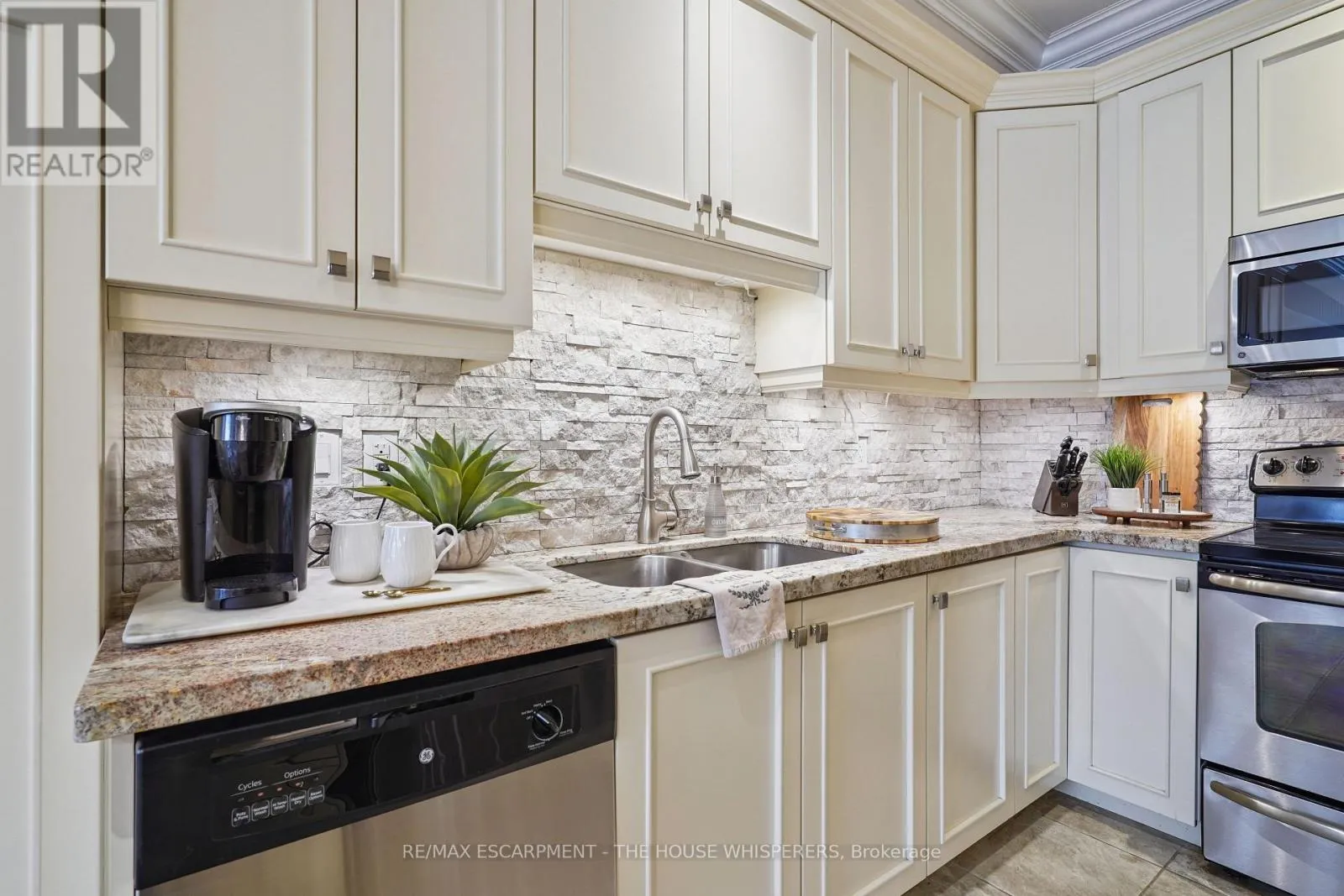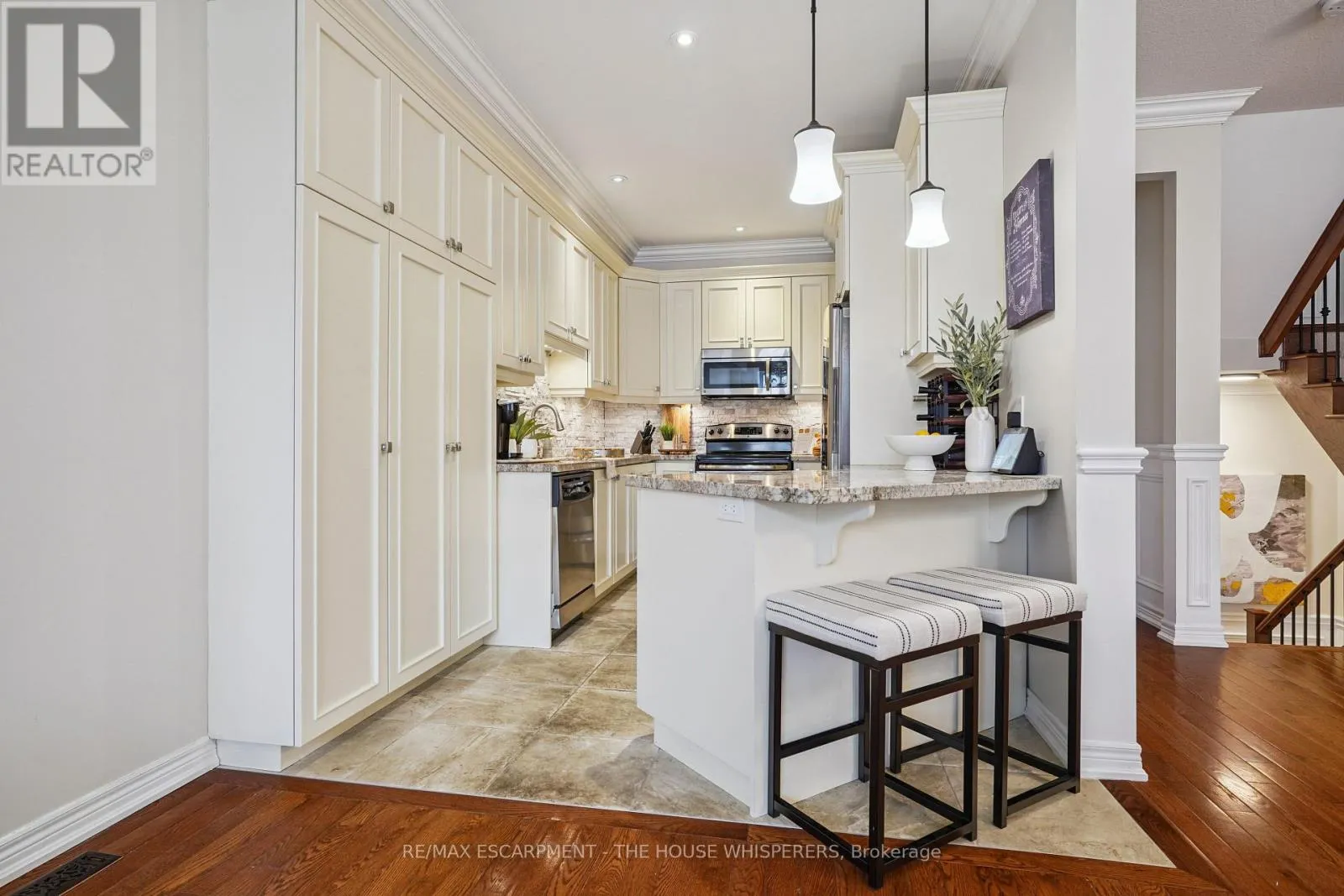 Cross Streets: Plains Rd W & Waterdown Rd. ** Directions: Last aisle way in the subdivision. Elegant. Luxurious. Completely Irresistible. From the moment you step inside, this stunning three-storey townhome wraps you in warmth and sophistication. Nestled in the charming and highly sought-after Aldershot neighbourhood on Burlington's desirable west end, this is the kind of home that doesn't just impress; it feels like home. Every detail has been thoughtfully curated. Rich hardwood flooring flows throughout, complemented by a classic oak staircase with wrought iron pickets, soaring 9-foot ceilings on the main floor, and custom crown moulding and wainscotting that speak to true craftsmanship. The chef-inspired kitchen is a showpiece in its own right, featuring custom cabinetry, striking stone countertops, and an elegant stone backsplash. Upgraded lighting sets the perfect ambiance, morning to evening. Step out onto your private balcony, a personal retreat for morning coffees, weekend BBQs, or simply soaking in the fresh air, overlooking a serene parkette with no neighbours across at the end of the complex. Upstairs, two generously sized bedrooms offer the ultimate in comfort. The primary suite is a true sanctuary, boasting dramatic vaulted ceilings and a spacious walk-in closet. Both beautifully appointed bathrooms feature stone countertops, adding a seamless touch of luxury throughout. Practicality meets elegance with your own private driveway and an extra-deep garage offering exceptional storage; a rare and coveted find. And the location? Simply unmatched. Restaurants, boutique shops, Lake Ontario, and scenic parks are all just steps away. A short drive brings you to Aldershot GO Station for effortless Toronto commutes, the world-renowned Royal Botanical Gardens, LaSalle Park, and a collection of premier golf courses. This is truly a turnkey treasure. Move in, place your furniture, and start living the life you've been dreaming of. Homes like this don't stay available for long. Book your private showing today and see for yourself why this is the one. (id:27476)