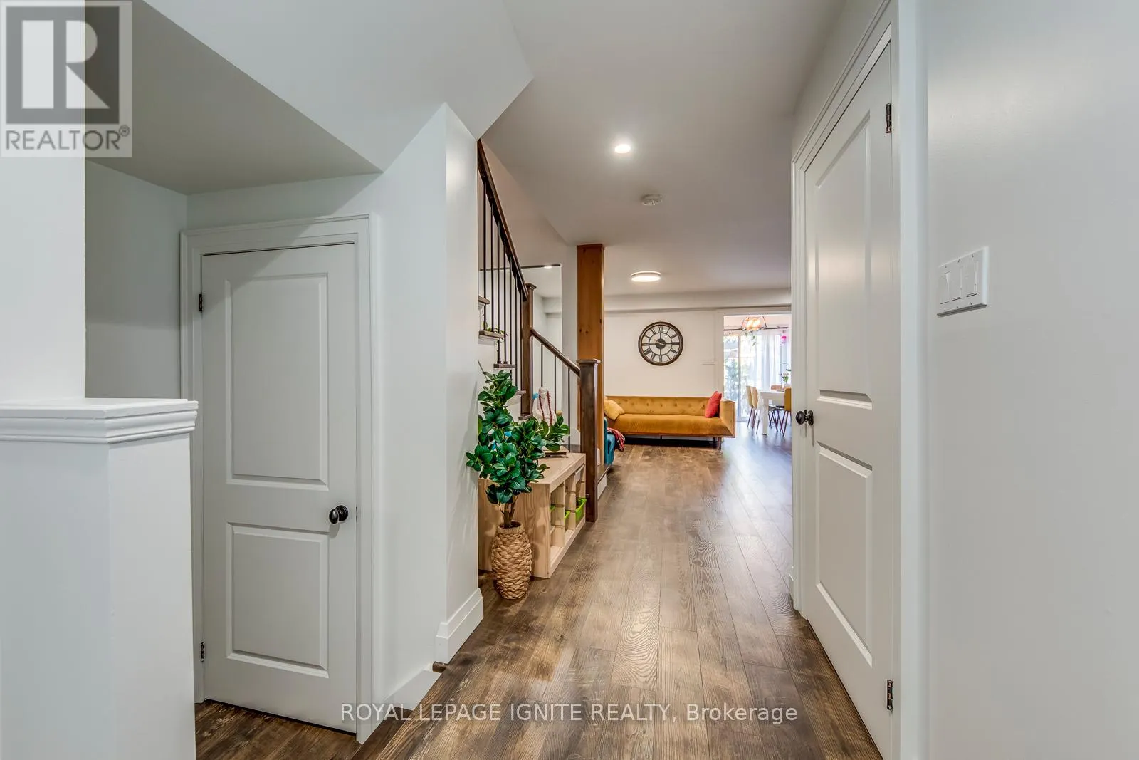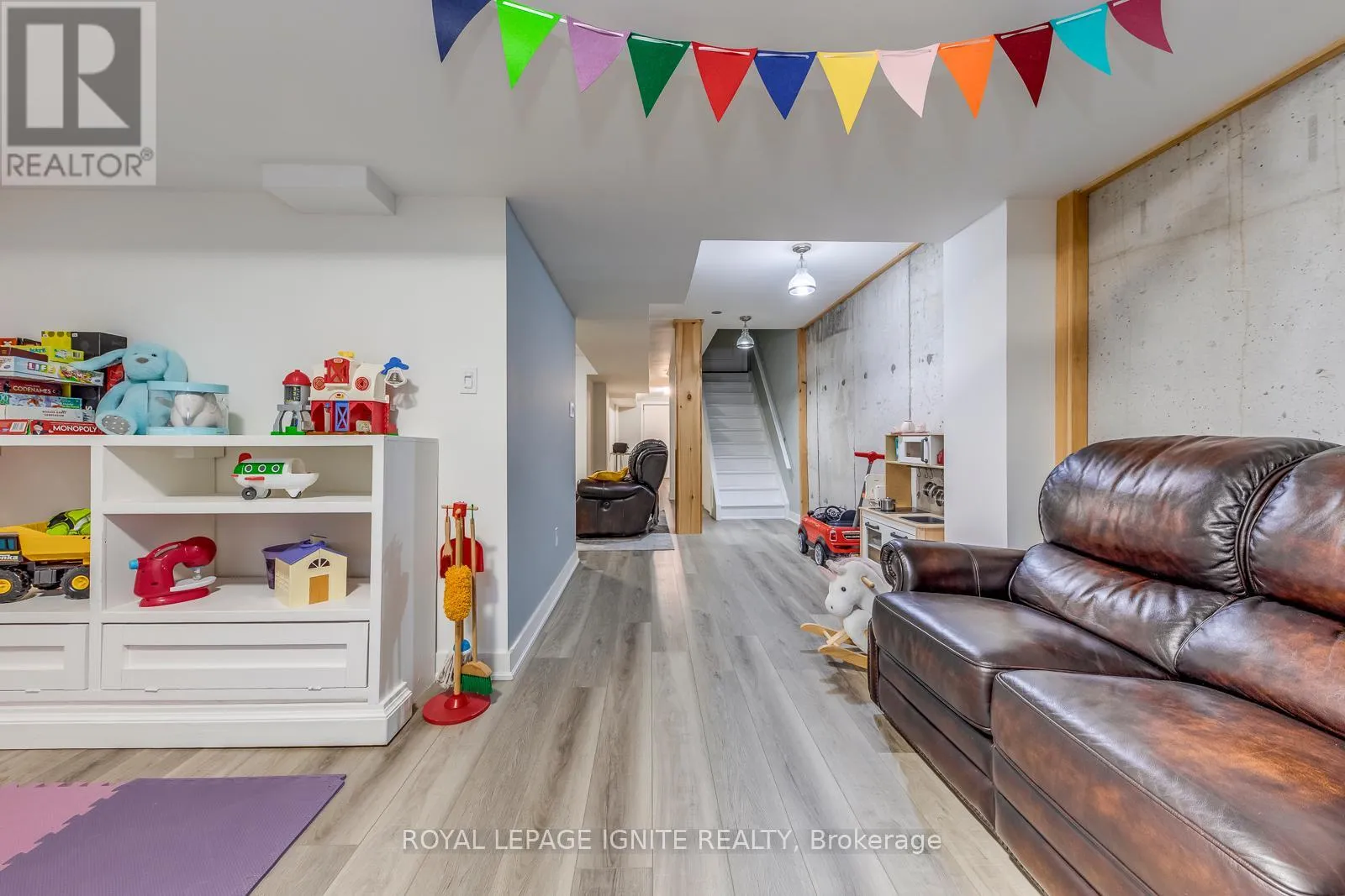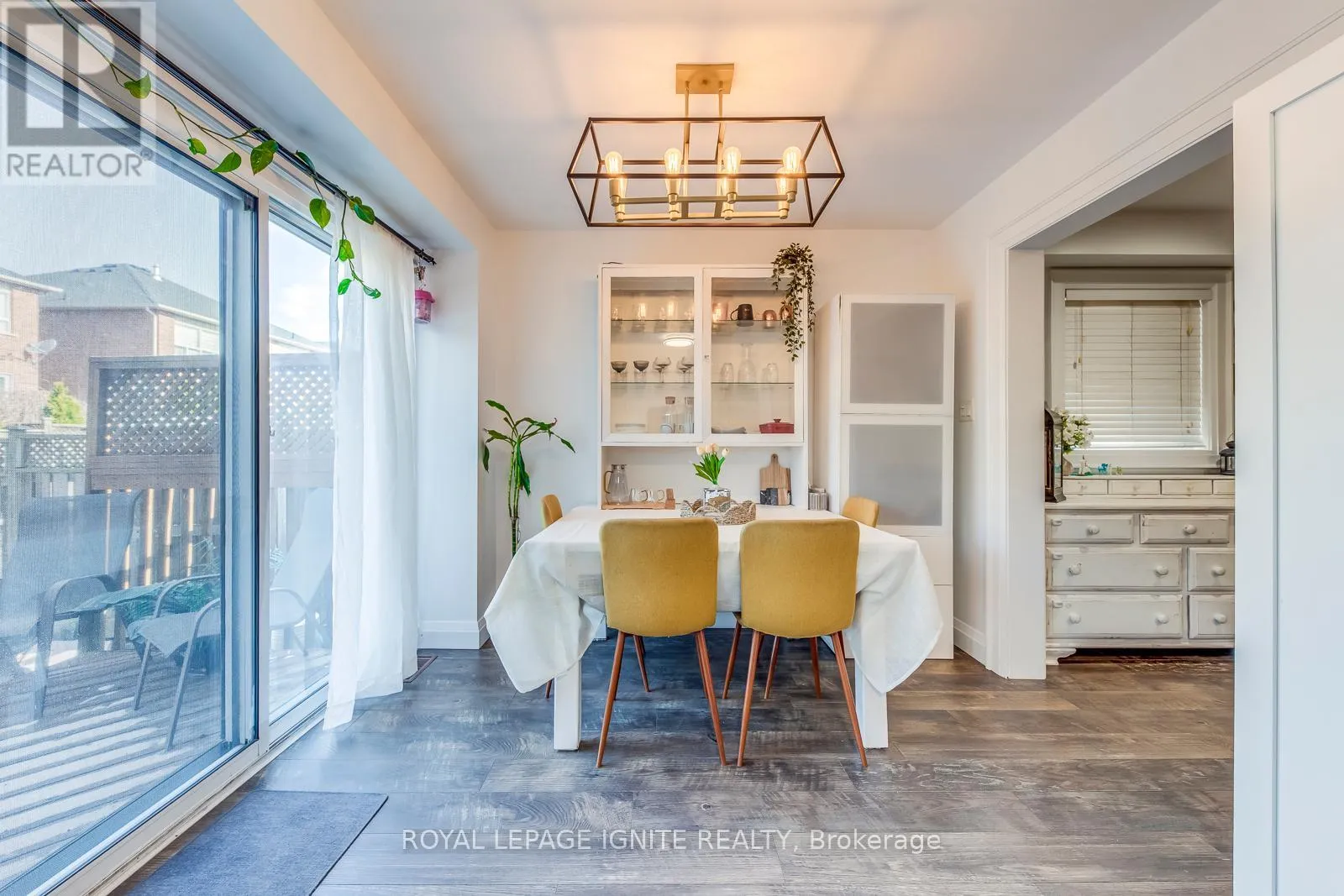 Qew South & Burloak Beautiful, well-maintained and upgraded townhouse, linked only by the garage with convenient door access to both the home and backyard. Features a bright and inviting living/dining area with a real stone gas fireplace. Modern kitchen with a large eat-in area, granite countertops, slate backsplash, stainless steel appliances, and walk-out to a wood deck. Wood staircase with iron pickets leads to the second floor with 3 spacious bedrooms, including a primary bedroom with a 4-piece ensuite, while the second and third bedrooms are also generously sized. Finished basement. Freshly painted and very well maintained.( Included: Built-in dining table and cabinet, TV in the living area, cabinetry in the storage area and basement Rec/playroom, patio maintenance tools, BBQ propane tank, two iron backyard chairs, plant pots and stands).. Enjoy a private, fully landscaped backyard with Arborvitae, white hydrangeas, and lilies-perfect for relaxing or entertaining. Great location within minutes to Fortinos, Longos, the Outlet Mall, and the upcoming Costco. Close to Food Basics, Shoppers Drug Mart, local shops, Cineplex, restaurants, cafes, beaches, and scenic trails. Near a community centre, parks, and just 7 minutes to Appleby GO. Located in a safe and quiet neighborhood with friendly neighbor's-perfect for comfortable family living. (id:27476)