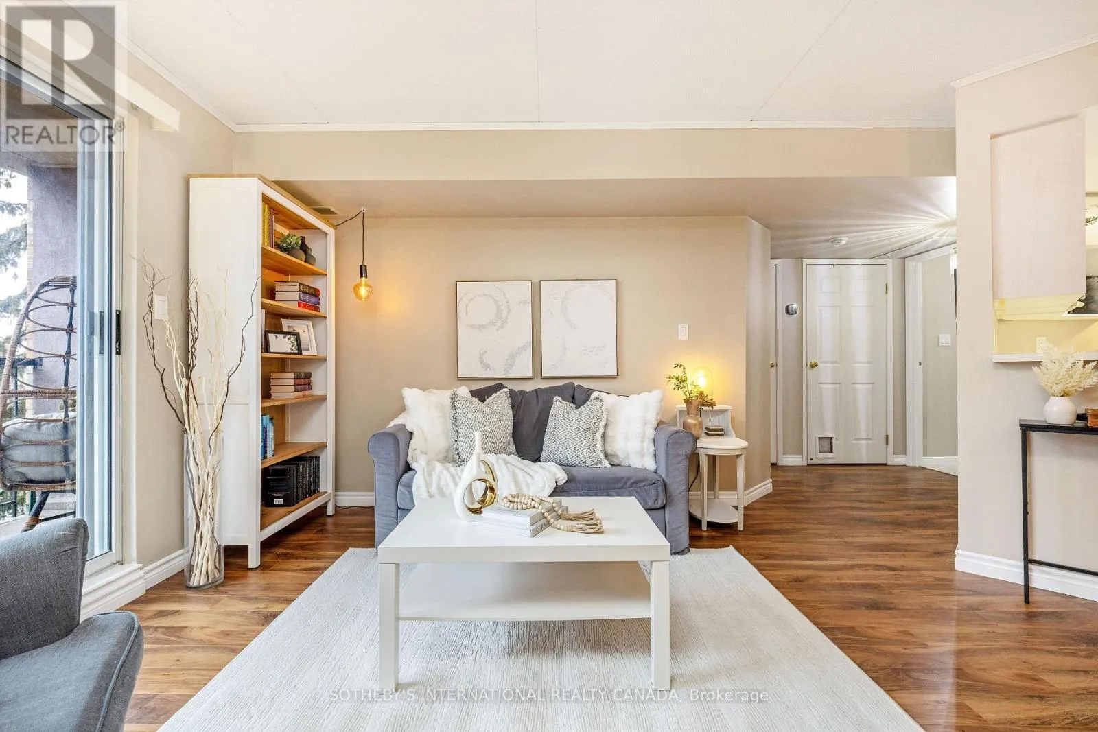 Walkers Line / Upper Middle Rd Welcome to this freshly painted top-floor condo featuring a bright open-concept floor plan and private balcony overlooking landscaped grounds. Finished in warm, neutral tones, this unit offers in-suite laundry, a locker conveniently located on the same level, and one owned underground parking space. Located in a quiet, well maintained building with excellent amenities including a meeting/party room, exercise room, common patio with BBQ, car wash station, and visitor parking. Recent building updates include a newly replaced roof with window replacements forthcoming. Ideally situated close to parks, shopping, public transit, and highway access, offering outstanding everyday convenience. (id:27476)