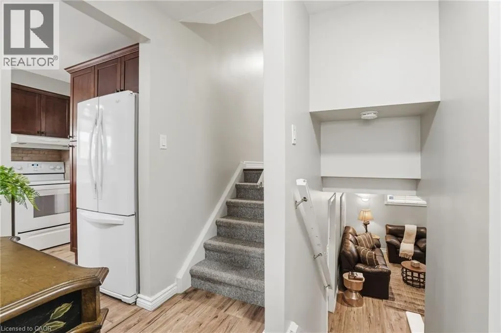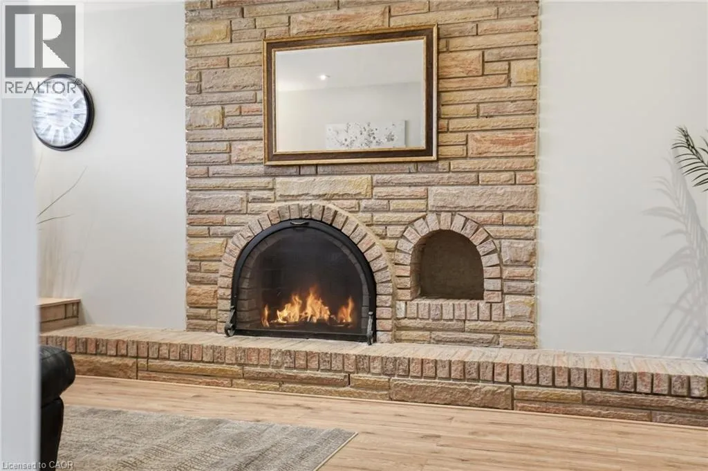 Burloak Dr to Spruce Ave to Erindale Dr Welcome to a home that truly stands out for both its setting and its functionality, backing directly onto a peaceful creek and tucked into a fantastic family friendly neighbourhood. This rare natural backdrop creates a private and serene outdoor experience that is hard to find and even harder to replace. The main level offers a bright and inviting layout with brand new hardwood flooring and fresh paint throughout. Three bedrooms and an updated main bathroom provide comfortable everyday living, while the unique design of this back split sets it apart. Two separate staircases lead to the lower level, one from the main living area and front entrance and the other conveniently located off the kitchen near the backyard door, offering flexibility for family living or entertaining. The lower level features a warm and welcoming recreation room complete with a WETT certified wood burning fireplace, perfect for relaxing evenings. A convenient two-piece bathroom and a large crawl space provide excellent additional storage options. Step outside and you will find a backyard that truly shines. Backing onto the creek, it offers a peaceful retreat with a connection to nature right at your doorstep. The heated workshop adds incredible versatility, ideal for a craftsperson, hobbyist, extra storage, or even a creative play space. Additional highlights include updated windows, a furnace that is four years old, new siding 10 years ago, a carport for covered parking, and a double wide driveway with space for two more vehicles. This is a home that blends comfort, character, and a setting that is simply exceptional. Donât be TOO LATE*! *REG TM. RSA. (id:27476)