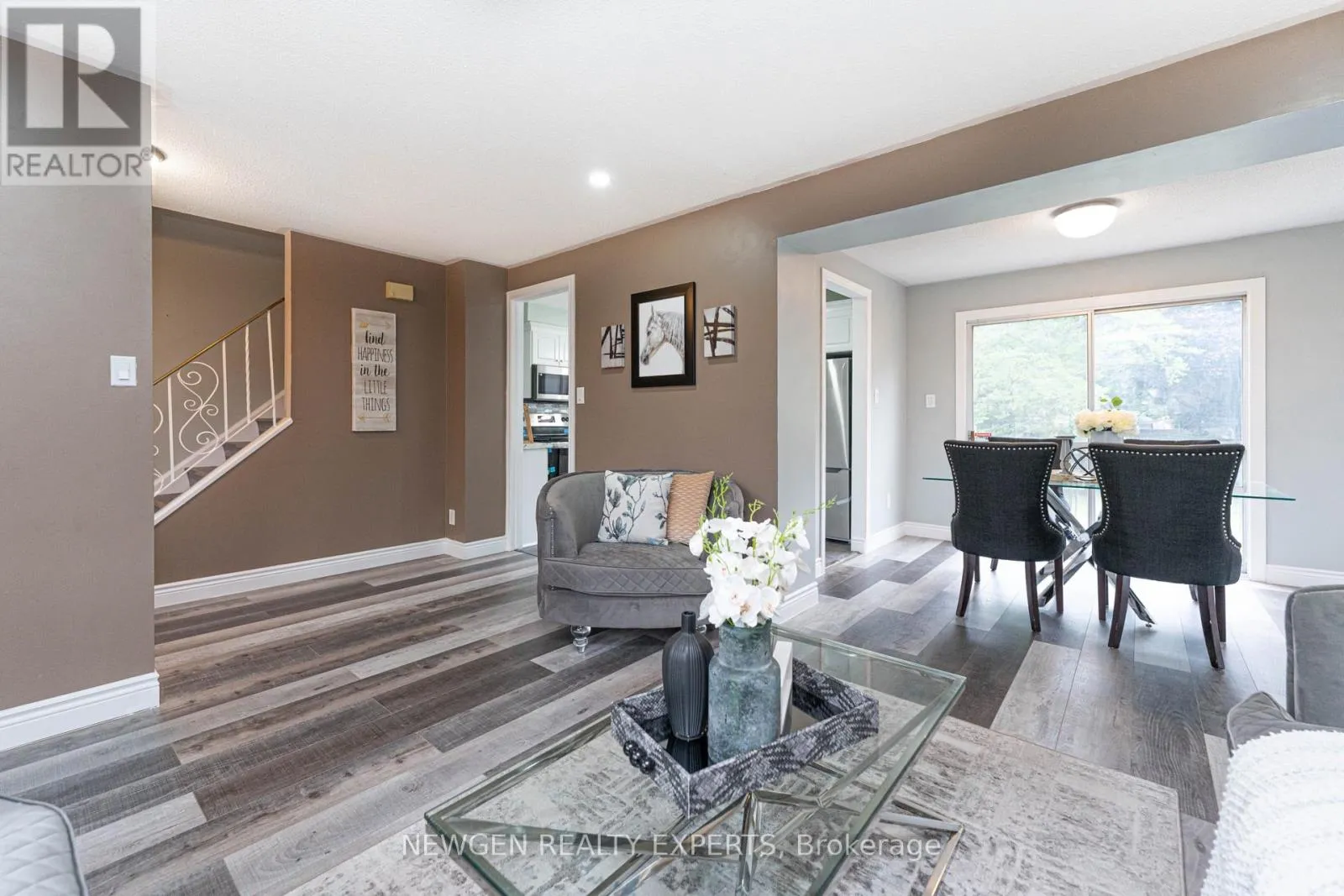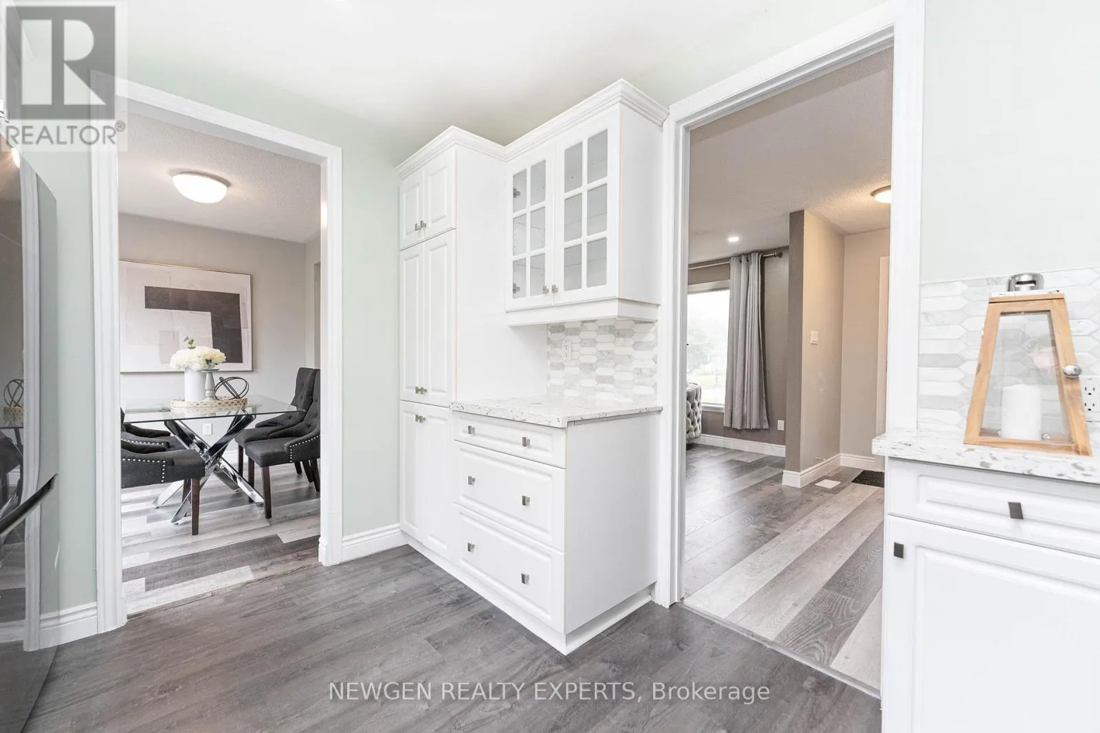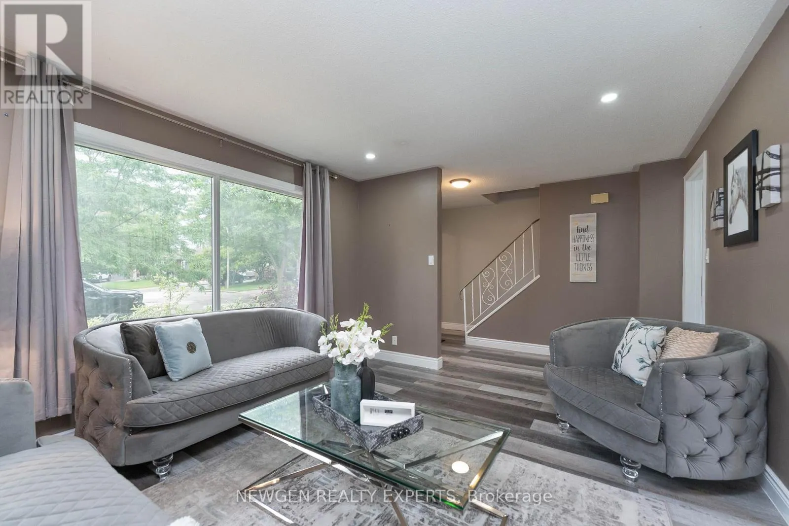 Mt. Forest and Colonsay Dr Welcome to 2458 Martin Court a beautifully upgraded semi-detached home tucked away on a quiet cul-de-sac in one of Burlington's friendliest neighbourhoods. This fully renovated, open-concept gem offers over 1800 sq ft of stylish living space and is truly move-in ready. Step into the bright and airy kitchen featuring quartz countertops, sleek stainless steel appliances, and a view of the backyard perfect for everyday living and effortless entertaining. Engineered hardwood flooring flows throughout the main level, enhancing the homes modern, cohesive feel. The sun-filled living room offers a large bay window that floods the space with natural light and opens to a dining area with a walkout to the backyard patio. Upstairs, you'll find three generously sized bedrooms with ample storage and a renovated main bath complete with elegant tile and a tub/shower combo. The professionally finished basement includes a cozy entertainment space, a second full bath with a walk-in shower, and the potential to be converted into an in-law suite. Enjoy summer evenings in the private backyard featuring an aggregate patio, lush greenery, mature trees, and beautiful landscaping for maximum privacy. With parking for three cars and the option to extend the driveway, this home checks all the boxes. Just minutes to the lake, parks, trails, and all major amenities, with quick highway access to the 407 and QEW this is Burlington living at its best. (id:27476)