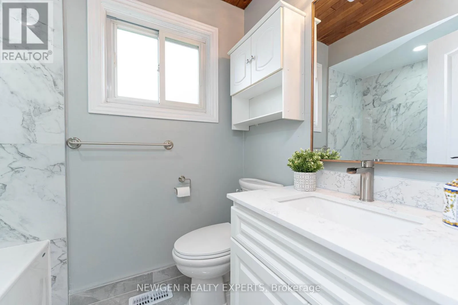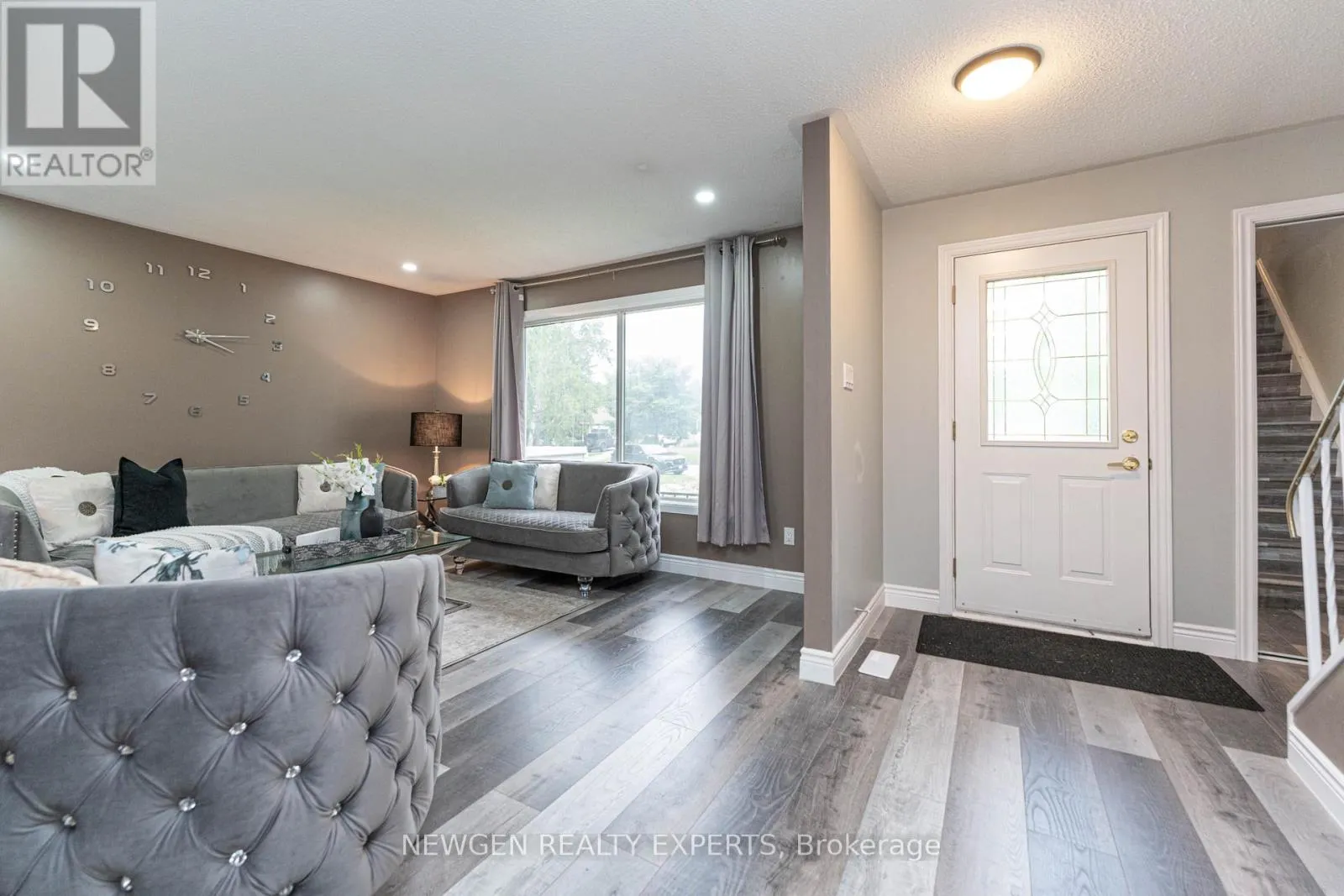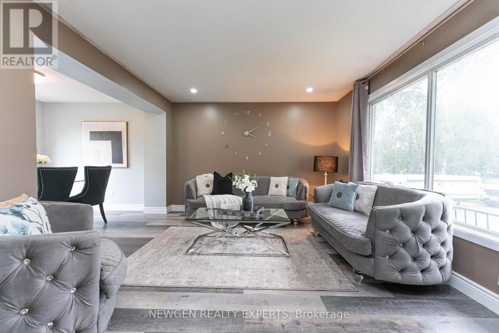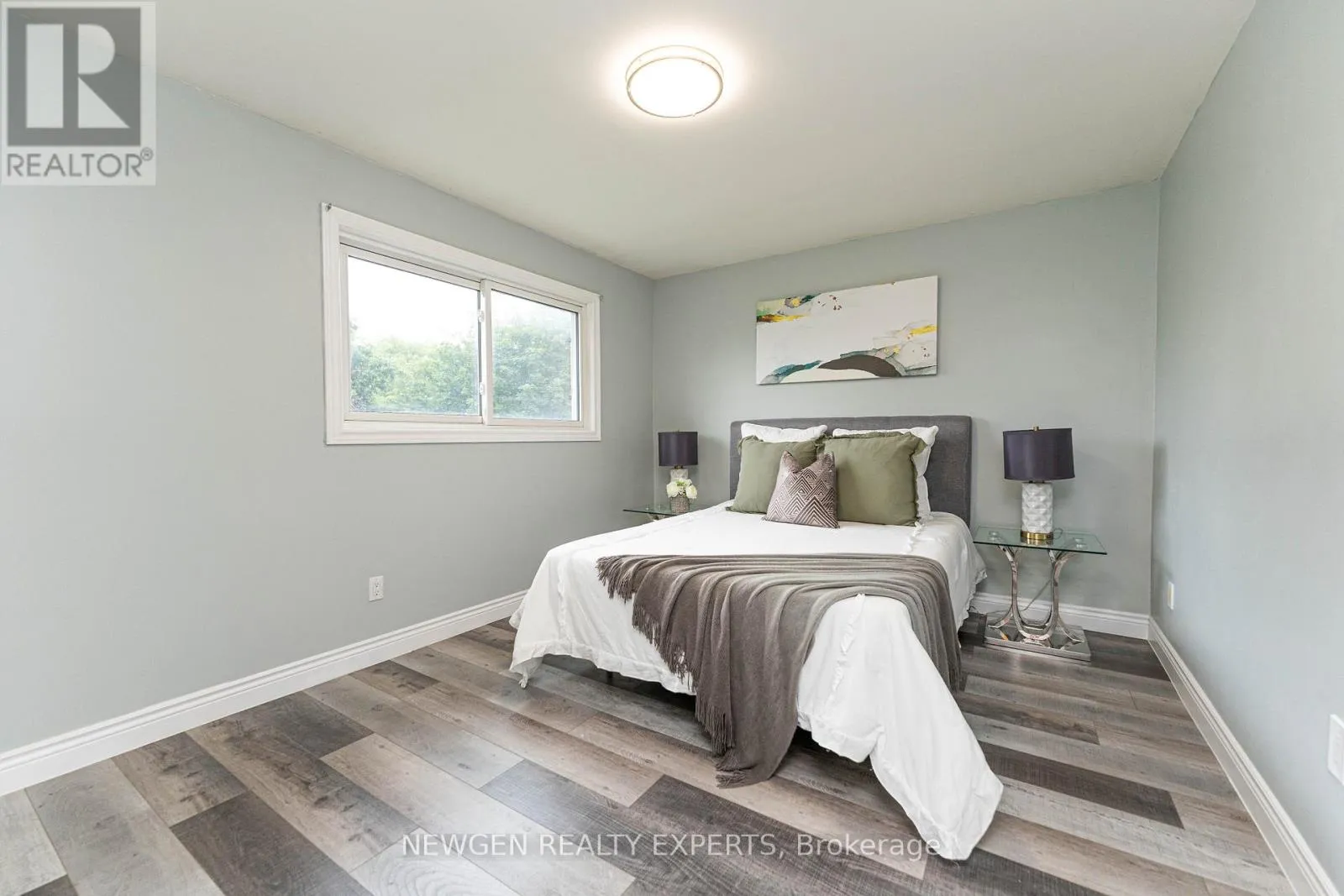 Mt. Forest and Colonsay Dr Welcome to 2458 Martin Court a beautifully upgraded semi-detached home tucked away on a quiet cul-de-sac in one of Burlington's friendliest neighbourhoods. This fully renovated, open-concept gem offers over 1800 sq ft of stylish living space and is truly move-in ready. Step into the bright and airy kitchen featuring quartz countertops, sleek stainless steel appliances, and a view of the backyard perfect for everyday living and effortless entertaining. Engineered hardwood flooring flows throughout the main level, enhancing the homes modern, cohesive feel. The sun-filled living room offers a large bay window that floods the space with natural light and opens to a dining area with a walkout to the backyard patio. Upstairs, you'll find three generously sized bedrooms with ample storage and a renovated main bath complete with elegant tile and a tub/shower combo. The professionally finished basement includes a cozy entertainment space, a second full bath with a walk-in shower, and the potential to be converted into an in-law suite. Enjoy summer evenings in the private backyard featuring an aggregate patio, lush greenery, mature trees, and beautiful landscaping for maximum privacy. With parking for three cars and the option to extend the driveway, this home checks all the boxes. Just minutes to the lake, parks, trails, and all major amenities, with quick highway access to the 407 and QEW this is Burlington living at its best. (id:27476)