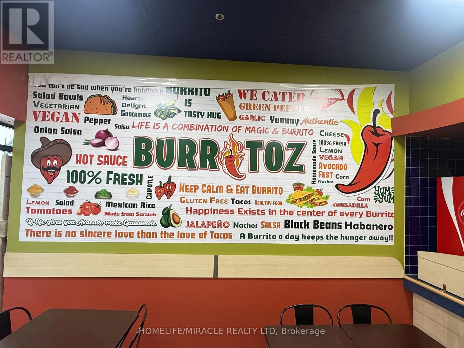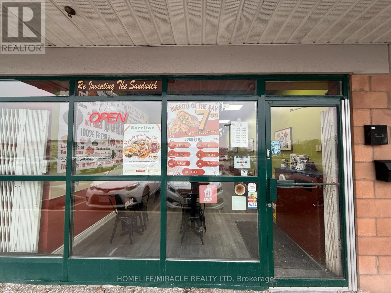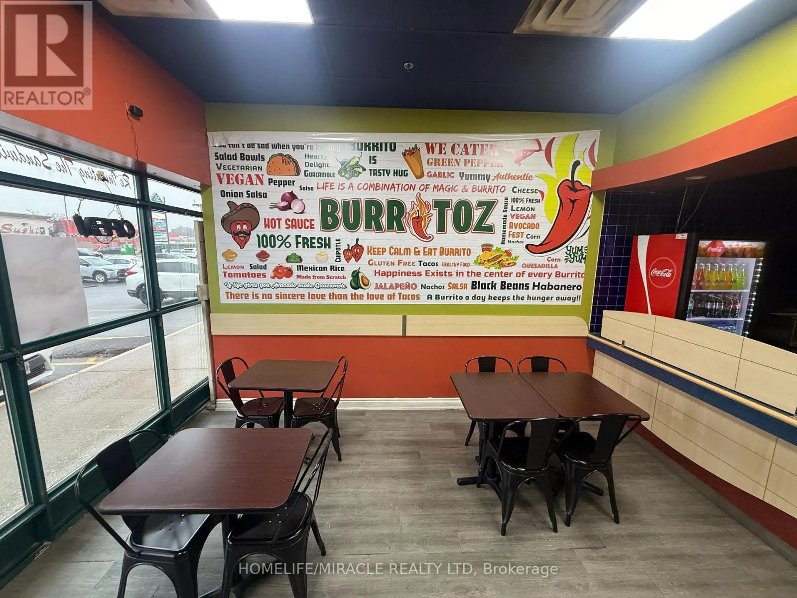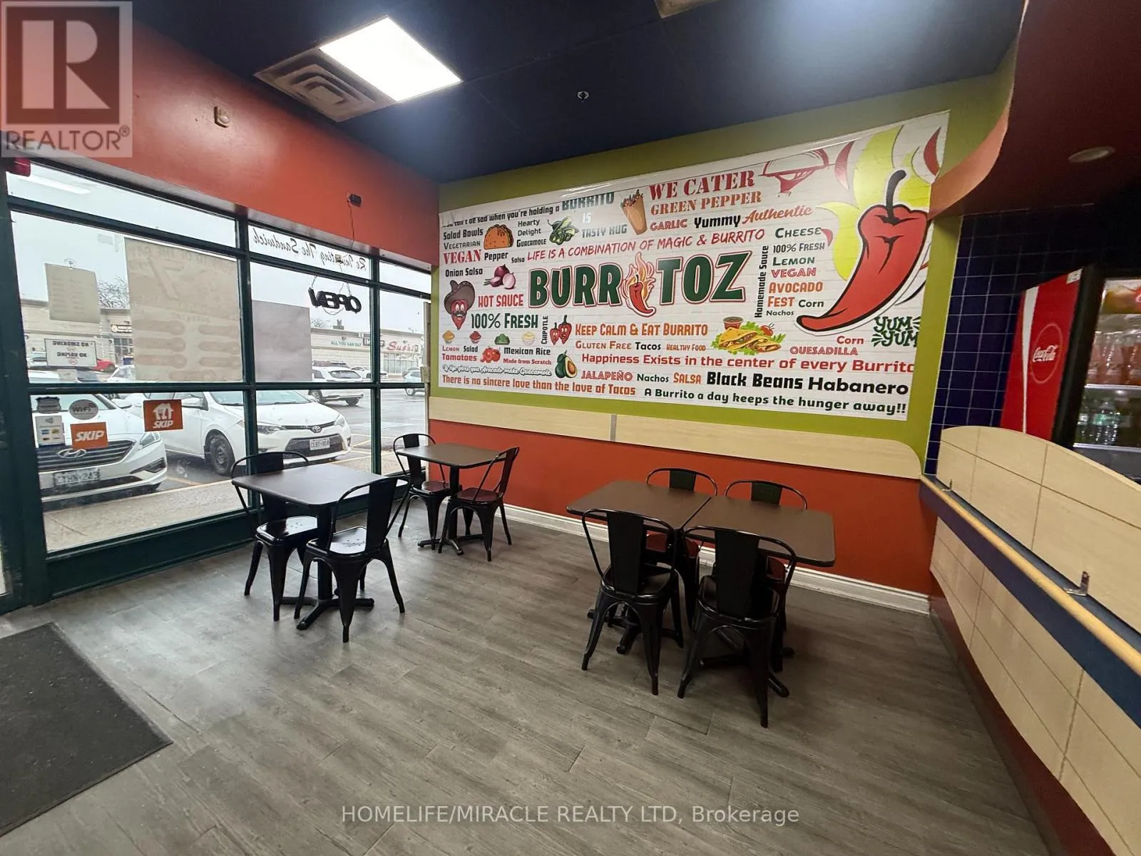 Cross Streets: Brant St/Plain Rd E. ** Directions: Turn right on Brant St. BURRITOZ business in Burlington is For Sale. Located at the intersection of Brant St/Plain Rd E. Surrounded by Fully Residential Neighbourhood, Office Buildings, close to Hwy 403, QEW, Schools, Lots of foot traffic, busy area and much more. Great business that with Good Sales, Long Lease and so much opportunity to grow the business even more. Rent: $3407.58/m including TMI & HST, Lease: Existing 4 + 5 years option to renew, Store Area: Approx. 900sqft. (id:27476)
