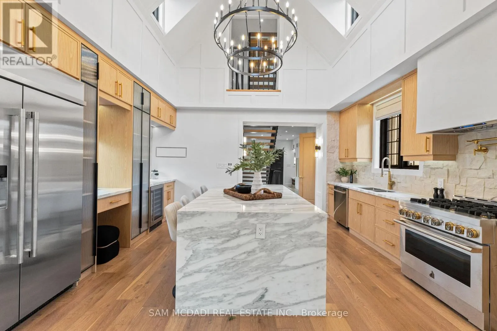 Cross Streets: Rebecca St/Fourth Line. ** Directions: Heading West from Rebecca St, Turn Right Onto Fourth Line, Then Right onto Unsworth Ave. Welcome to the famous George Unsworth home, a high quality Neo-Tudor style home constructed with cut & carved stone alongside a textured stucco exterior finish. Redesigned by renowned architect Walter Scott, and located in Aldershot's upscale neighbourhood, this beautiful home w/ approximately 5,000 SF total has been completely reimagined w/ a modern yet charming design. Upon entering, you'll find large principal rooms enhanced with sophisticated hardwood floors, LED pot lights, panelled walls, and more. At the heart of this home is where you'll locate the chef's kitchen elevated w/ a centre island, stone countertops, JennAir appliances, charming stone backsplash and ample cabinetry space. Overlooking the kitchen is the grand family room, which boasts cathedral ceilings, a stone fireplace, and direct access to your covered outdoor patio, perfect for al-fresco dining with loved ones. Also on this level is the formal living room, which features a fireplace, wood beam ceilings, and access to the outdoor patio, as well as a home office perfect for professionals working from home. Ascend to the owner's suite, curated with a boutique inspired walk-in closet, a wet-bar, and an oversized 6-pc ensuite w/ heated floors, a soaker tub, and a rainfall shower. 2 more bedrooms with built-in closets and a shared 3-pc bath with heated floors are down the hall. The loft can easily serve as a nanny or in-law suite, featuring a spacious bedroom w/ a 3-pc ensuite, a seating area, and a separate laundry room. The basement completes this home with perfect entertainment spaces incl: a wet bar, a large recreation room, a 5th bedroom, a 3-pc bath w/ heated floors, and a den that can serve as a gym, play room, spa, or theatre - the possibilities are endless. Beautifully situated in a highly rated family oriented neighbourhood nearby top rated schools, grocery stores, shopping malls, lakeside parks and trails & more. A piece of history with a modern twist! (id:27476)