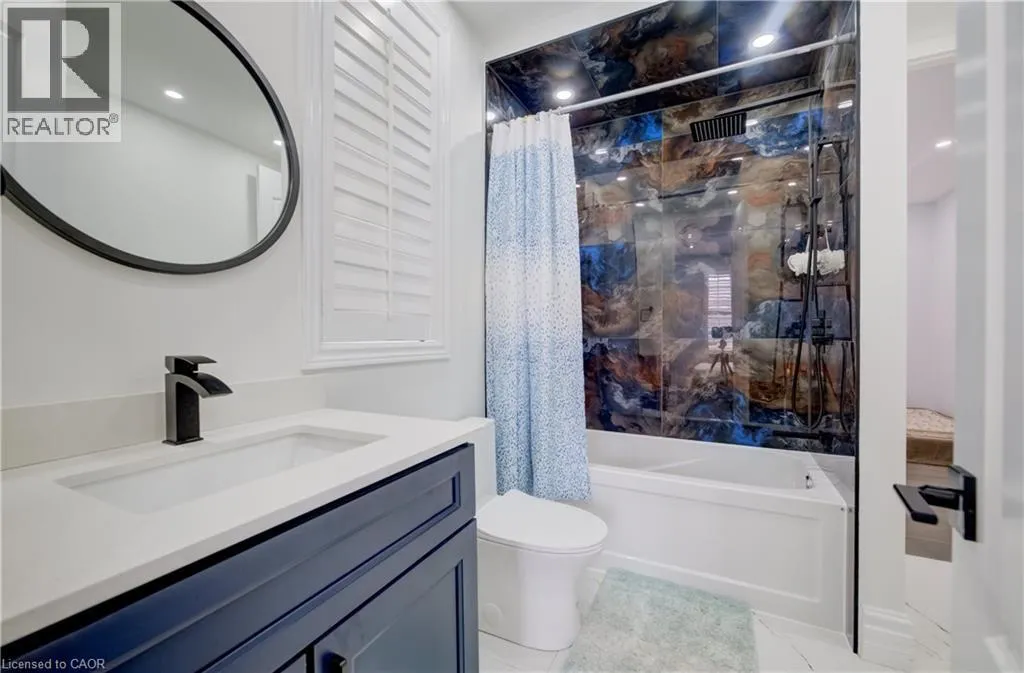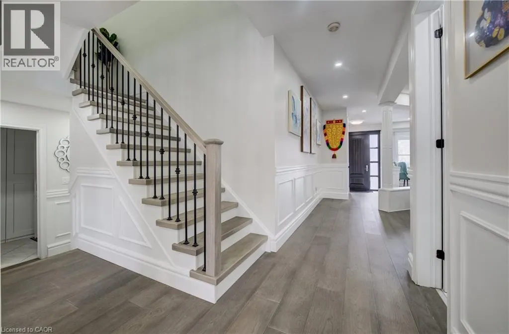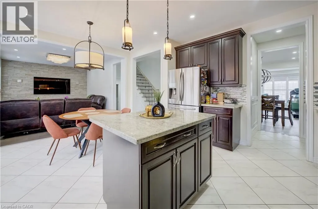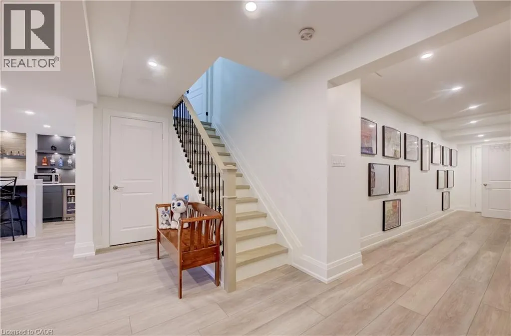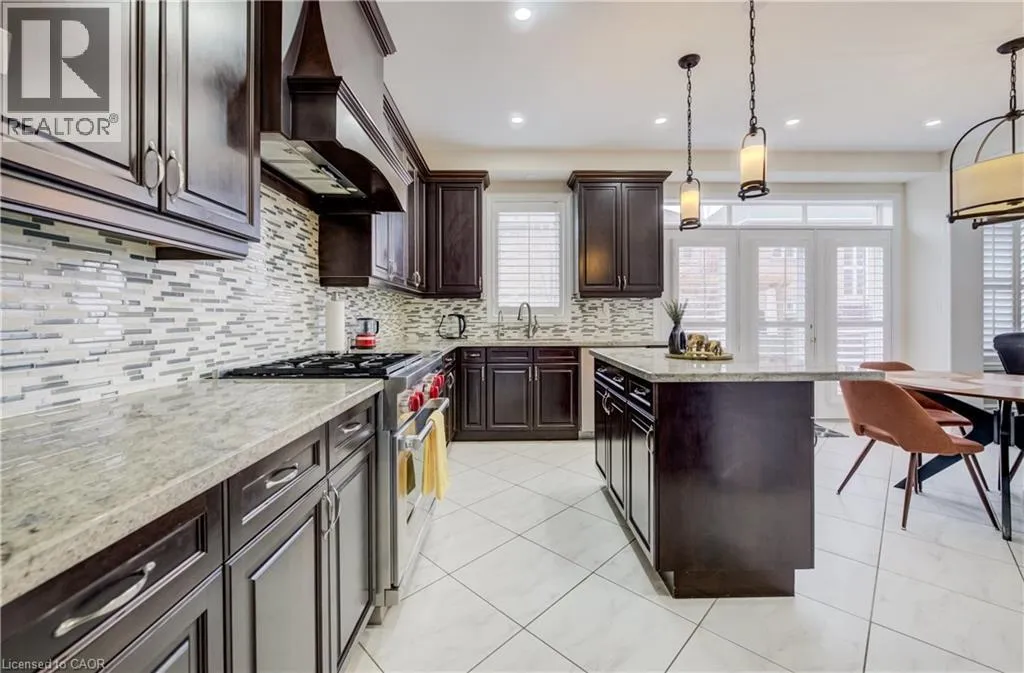 Welcome to 4612 Doug Wright Drive, a stunning family home nestled in Burlingtonâs highly sought-after Alton Village. This meticulously maintained 2-storey detached residence offers the perfect blend of luxury, comfort, and functionality, with approximately 3,000 sq ft of beautifully finished above-grade living space. Designed with modern family living in mind, this spacious home features 4 generously sized bedrooms and 5 well-appointed bathrooms, ideal for growing families or those who love to host. Soaring 9-foot ceilings on both floors enhance the sense of openness, while a solid oak staircase with elegant iron spindles creates a striking architectural focal point. Upgraded light fixtures and pot lights throughout add a touch of sophistication to every room. At the heart of the home is a gourmet kitchen, complete with granite countertops, a central island, and sleek modern finishes, perfect for everyday living and entertaining alike. The professionally finished basement is a true showstopper, offering a luxurious retreat with a custom wine cellar, a stylish quartz bar, and an inviting entertainment area featuring a fireplace set against a stunning marble accent wall. Step outside to your own private backyard oasis, thoughtfully designed for entertaining. Enjoy a professional interlocking stonework, ambient mood lighting, and the convenience of a full irrigation system creating the perfect setting for gatherings year-round. Ideally located, this home is close to top-rated schools such as St. Anne Catholic Elementary School and Dr. Frank J. Hayden Secondary School. Commuters will appreciate easy access to major highways including the 407, 403, and QEW, along with the nearby Appleby GO Station. Enjoy the convenience of being just minutes from shopping, dining, parks, and all the amenities that make Alton Village one of Burlingtonâs most desirable communities. This is a rare opportunity to own a truly exceptional home in a prime locationâdonât miss it! (id:27476)