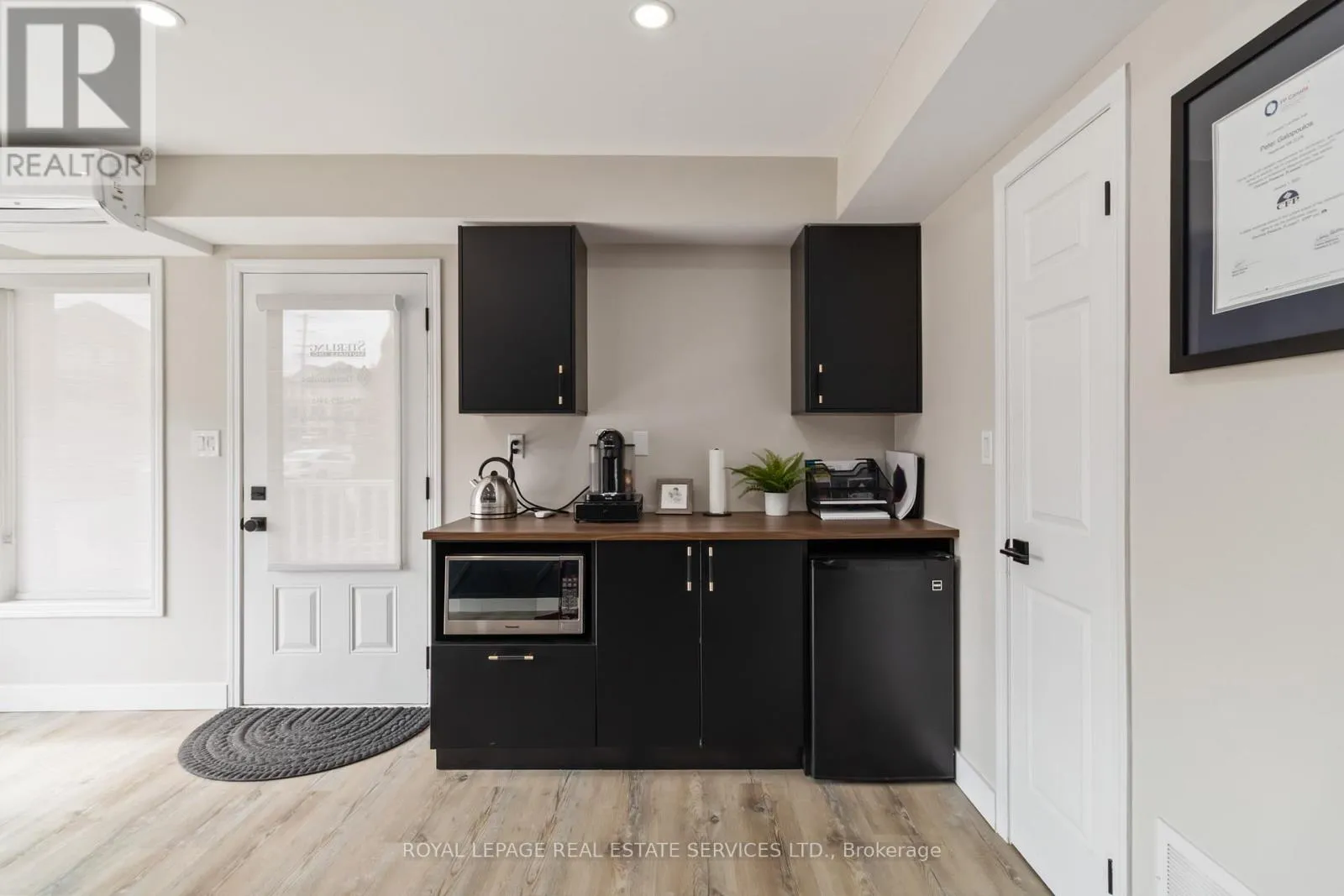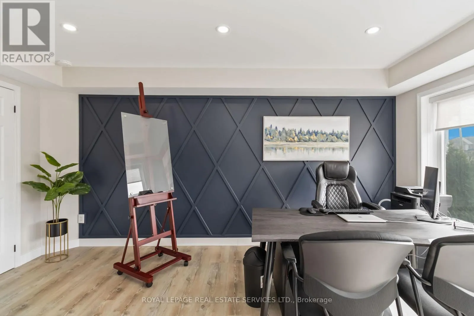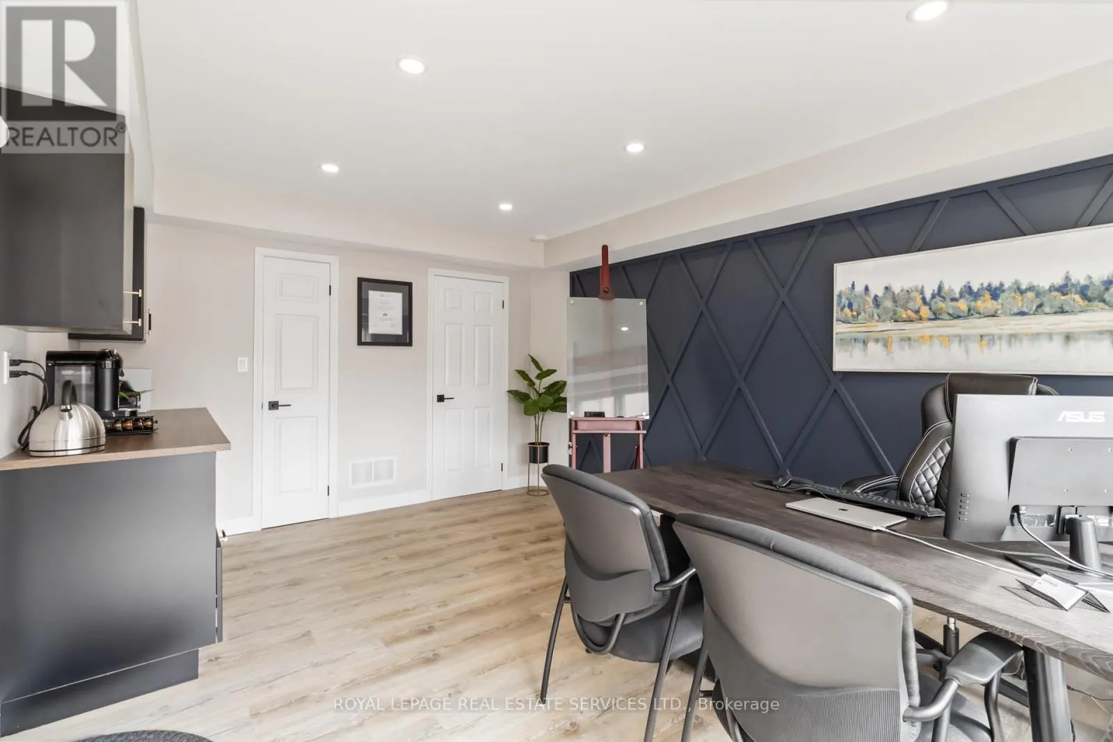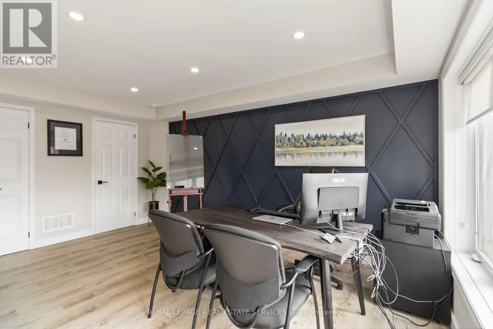Walkers Line & Dundas St Excellent office or retail space for lease in a highly visible and rapidly growing North Burlington location along the well-traveled Walkers Line corridor. This bright, modern unit features wide-plank light-tone flooring, a striking navy accent wall with geometric detailing, large front windows for abundant natural light, recessed pot lighting, and a convenient 2-piece washroom. Ideally positioned with quick access to Dundas Street and Highway 407, offering seamless connectivity to Burlington, Oakville, and surrounding communities. Surrounded by established neighbourhoods, new residential growth, retail plazas, schools, parks, and everyday amenities, the property benefits from strong exposure and consistent traffic. Well suited for professional office, wellness, boutique retail, or service-based uses - an excellent opportunity for businesses seeking visibility, accessibility, and long-term growth in a thriving commercial corridor. (id:27476)