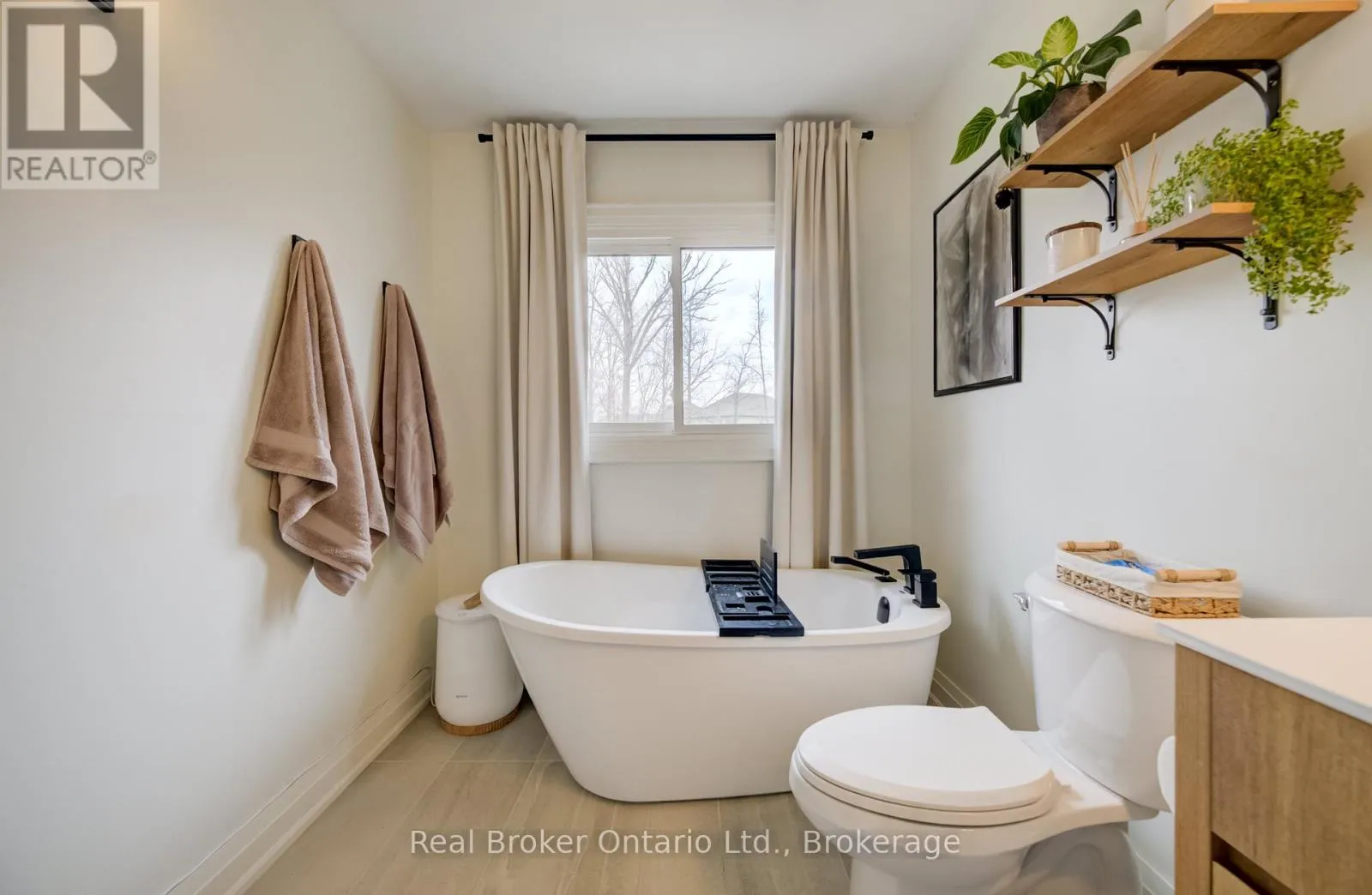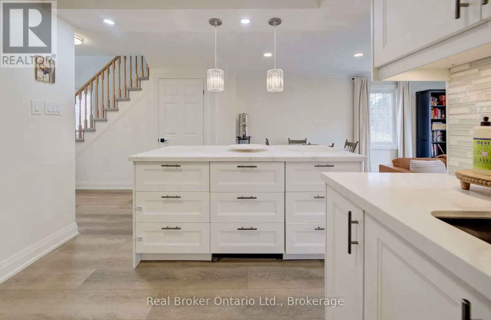 Upper Middle Road and Atkinson Drive Welcome to this stunning end-unit townhome in the heart of Millcroft, backing onto a private ravine with a scenic walking path, and offering an abundance of natural light, thoughtful design, and effortless flow. From the moment you walk in, you're greeted with a sense of ease. A convenient powder room, front closet, and direct access to the garage make everyday living seamless. As you move through the main floor, the space opens up into a bright, airy layout designed for both connection and comfort. The dining area flows naturally into the open-concept kitchen, complete with an oversized island, and into the inviting living room with walkout to a private patio deck. Being an end unit, the home is filled with sunlight and offers the added bonus of a side yard along with a backyard - a rare and valuable feature. Upstairs, you'll find 3 spacious bedrooms. Two well-sized bedrooms share a beautiful main bathroom, while the primary suite feels like its own retreat with double-door entry, a generous walk-in closet, and a spa-inspired ensuite featuring a standalone tub, shower, and elegant finishes. The fully finished basement adds even more versatility, offering a large additional living space, laundry room, and dedicated storage. Move-in ready and located in one of Burlington's most sought-after neighbourhoods, this home offers the perfect blend of function, comfort, and lifestyle. Upstairs, you'll find three spacious bedrooms. Two well-sized bedrooms share a beautifully appointed main bathroom, while the primary suite feels like its own retreat with double-door entry, a generous walk-in closet, and a spa-inspired ensuite featuring a standalone tub, shower, and elegant finishes. The fully finished basement adds even more versatility, offering a large additional living space, laundry room, and dedicated storage. Move-in ready and located in one of Burlington's most sought-after neighbourhoods, this home offers the perfect blend of function, comfort, and lifestyle. (id:27476)