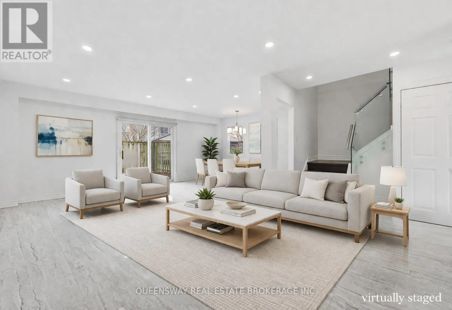 New St. and Longmoor Dr. Located in the prestigious Burlington Shoreacres lakefront community, this beautifully renovated End Unit Townhome offers an exceptional alternative to detached living with the perfect blend of space, privacy, and value. Privately set among mature trees, it feels like a semi-detached home and is ideal for families or buyers looking to enter a premium neighbourhood at an attractive price point. Fully renovated top to bottom in 2021, this bright open concept home is designed for modern living. Enter the home through the custom double doors into a spacious entryway. The modern kitchen features quartz countertops, stainless steel appliances, and a large island with seating for four, perfect for entertaining and everyday use. Elegant finishes continue throughout with quartz counters in all bathrooms, pot lights on the main floor and basement, and stylish blackout zebra blinds. The home offers three spacious bedrooms, three bathrooms, generous storage, and a carpet free layout for easy maintenance. The fully finished basement provides versatile additional living space, ideal for a family room, home office, or play area. Enjoy a private enclosed backyard perfect for relaxing or hosting in the warmer months, along with the rare convenience of three parking spaces! Located just steps to Nelson Park, Iroquois Park, Paletta Lakefront Park, Centennial Bike Trail, top rated schools in the Nelson school district, quick access to Highway 401, and a wide range of nearby amenities. A turnkey opportunity in one of Burlington's most sought after family friendly communities. Maintenance fees include Water, Roof, Windows/Doors, Lawn Care, Snow Removal. (id:27476)