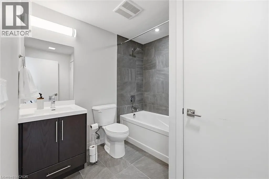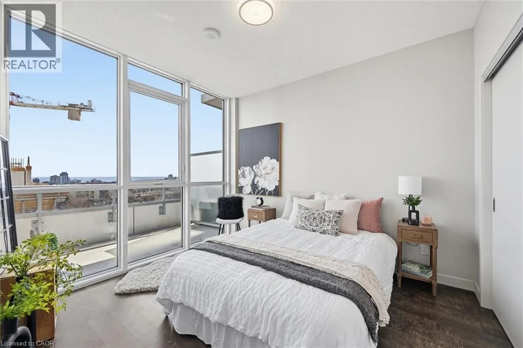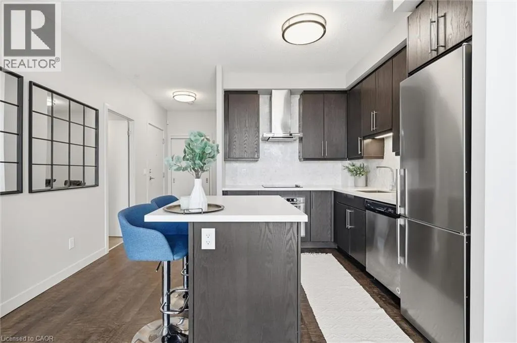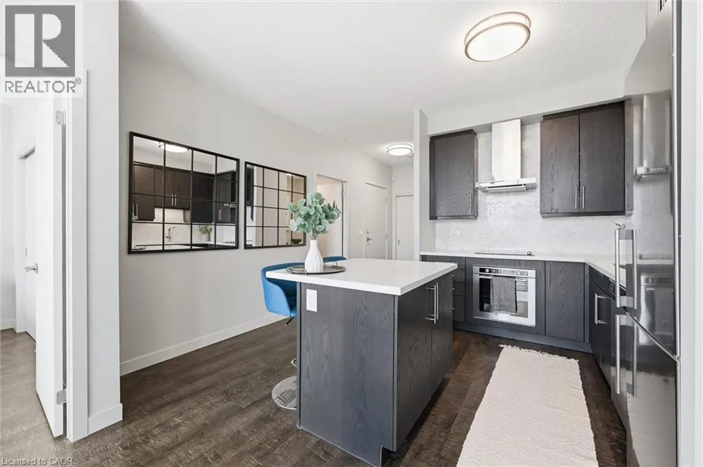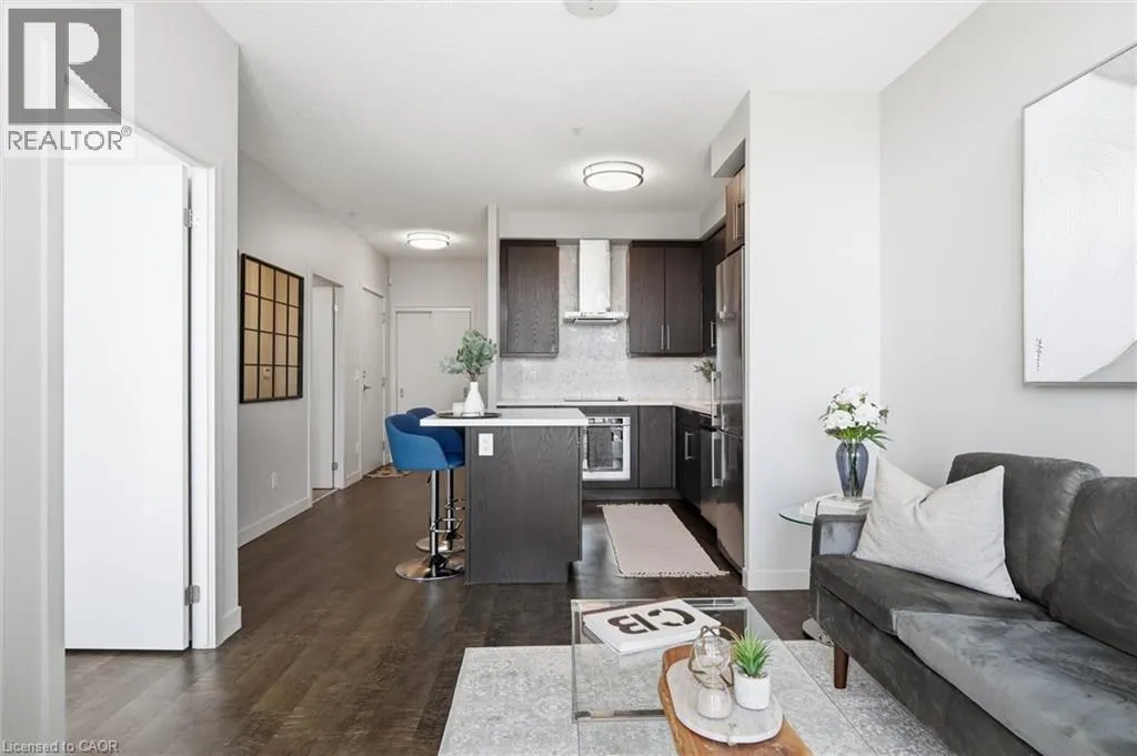 Located on the North side of Fairview Street, right next to the Burlington GO Station Sought-after Paradigm Condominium with south-facing lake views! This impressive 1-bedroom plus den suite offers 627 square feet of thoughtfully designed space with a smart, functional layout. The modern kitchen features extended cabinetry, a seated island, and stainless steel appliances, opening effortlessly into the bright living area â ideal for both relaxing and entertaining. The versatile den/bonus room provides the perfect flex space for a home office, gaming area, or cozy reading nook. Step out onto the generously sized balcony with southern exposure, filling the unit with natural light throughout the day. Included with the suite is one underground parking space and a storage locker. Indulge in the abundance of lavish building amenities, including a sky lounge, indoor pool, fitness centre, basketball court, party room, childrenâs playroom, outdoor activity area, terrace with lounge seating and multiple BBQ stations, theatre room, ground-level bike storage, and guest suites. Also, 24-hour concierge, secure key-fob access, video surveillance and controlled entry systems. Ideally located beside the GO Train Station, with nearby shopping, and quick access to the waterfront and all the attractions of downtown Burlington. An exceptional blend of comfort, convenience, and lifestyle â this is condo living at its finest. (id:27476)