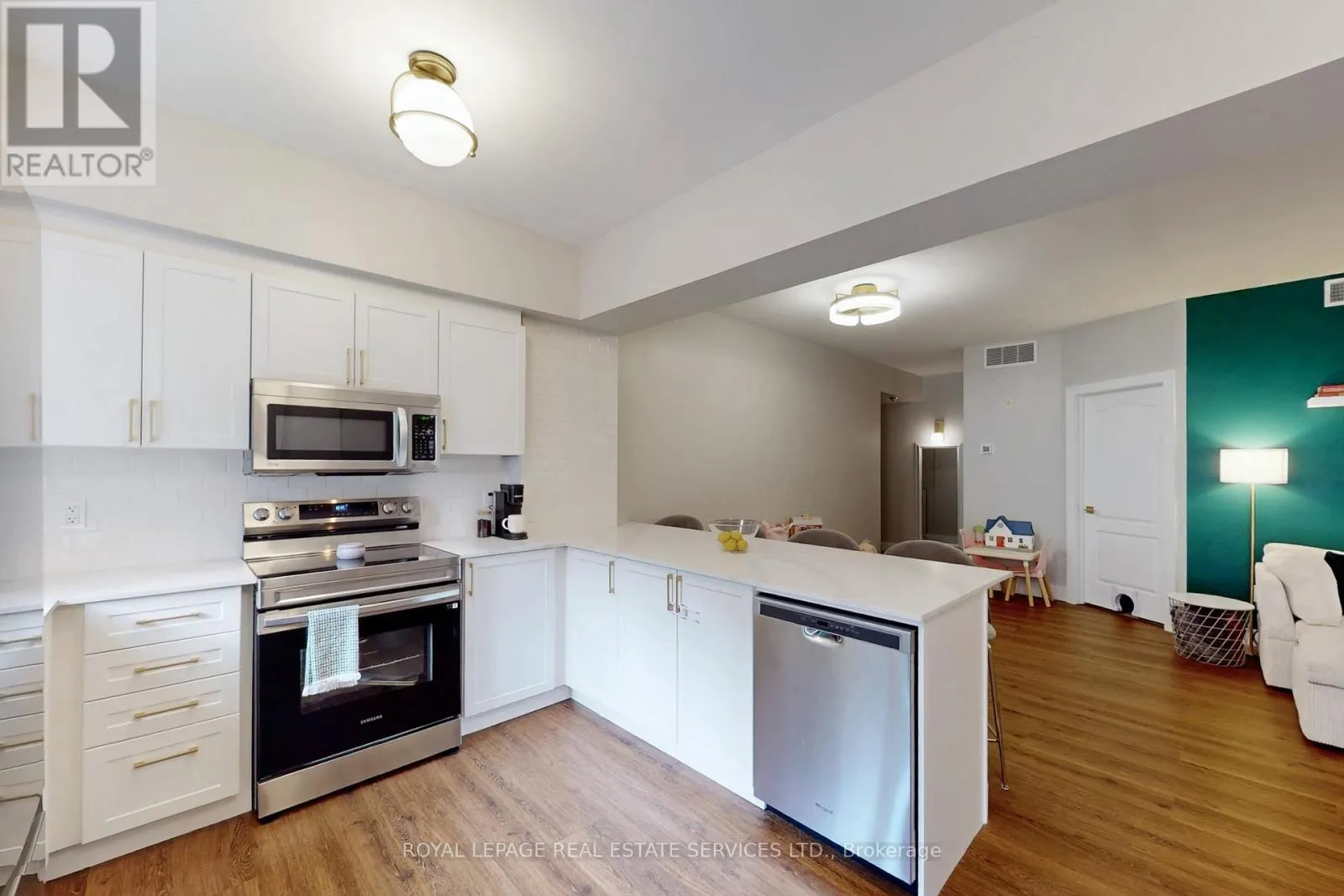 Walkers Line / Upper Middle Road Welcome to a home where move-in ready is an understatement. This stunning 2 bedroom and 2 washroom residence offers literal turn-key living, having been meticulously updated to meet the highest standards of modern comfort and style. From the moment you step through the front door, you will notice the seamless flow and premium finishes that set this property apart, including the rare convenience of 2 dedicated parking spots a storage locker for your seasonal items. The heart of the home is a true showstopper, designed for both the casual cook and the seasoned chef. The kitchen features brand new quartz countertops. These counters are designed as a breakfast bar, offering a perfect spot where you can eat your morning meal or entertain guests. This is paired with a freshly installed backsplash that adds a sophisticated, contemporary flair. You will also find practically brand-new stainless steel fridge and stove just 2 months old, ensuring peace of mind and peak performance for years to come. The attention to detail is evident in the brand new baseboards and casings with high-end finishes that have been professionally installed throughout the entire home. In terms of flooring, you can say goodbye to allergens and high-maintenance cleaning. This home features premium laminate flooring in every single room. With no carpet anywhere, the space feels expansive, cohesive, and incredibly easy to maintain. Location is everything, and this property is positioned in a highly sought-after neighborhood where you are never more than a few minutes away from the essentials. You will enjoy unparalleled convenience with immediate access to the QEW for effortless commuting. The home is just a stone's throw from major shopping centers and grocery stores, and is in close proximity to top-rated schools, parks, and recreational facilities. Whether you need a cafe, a pharmacy, or anything else to streamline your lifestyle, it is all right here. (id:27476)