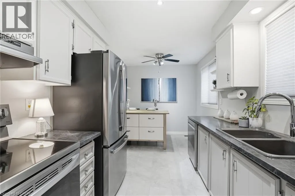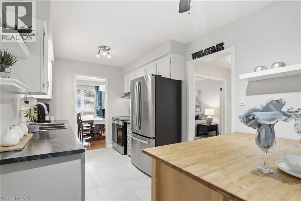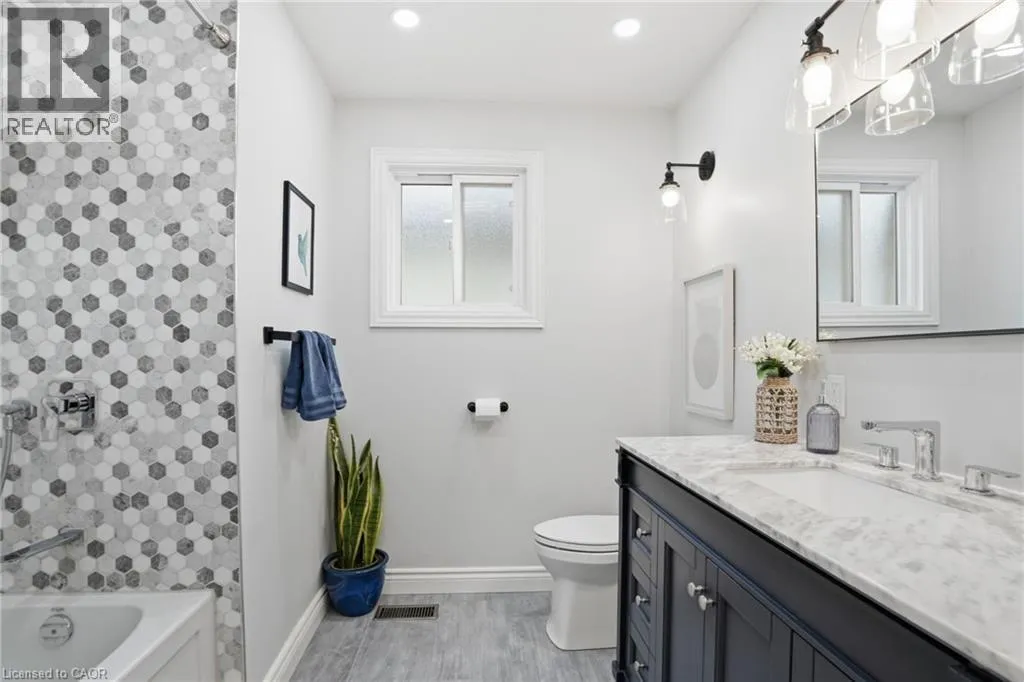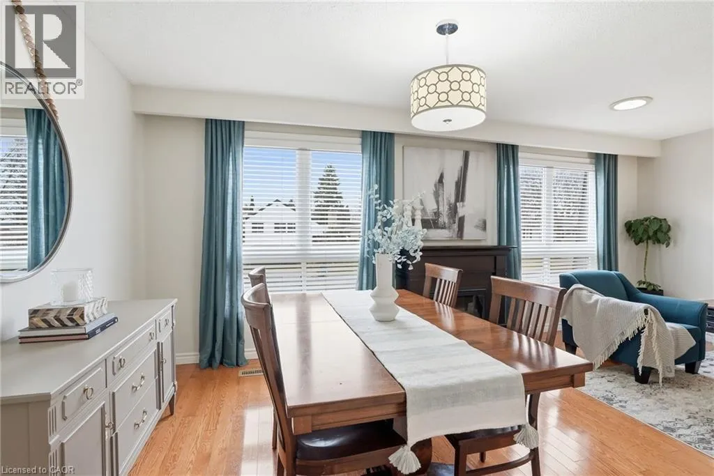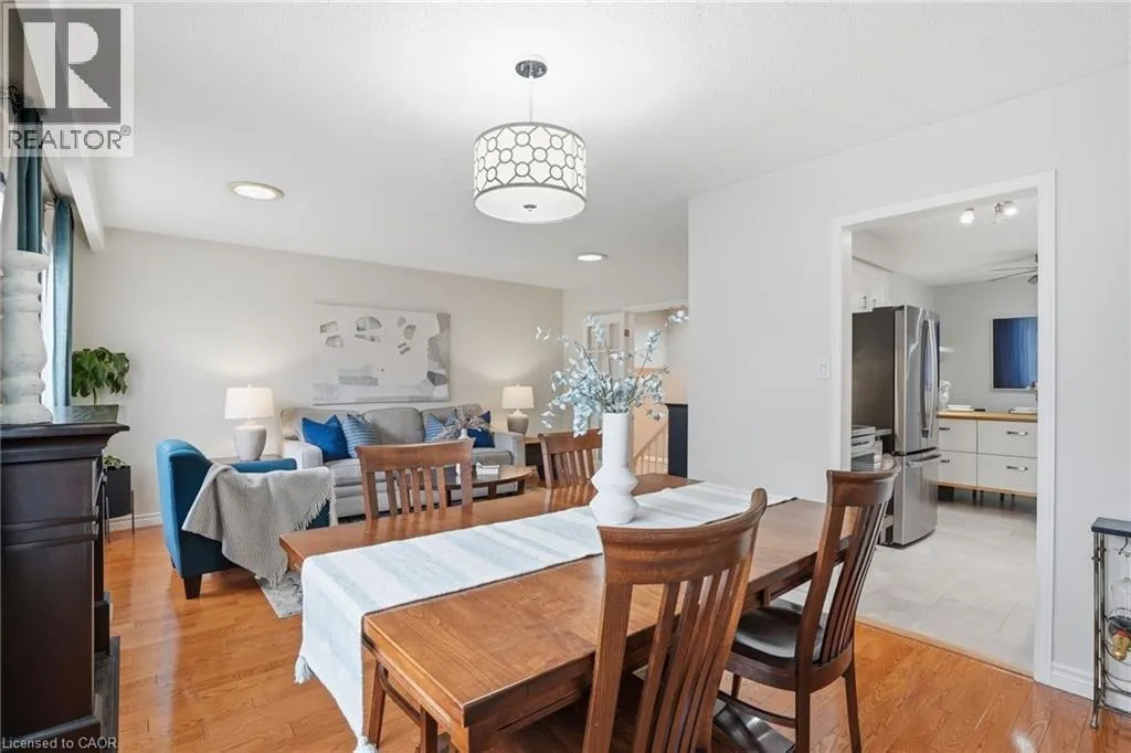 Nearly 2,000 sq ft of finished living space in the heart of Burlingtonâs Dynes neighbourhoodâthis 4-bedroom, 2-bath raised bungalow offers the perfect blend of functionality, updates, and walkable convenience just steps groceries, shops, restaurants, and a 5 minute walk to the top-tier Makwendam Elementary Public School. The main level offers a bright, functional layout with well-proportioned principal rooms and thoughtful updates, including a renovated main floor bathroom (2020) and new skylight (2020) that enhances natural light throughout the home. The kitchen and front entry have been refreshed with new tile flooring (2024) and all new appliances (2024), creating a clean, modern space ready for everyday living and entertaining. The finished lower level adds valuable additional living spaceâwith a 4th bedroom, family room and full bathroomâproviding flexibility for a variety of lifestyles. Exterior improvements enhance curb appeal with a new front garage door (2024) and new driveway (2023), while major mechanical updates include a high-efficiency furnace (2020), roof (2015), windows (2010), and eavestroughs (2023). Enjoy a private backyard retreat complete with a hot tub (2016)âperfect for relaxing or entertaining. A beautifully-maintained, move-in ready home offering exceptional value, space, and location. (id:27476)