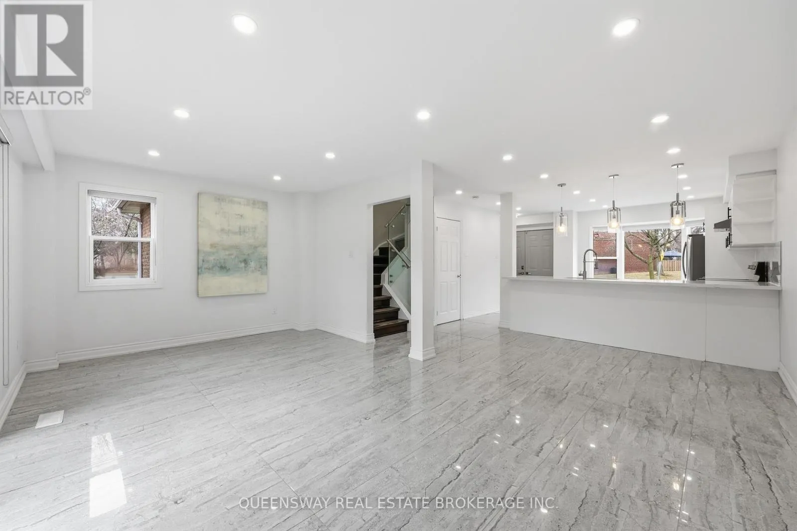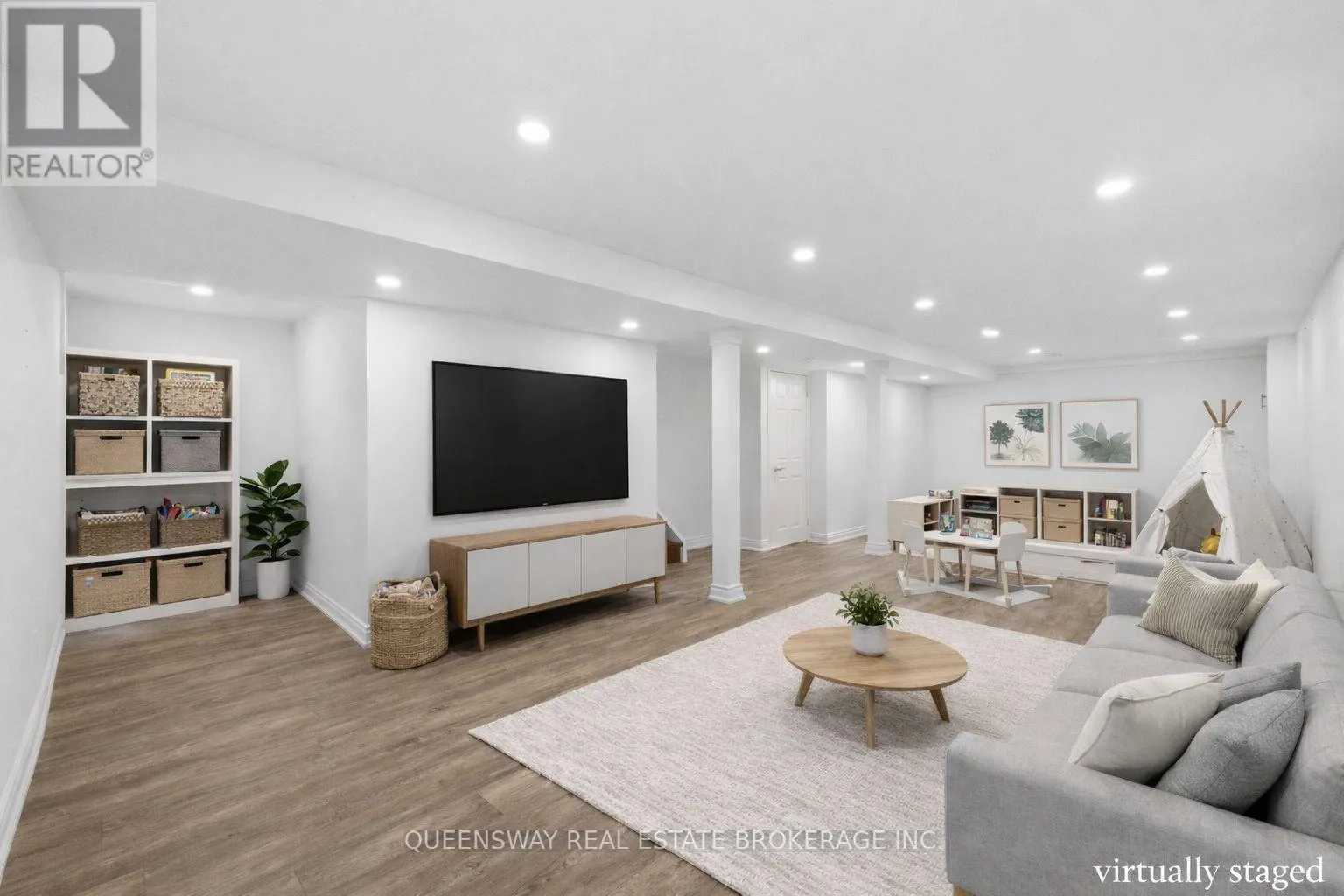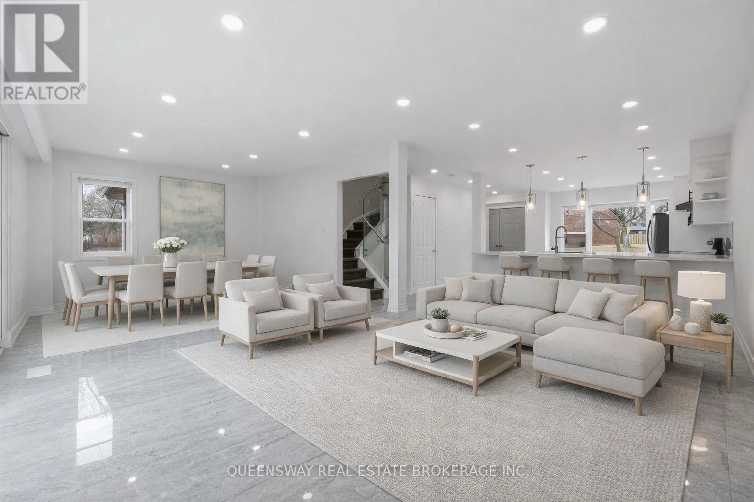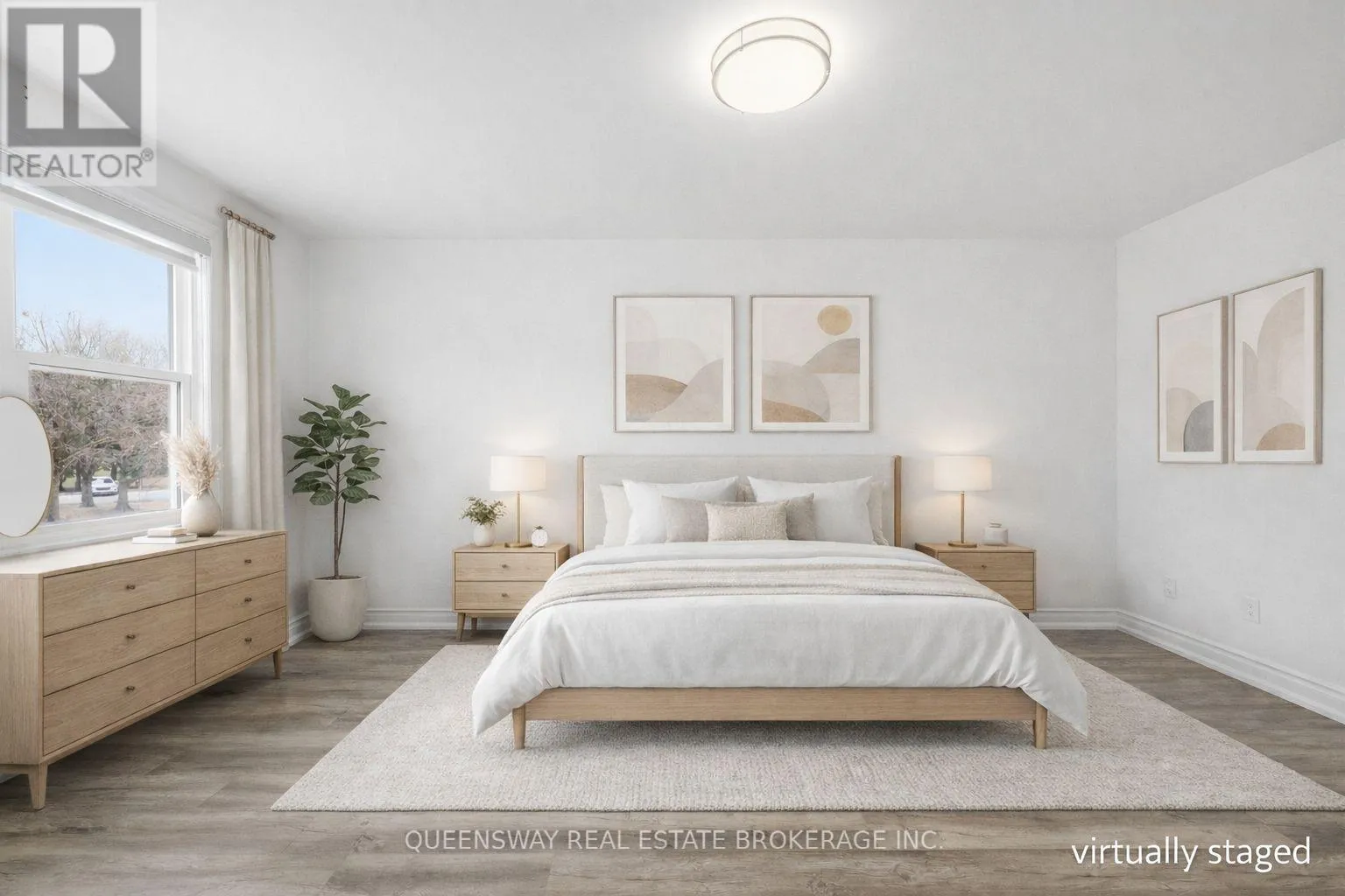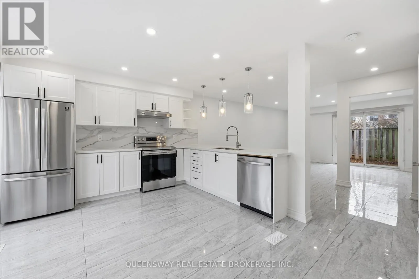 New St. and Longmoor Dr. Located in Burlington's desirable Shoreacres lakefront community, this beautifully renovated end-unit townhome offers a great mix of space, privacy, and convenience. Surrounded by mature trees, it feels more like a semi-detached home and is ideal for families or tenants looking to live in a quiet, established neighbourhood .Fully renovated in 2021, the home features a bright, open-concept layout designed for comfortable everyday living. Enter through custom double doors into a spacious entryway. The kitchen includes quartz countertops, stainless steel appliances, and a large island with seating for four. The home offers three bedrooms, three bathrooms, plenty of storage, and a carpet-free layout for easy maintenance. Additional features include pot lights on the main floor and basement, quartz counters in all bathrooms, and blackout zebra blinds throughout. The fully finished basement provides extra living space-perfect for a family room, home office, or play area. Enjoy a private, enclosed backyard, along with the added convenience of three parking spaces .Located just steps to Nelson Park, Iroquois Park, Paletta Lakefront Park, and the Centennial Bike Trail, as well as top-rated schools in the Nelson district. Easy access to Highway 401 and nearby amenities. (id:27476)