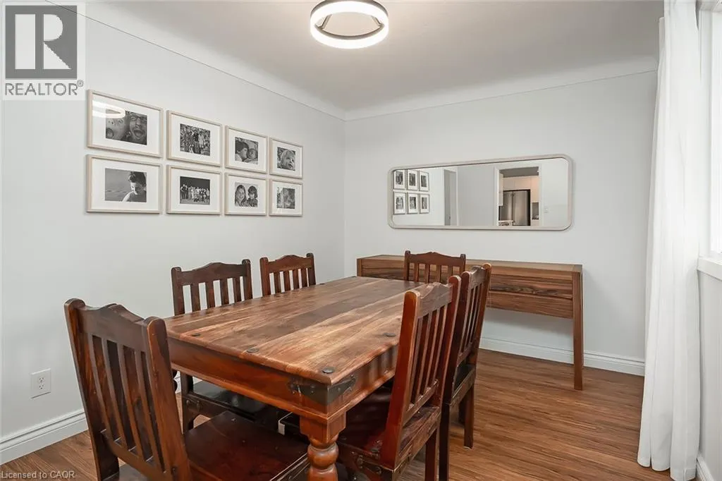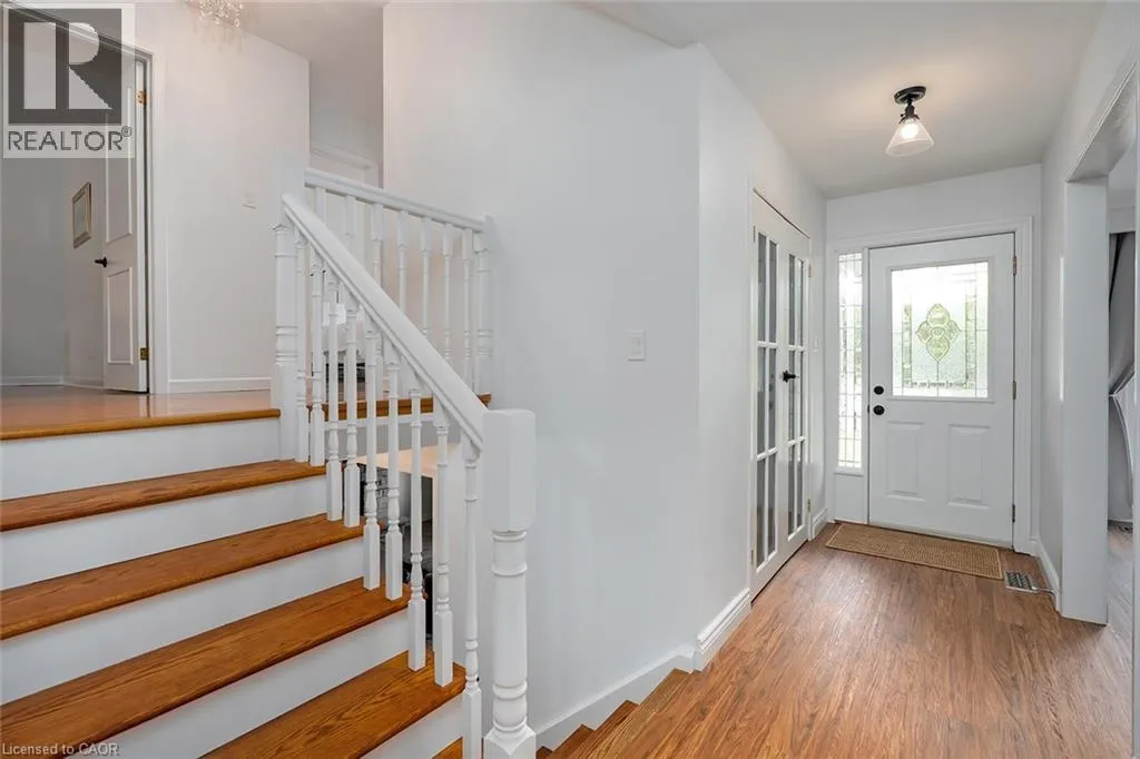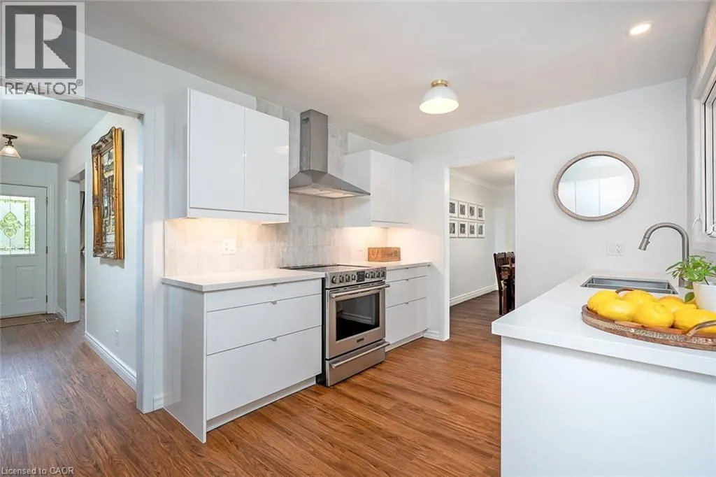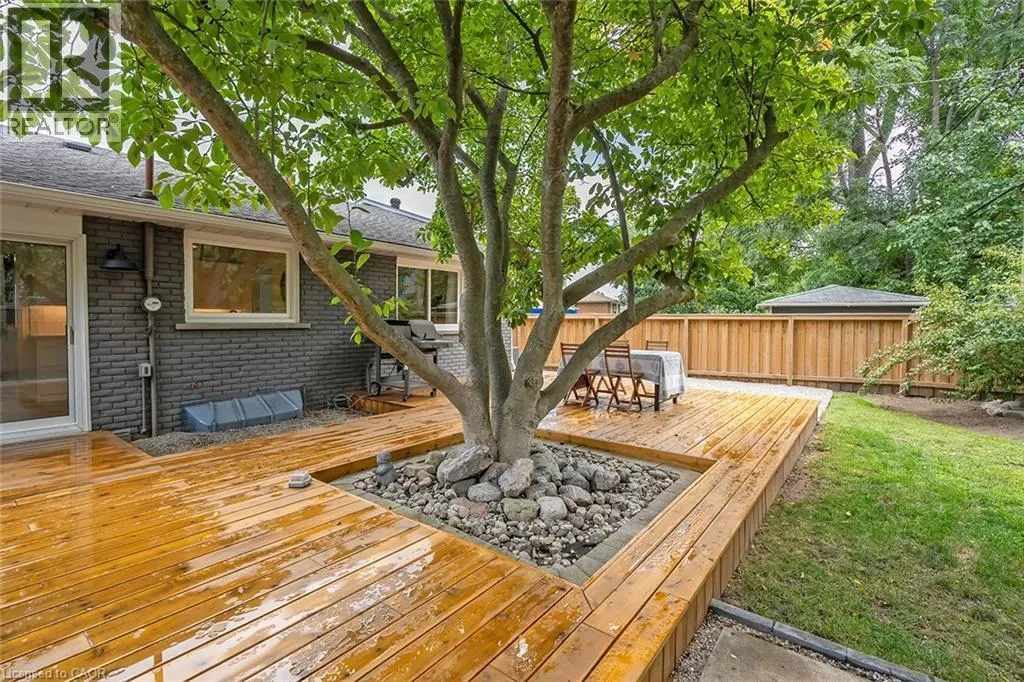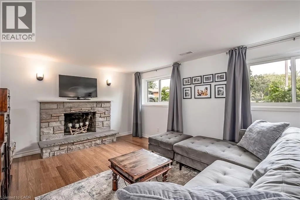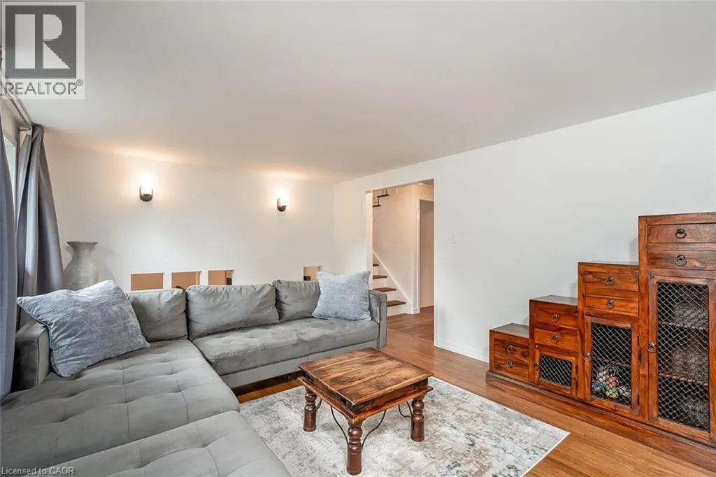 New St - South on Pine Cove, E on Spruce Location location location! This stunning 4 level side split sits on a private pie-shaped lot on a quiet crescent in Roseland. This home has been beautifully updated/maintained throughout and features 3+1 bedrooms, 1.5 bathrooms and finished lower levels with in-law potential! The main floor boasts luxury vinyl plank flooring and plenty of natural light throughout. There is an over-sized living room, separate dining room and a beautifully updated kitchen. The kitchen features stainless steel appliances, airy white cabinetry, quartz counters, a tiled backsplash and a large patio door leading to the backyard oasis. The bedroom level has hardwood flooring throughout, 3 bedrooms and an updated 5-piece bath. The lower level has hardwood flooring, a 4th bedroom, 2-piece bathroom, large family room and a walk up to the backyard! The basement level has a sprawling rec room, laundry room and ample storage! The beautifully landscaped exterior includes a single car garage and fully fenced yard with a large wood deck, a gas BBQ line and plenty of privacy. This home sits in a quiet, family-friendly neighbourhood and is conveniently located close to top rated schools, parks, public transportation and all amenities. (id:27476)