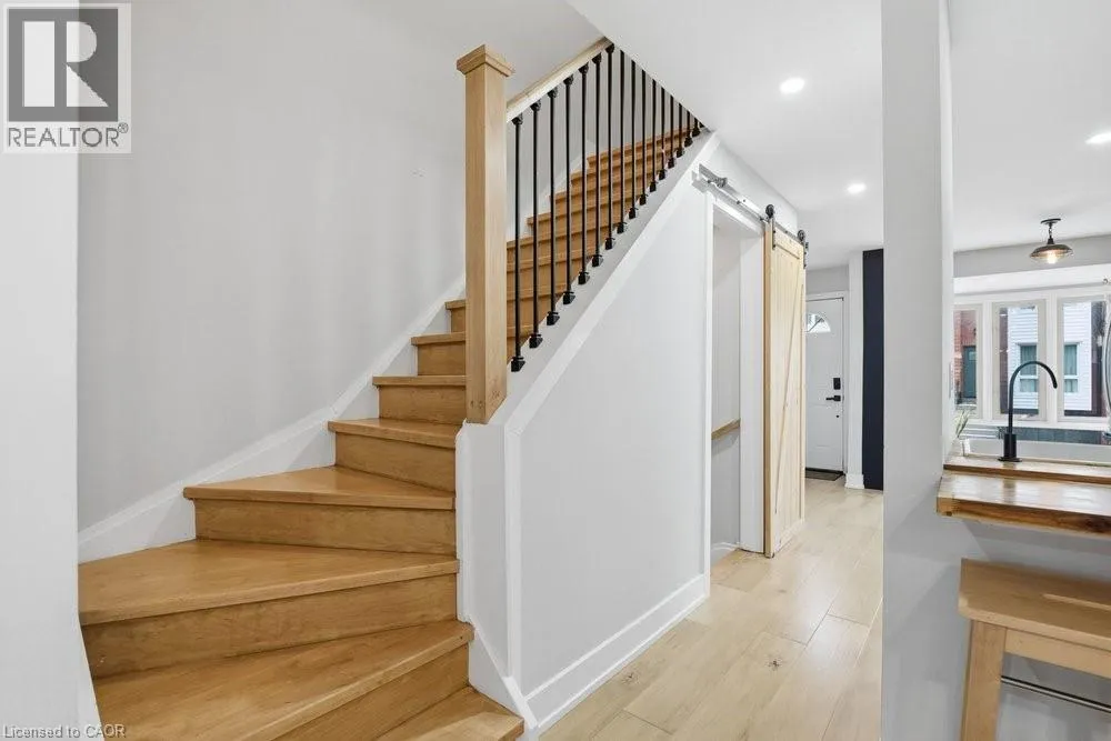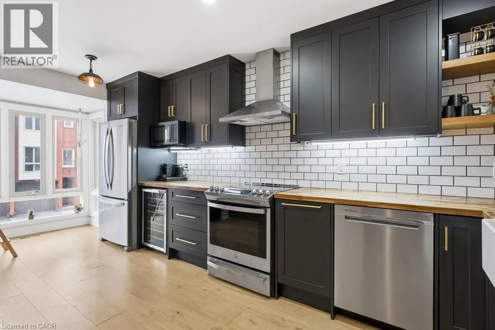 Welcome to the sought-after Brownstones at 895 Maple Avenue. This beautifully updated 3-storey condo townhouse offers a bright, functional layout and was extensively renovated in 2020 offering 1582 sq ft of total living space. The modern kitchen features updated cabinetry, countertops, and appliances, while all bathrooms have been stylishly updated. The lower level has been thoughtfully improved with the former powder room converted to a full bathroom, creating a versatile space ideal for a family room, guest suite, or home office. Upstairs, youâll find two spacious, light-filled bedrooms along with an updated main bathroom. Additional highlights include interior access to the garage, a private driveway, and a quiet patio backing onto common green spaceâperfect for relaxing or entertaining. Nestled in an unbeatable Burlington location just steps to Mapleview Mall and close to grocery stores, LCBO, downtown, the waterfront, Spencer Smith Park, restaurants, transit, and the Burlington GO Station. Enjoy the perfect blend of urban convenience and a quiet, well-maintained townhouse community. A fantastic opportunity to own a turnkey home in one of Burlingtonâs most walkable and convenient neighbourhoods. (id:27476)