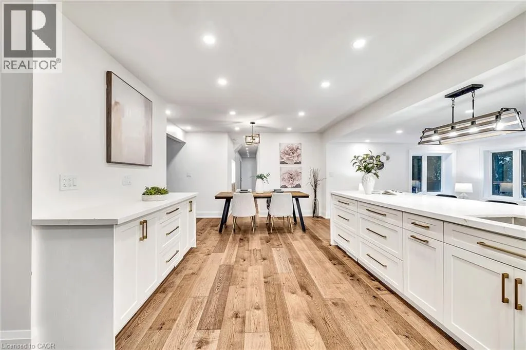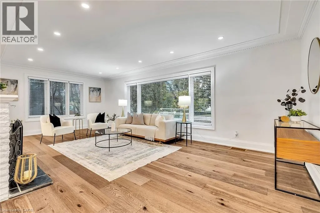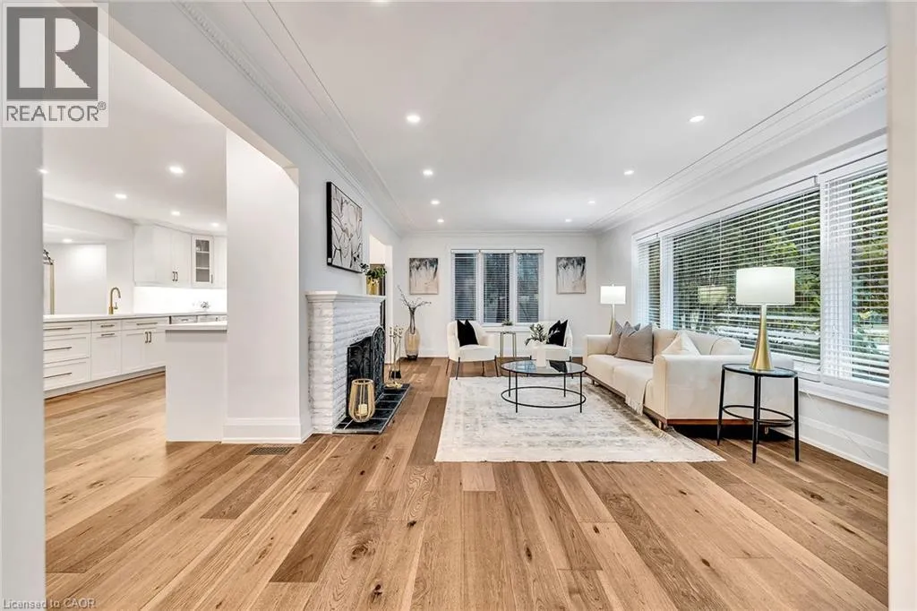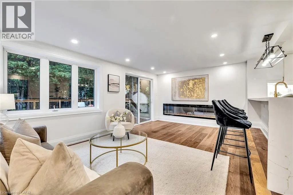 Kingsway and Townsend Nestled on one of South Aldershotâs most serene, tree-lined streetsâdirectly across from the Burlington Golf & Country Clubâthis fully reimagined luxury residence offers over 4,500 sq.ft. of refined living on an expansive 11,500+ sq.ft. lot. Every detail has been thoughtfully curated, showcasing exquisite craftsmanship, rich hardwood floors, and an abundance of natural light that fills the home with warmth and sophistication. The gourmet chefâs dream kitchen serves as the heart of the home, featuring professional-grade appliances, quartz countertops, custom cabinetry, and a grand island overlooking the elegant family room with its 8-ft electric fireplace, large windows, and patio doors opening to the sun-soaked deck. The primary suite is a haven of serenity, complete with a custom walk-in closet and spa-inspired ensuite boasting heated floors, a freestanding soaking tub, glass shower, and dual vanities. Upstairs offers a private living area with a kitchenette, lounge, and ensuite bedroomâperfect for extended family or guests. The finished basement provides yet another private living space with two additional bedrooms, ideal for multi-generational living. Step outside to your private backyard oasis, featuring a new pool liner, sprawling 1,100 sq.ft. deck, lush professional landscaping, and mature trees offering total privacy. Enhanced with CCTV surveillance, new plumbing and electrical, heated floors in all bathrooms, and parking for 11 vehicles. Ideally located minutes from the lake, LaSalle Park, top-rated schools, shops, and major highway (id:27476)