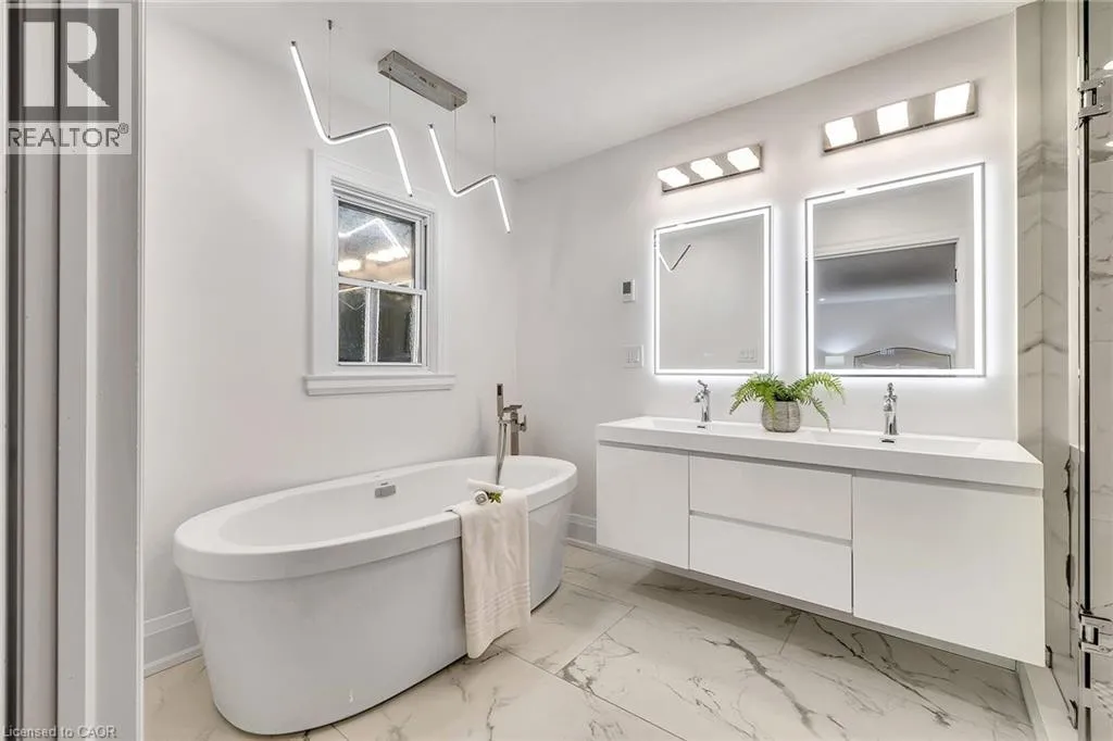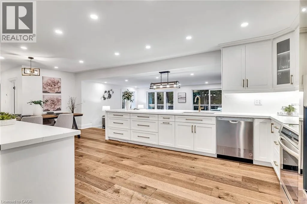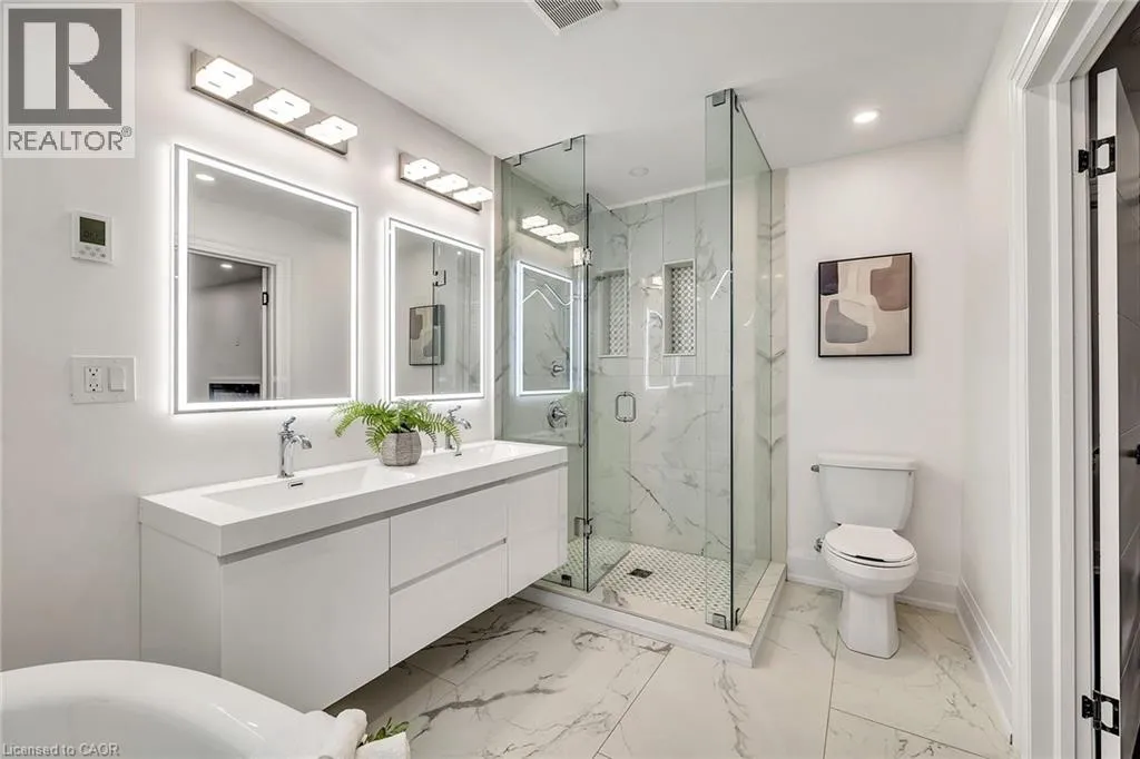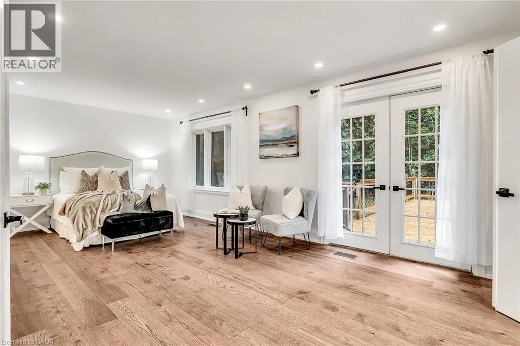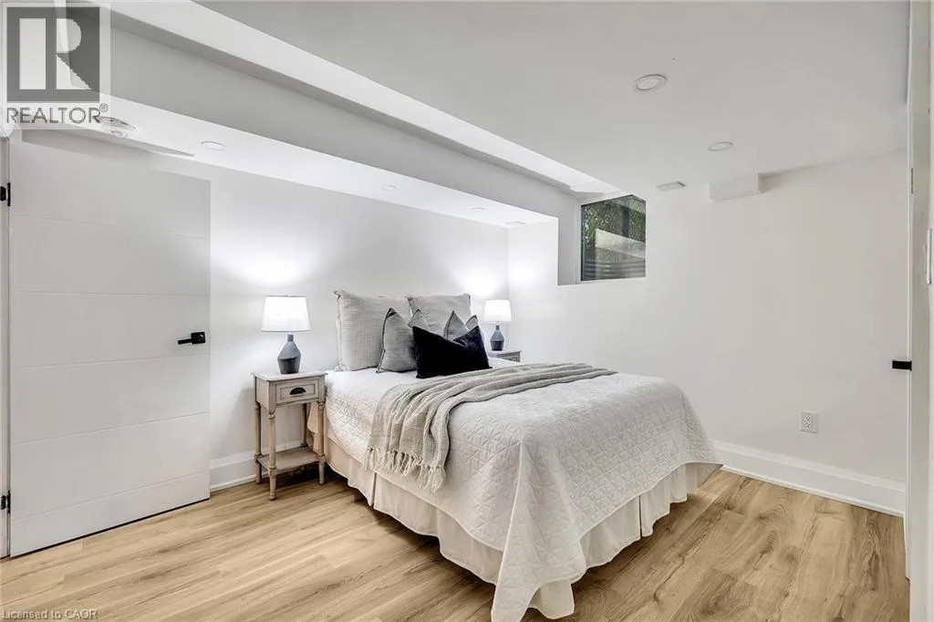 Kingsway and Townsend Nestled on one of South Aldershotâs most serene, tree-lined streetsâdirectly across from the Burlington Golf & Country Clubâthis fully reimagined luxury residence offers over 4,500 sq.ft. of refined living on an expansive 11,500+ sq.ft. lot. Every detail has been thoughtfully curated, showcasing exquisite craftsmanship, rich hardwood floors, and an abundance of natural light that fills the home with warmth and sophistication. The gourmet chefâs dream kitchen serves as the heart of the home, featuring professional-grade appliances, quartz countertops, custom cabinetry, and a grand island overlooking the elegant family room with its 8-ft electric fireplace, large windows, and patio doors opening to the sun-soaked deck. The primary suite is a haven of serenity, complete with a custom walk-in closet and spa-inspired ensuite boasting heated floors, a freestanding soaking tub, glass shower, and dual vanities. Upstairs offers a private living area with a kitchenette, lounge, and ensuite bedroomâperfect for extended family or guests. The finished basement provides yet another private living space with two additional bedrooms, ideal for multi-generational living. Step outside to your private backyard oasis, featuring a new pool liner, sprawling 1,100 sq.ft. deck, lush professional landscaping, and mature trees offering total privacy. Enhanced with CCTV surveillance, new plumbing and electrical, heated floors in all bathrooms, and parking for 11 vehicles. Ideally located minutes from the lake, LaSalle Park, top-rated schools, shops, and major highway (id:27476)