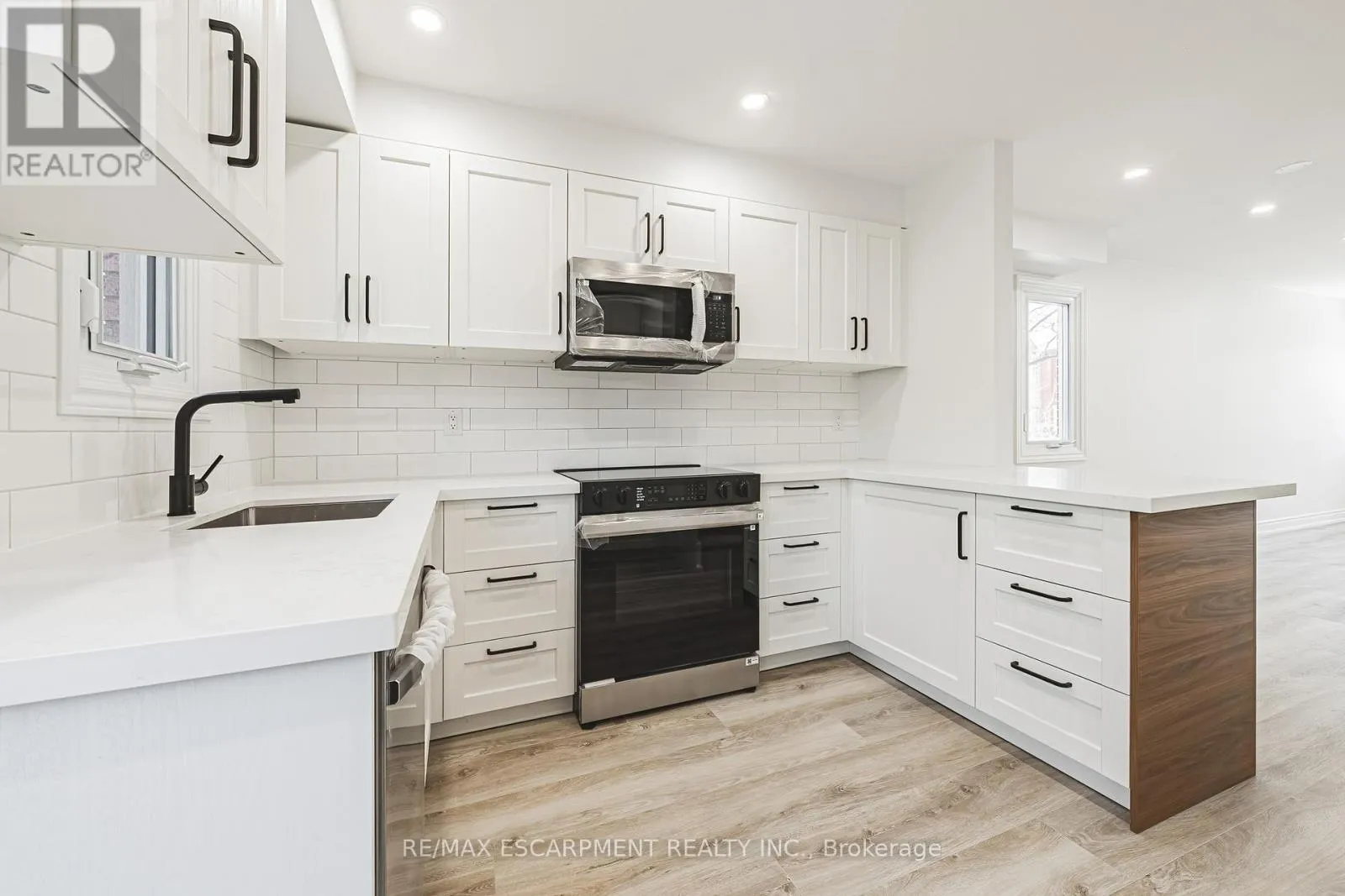 Maple Ave & Fairview St This fantastic NEWLY renovated END UNIT offers 2 spacious bedrooms, 1.5 baths and private backyard! Situated in the sought-after Brownstone complex in central Burlington, this unit boasts almost 1200 sqaure feet plus a fully finished lower level! The home has a great open concept floorplan with plenty of natural light and beautiful finishes / fixtures throughout. The main level features a large living/dining room combination with a brand new eat-in kitchen. The kitchen has airy white cabinetry, quartz counters and stainless-steel appliances. The upper level includes 2generous sized bedrooms and a stunning newly renovated 4-piece bathroom with plenty of storage. The finished lower level features a generously sized rec room, separate laundry area, 2-piece bathroom and inside entry to the garage! This home is move in ready and is steps from Mapleview Mall, Spencer Smith Park, schools, restaurants and more with easy access to highways. (id:27476)