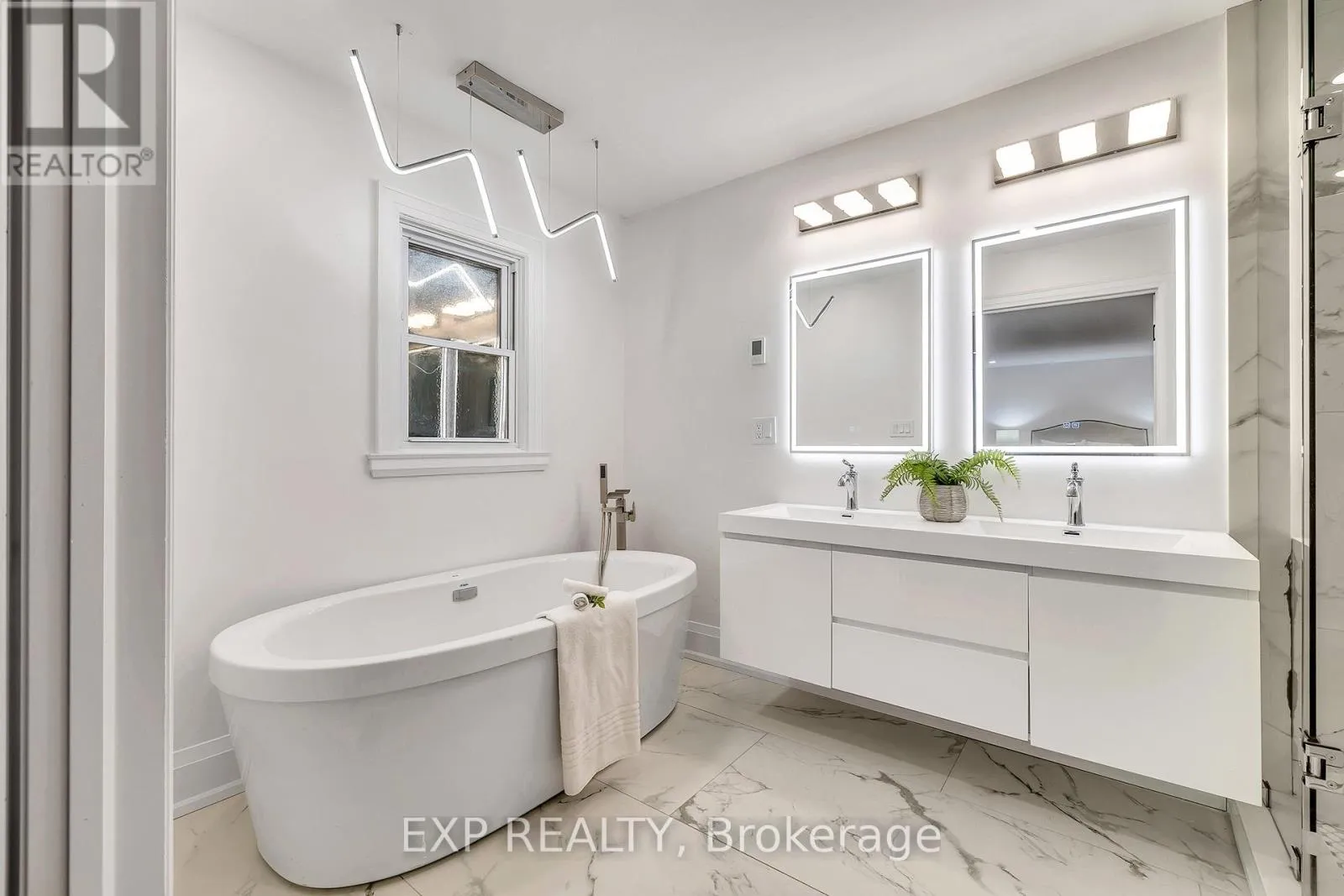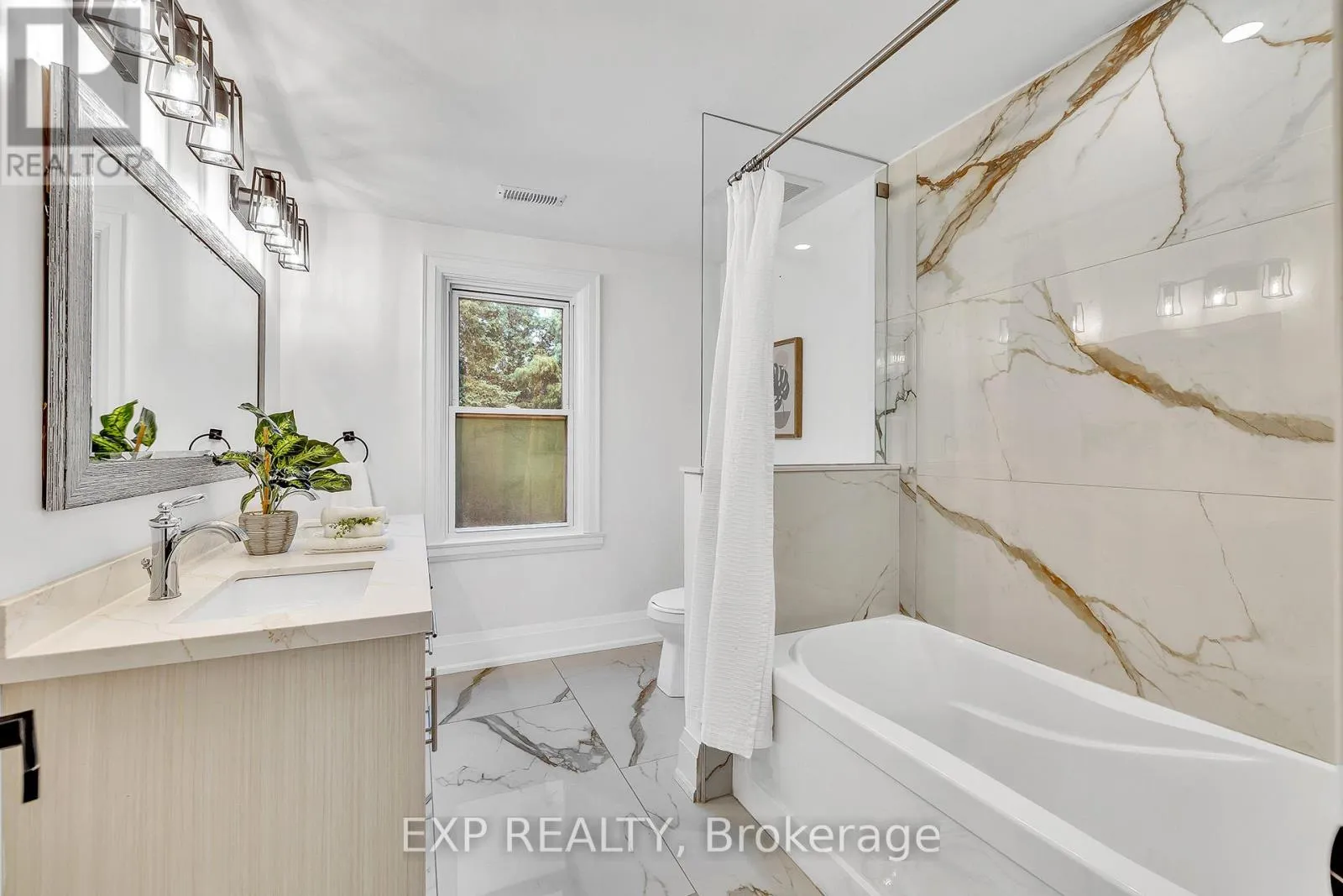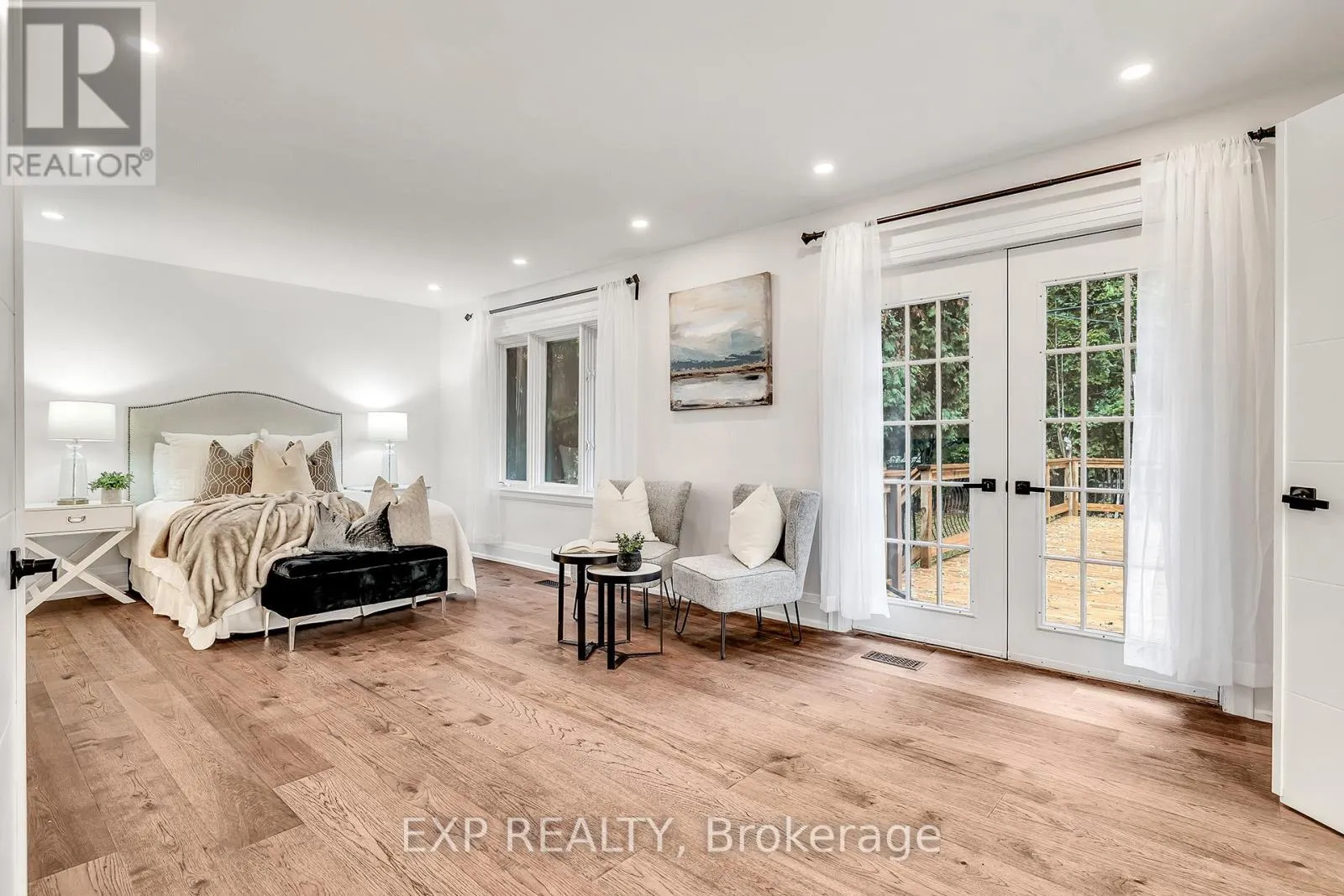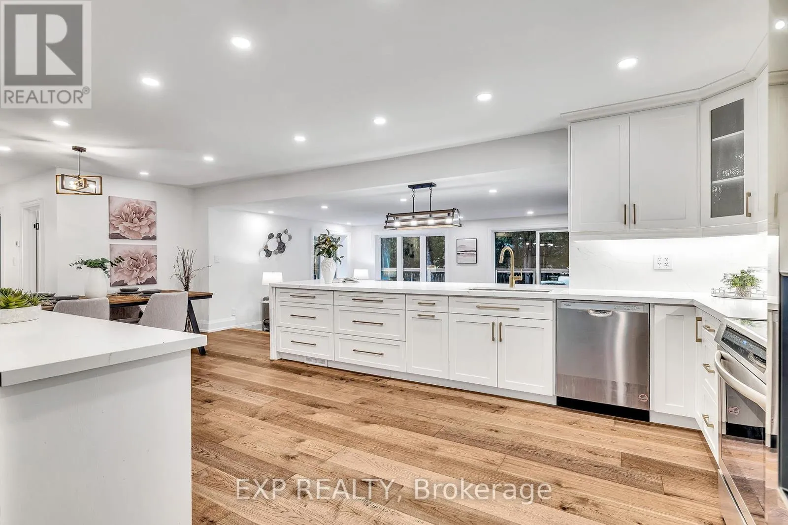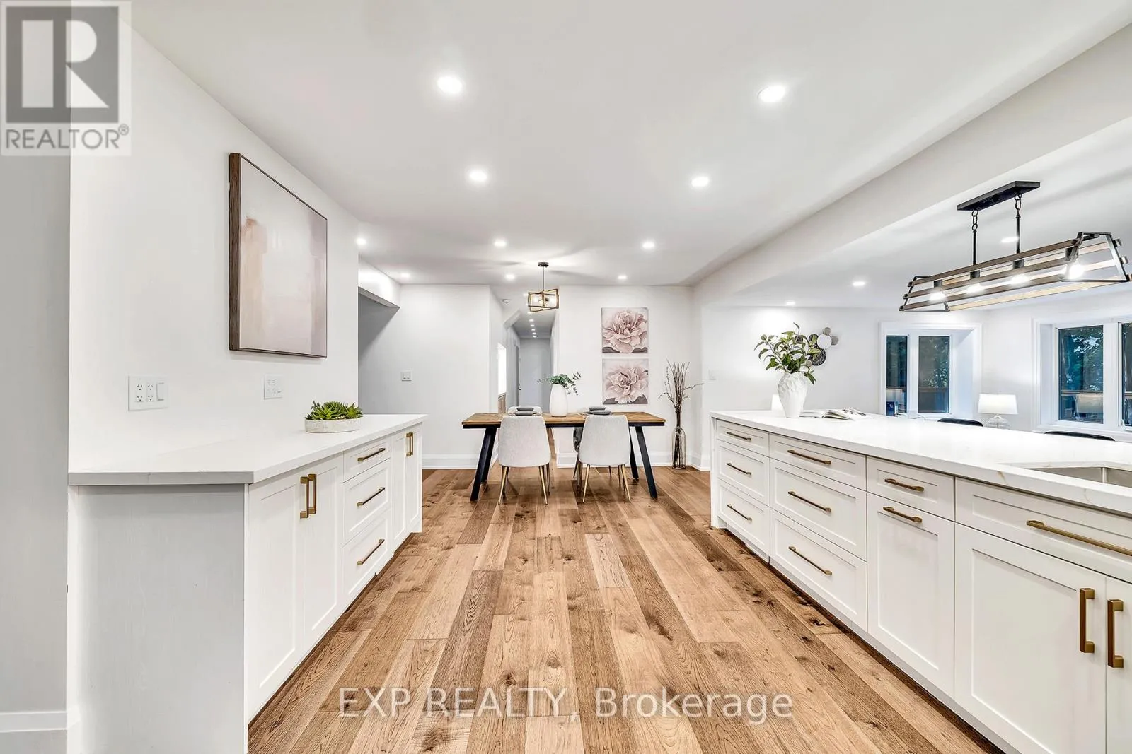 Kingsway and Townsend Nestled on one of South Aldershot's most serene, tree-lined streets-directly across from the Burlington Golf & Country Club-this fully reimagined luxury residence offers over 4,500 sq.ft. of refined living on an expansive 11,500+ sq.ft. lot. Every detail has been thought fully curated, showcasing exquisite craftsmanship, rich hardwood floors, and an abundance of natural light that fills the home with warmth and sophistication. The gourmet chef's dream kitchen serves as the heart of the home, featuring professional-grade appliances, quartz countertops, custom cabinetry, and a grand island overlooking the elegant family room with its 8-ft electric fireplace, large windows, and patio doors opening to the sun-soaked deck. The primary suite is a haven of serenity, complete with a custom walk-in closet and spa-inspired ensuite boasting heated floors, a freestanding soaking tub, glass shower, and dual vanities. Upstairs offers a private living area with a kitchenette, lounge, and ensuite bedroom-perfect for extended family or guests. The finished basement provides yet another private living space with two additional bedrooms, ideal for multi-generational living. Step outside to your private backyard oasis, featuring a new pool liner, sprawling 1,100 sq.ft. deck, lush professional landscaping, and mature trees offering total privacy. Enhanced with CCTV surveillance, new plumbing and electrical, heated floors in all bathrooms, and parking for 11 vehicles. Ideally located minutes from the lake, LaSalle Park, top-rated schools, shops, and major highway (id:27476)