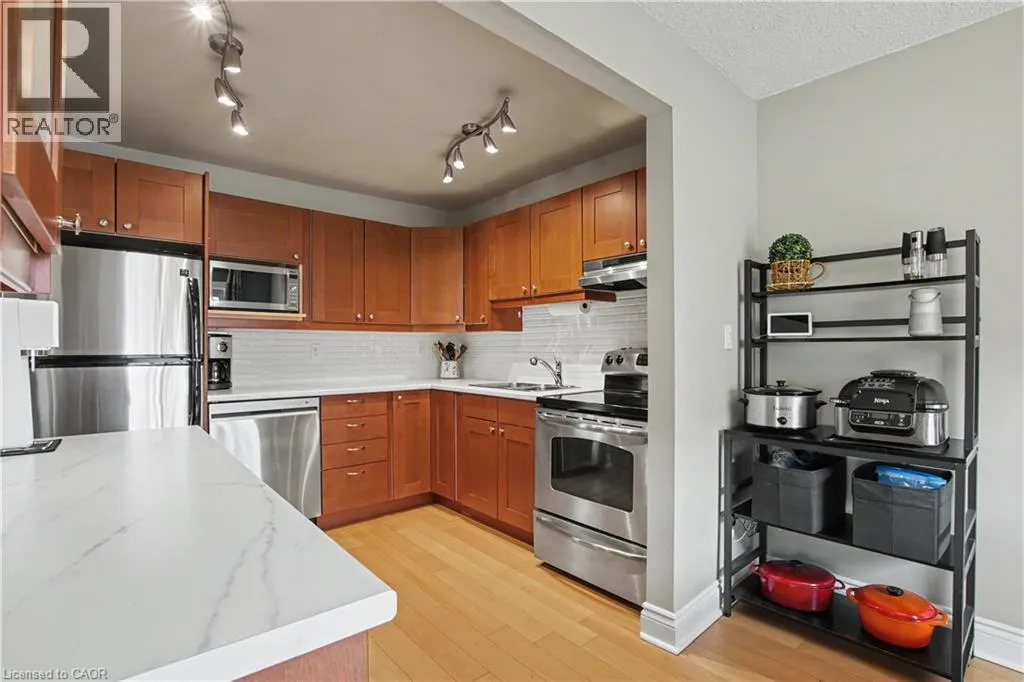 Introducing this charming 3 bed, 1.5 bath townhome in south Aldershot. Features include a bright kitchen with stainless steel appliances, a new backsplash, and updated countertops. A convenient passthrough window connects the kitchen to the cozy living room, creating an open and inviting flow, while the dining area offers a walkout to a private patio; perfect for relaxing or hosting friends. Upstairs youâll find three generously sized, carpet-free bedrooms along with a well-appointed four-piece main bath. The finished basement adds even more living space with a large recreation room making it ideal for movie nights, a home office, or a play areaâwhile the laundry room offers ample storage to keep everything organized. As a condo townhouse, this home delivers the ease of maintenance-free living, giving you more time to enjoy everything the surrounding area has to offer. Conveniently located close to downtown, the hospital, public transit, arts centre, parks and playgrounds, Mapleview Mall, and a wide range of shopping and dining options. Plus, youâre just minutes from the beach and have quick access to major highways for an easy commute. Attractively priced and packed with value, this is an incredible opportunity you wonât want to miss. Book your private showing today! (id:27476)