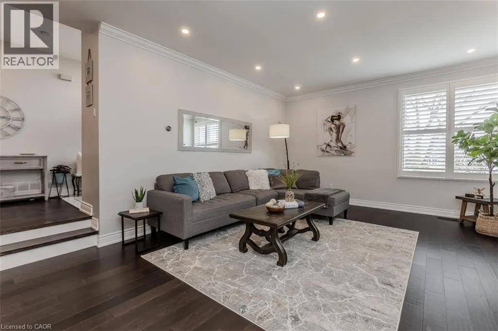 Upper Middle Rd to North on Cavendish Dr Welcome to this beautifully updated turnkey family home with standout curb appeal featuring a stone façade and stamped concrete walkway. Step inside to a spacious, light-filled interior with elegant and luxurious renovations at every turn. The open concept main floor welcomes you home with a gorgeous hardwood staircase and a formal dining room overlooking a huge sunken living room with a walkout to the backyardâperfect spaces for everyday living and entertaining family gatherings. The modern eat-in kitchen is designed with both style and function in mind, featuring granite countertops, soft close drawers, stainless steel appliances including gas range, a sleek tile backsplash and built-in wine storage. A convenient mudroom with built-in cabinets provides direct access to the 1.5-car garage, which accommodates one full-size vehicle and offers ample extra space for bikes, lawn accessories, workshop tools and more. Upstairs, the spacious primary retreat includes dual closets and a beautifully renovated 4-piece ensuite bath. Two additional well-sized bedrooms and a full 4-piece bathroom provide plenty of room for growing families. All bedrooms feature California shutters, upgraded baseboards and gleaming hardwood floors. The finished lower level expands your living space with a large recreation room anchored by a cozy brick-surround gas fireplace, above grade windows, an additional bedroom (no closet), a 2-piece bath, utility/laundry and crawl space rooms for storage. Step outside to your private, fully fenced backyard oasis complete with landscaped patio, BBQ gas hookup, mature trees and green space for kids and pets to enjoy. The gentle steps between levels make this 3-level backsplit the ultimate bungalow alternative. Offering a perfect blend of comfort, and style this home is designed for modern family living. Ideally located close to top-rated schools, parks, amenities, transit and shopping. (id:27476)
