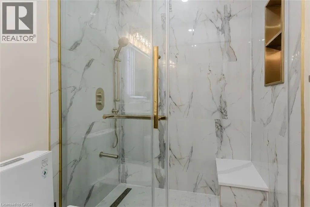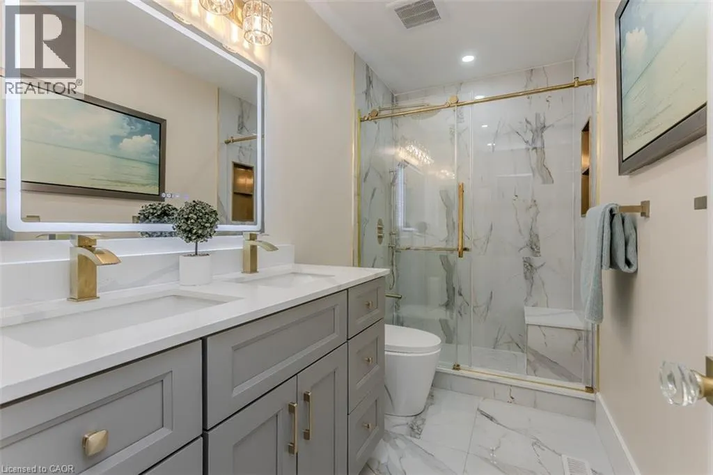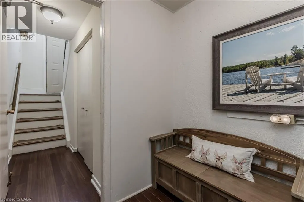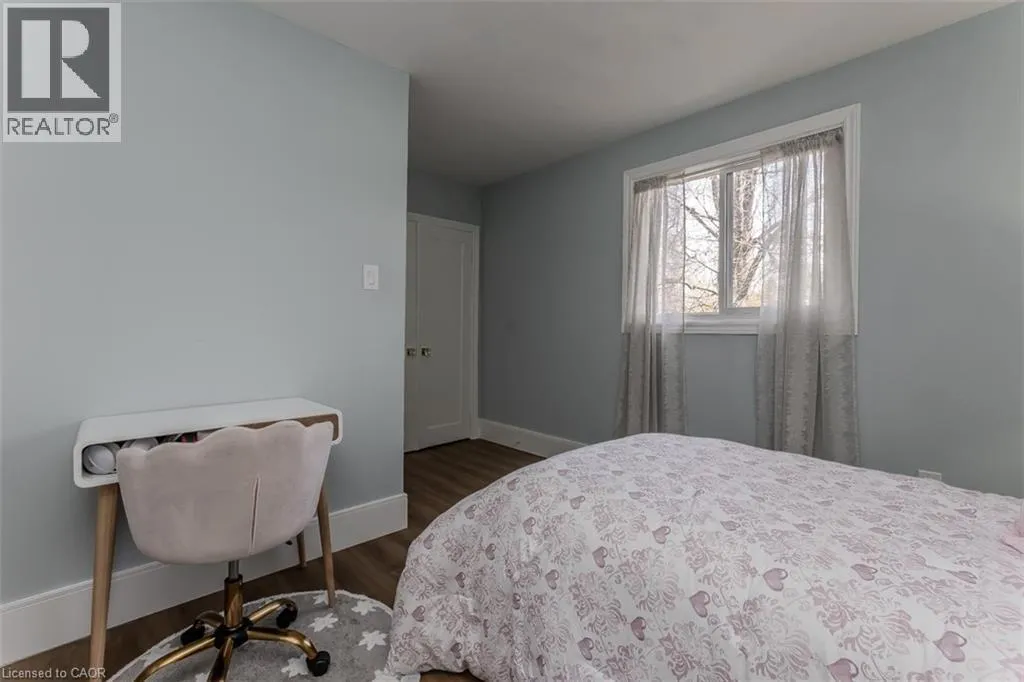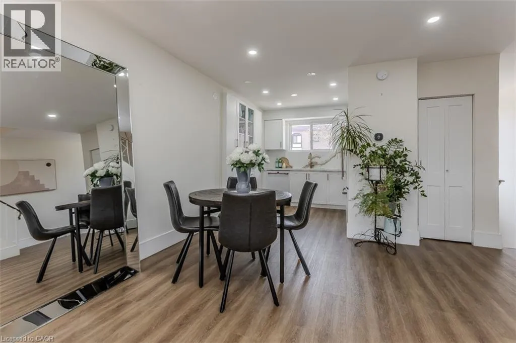 Welcome to this beautifully updated townhome offering the perfect blend of comfort, style, and locationâideal for new families seeking a vibrant lifestyle. Set in a highly desirable, family-friendly neighbourhood, youâre just a short walk to the lake, downtown, parks, and everyday amenities, with easy access to major highways for effortless commuting. From the moment you arrive, the home impresses with charming curb appeal, an inviting front walkway, and landscaped gardens with a retaining wall. With parking for up to three cars, convenience is built right in. Inside, the main level features a bright, open-concept layout with luxury vinyl flooring throughout, enhanced by newer interior doors, trim, and dimmable pot lights that create a warm and modern feel. The fully renovated kitchen is a standout, showcasing stylish finishes, quartz countertops and backsplash, custom cabinetry, and a built-in coffee bar with pot and pan drawersâperfect for both everyday living and entertaining. The dining area flows seamlessly into the spacious living room, complete with a walkout to the backyard. Step outside to your own private retreat. The fully fenced backyard offers mature trees for added privacy, a stamped concrete patio, and maintenance-free turfâperfect for relaxing, entertaining, or enjoying time with family. A convenient 2-piece powder room completes this level. Upstairs, hardwood continues throughout, leading to two generously sized bedrooms and a beautifully renovated 4-piece bathroom featuring contemporary large slab marble tile, a dual sink vanity, LED mirror, and a walk-in glass shower with bench seating. A move-in ready home in an unbeatable lifestyle locationâthis is one you wonât want to miss. (id:27476)