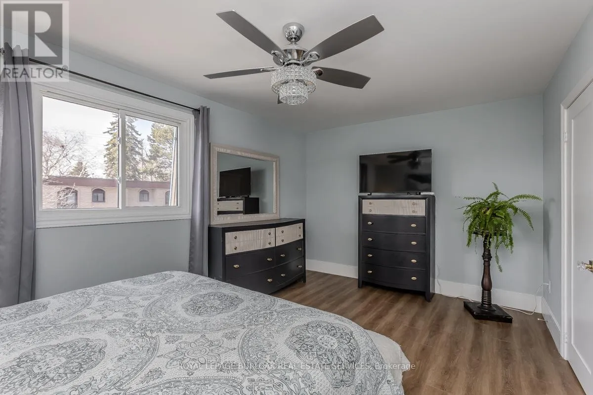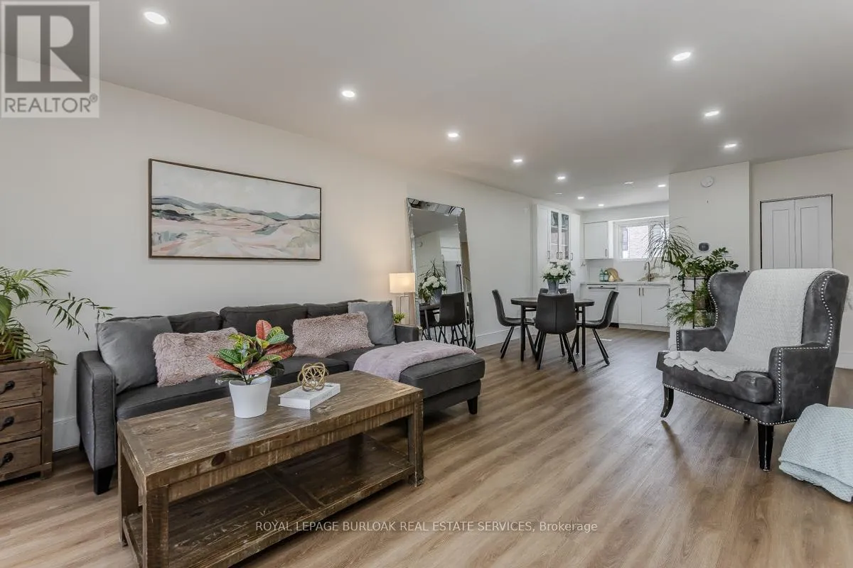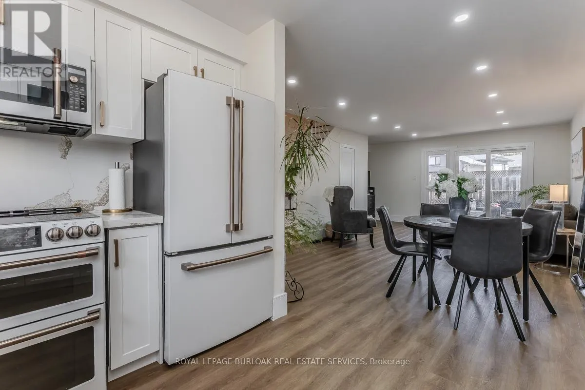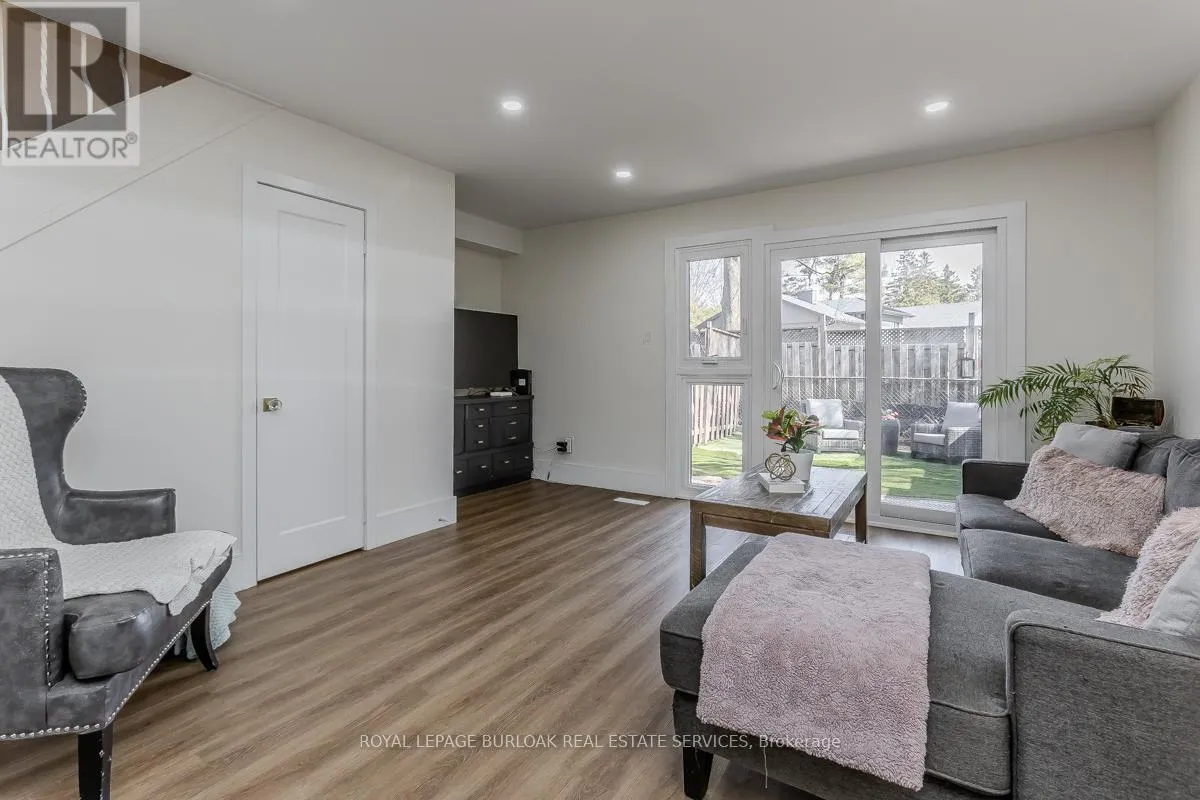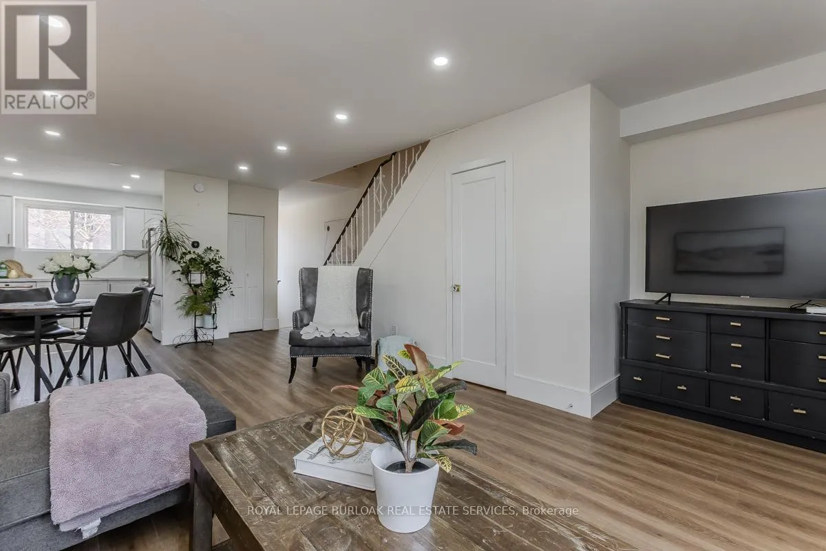 King Road & North Shore Blvd E Welcome to this beautifully updated townhome offering the perfect blend of comfort, style, and location-ideal for new families seeking a vibrant lifestyle. Set in a highly desirable, family-friendly neighbourhood, you're just a short walk to the lake, downtown, parks, and everyday amenities, with easy access to major highways for effortless commuting. From the moment you arrive, the home impresses with charming curb appeal, an inviting front walkway, and landscaped gardens with a retaining wall. With parking for up to three cars, convenience is built right in. Inside, the main level features a bright, open-concept layout with luxury vinyl flooring throughout, enhanced by newer interior doors, trim, and dimmable pot lights that create a warm and modern feel. The fully renovated kitchen is a standout, showcasing stylish finishes, quartz countertops and backsplash, custom cabinetry, and a built-in coffee bar with pot and pan drawers-perfect for both everyday living and entertaining. The dining area flows seamlessly into the spacious living room, complete with a walkout to the backyard. Step outside to your own private retreat. The fully fenced backyard offers mature trees for added privacy, a stamped concrete patio, and maintenance-free turf-perfect for relaxing, entertaining, or enjoying time with family. A convenient 2-piece powder room completes this level. Upstairs, hardwood continues throughout, leading to two generously sized bedrooms and a beautifully renovated 4-piece bathroom featuring contemporary large slab marble tile, a dual sink vanity, LED mirror, and a walk-in glass shower with bench seating. A move-in ready home in an unbeatable lifestyle location-this is one you won't want to miss. (id:27476)