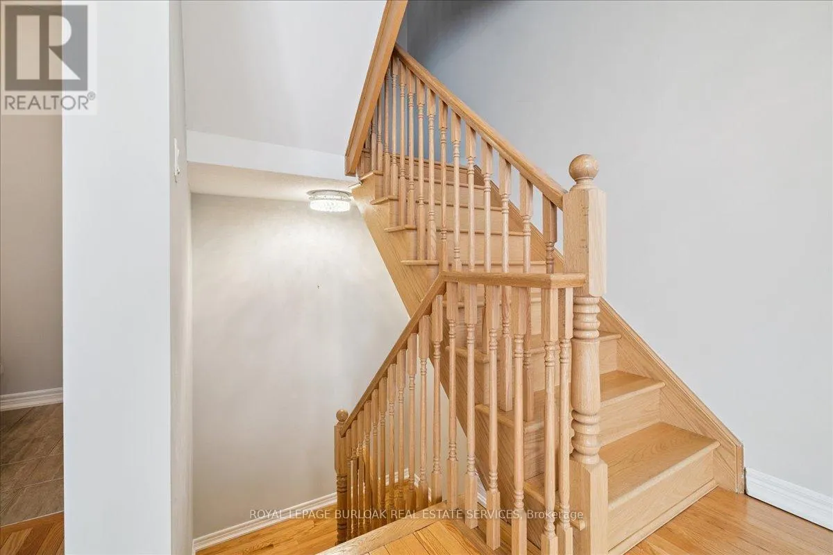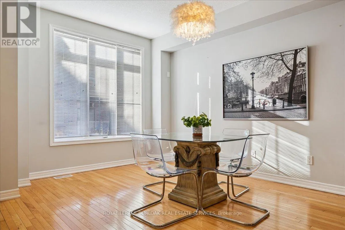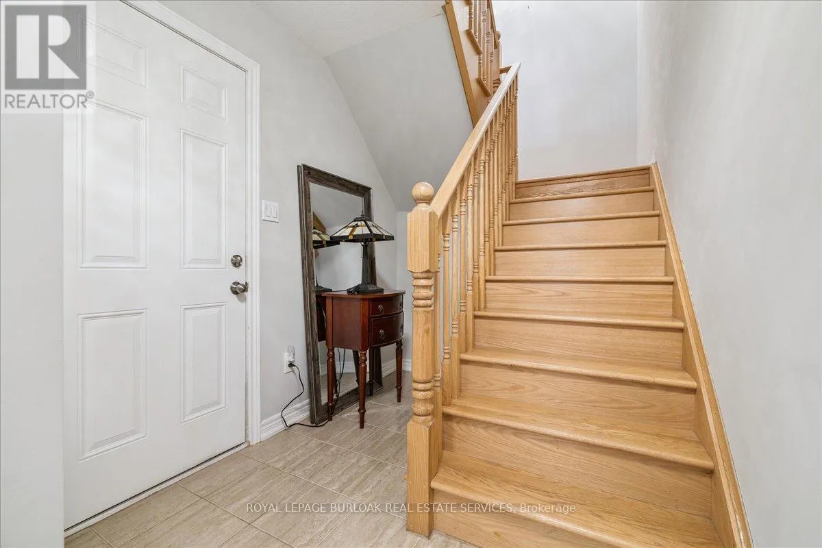 Cross Streets: Daryl Drive. ** Directions: Plains Road West right at Daryl Drive. Beautiful and spacious Dawn Victoria townhouse with a very low condo fee. Perfectly located in Aldershot especially for the Go Train commuter. City bus route steps away. Sought after Aldershot with schools, shopping , RBG walking trails ,McMaster University and major highways all close by. Sun Drenched open concept main level boasting 9' ceilings and sliding doors to 10.4 x 8' covered terrace. Large windows bringing in the natural light. Breakfast bar countertop in the kitchen. Hardwood flooring thru out the townhouse and Oak hardwood staircase. A carpet free living space. Large Primary Bedroom with a generous size walk-in closet. Bedroom level laundry closet in the hall. Inside Entry from the Garage in the large ceramic tile entry foyer. Furnace and utility room off foyer. A spacious well appointed living space perfectly for someone on the go and want to live a low maintenance lifestyle. Don't miss this opportunity to live your best life. Plenty of visitor parking, pet relief area. (id:27476)