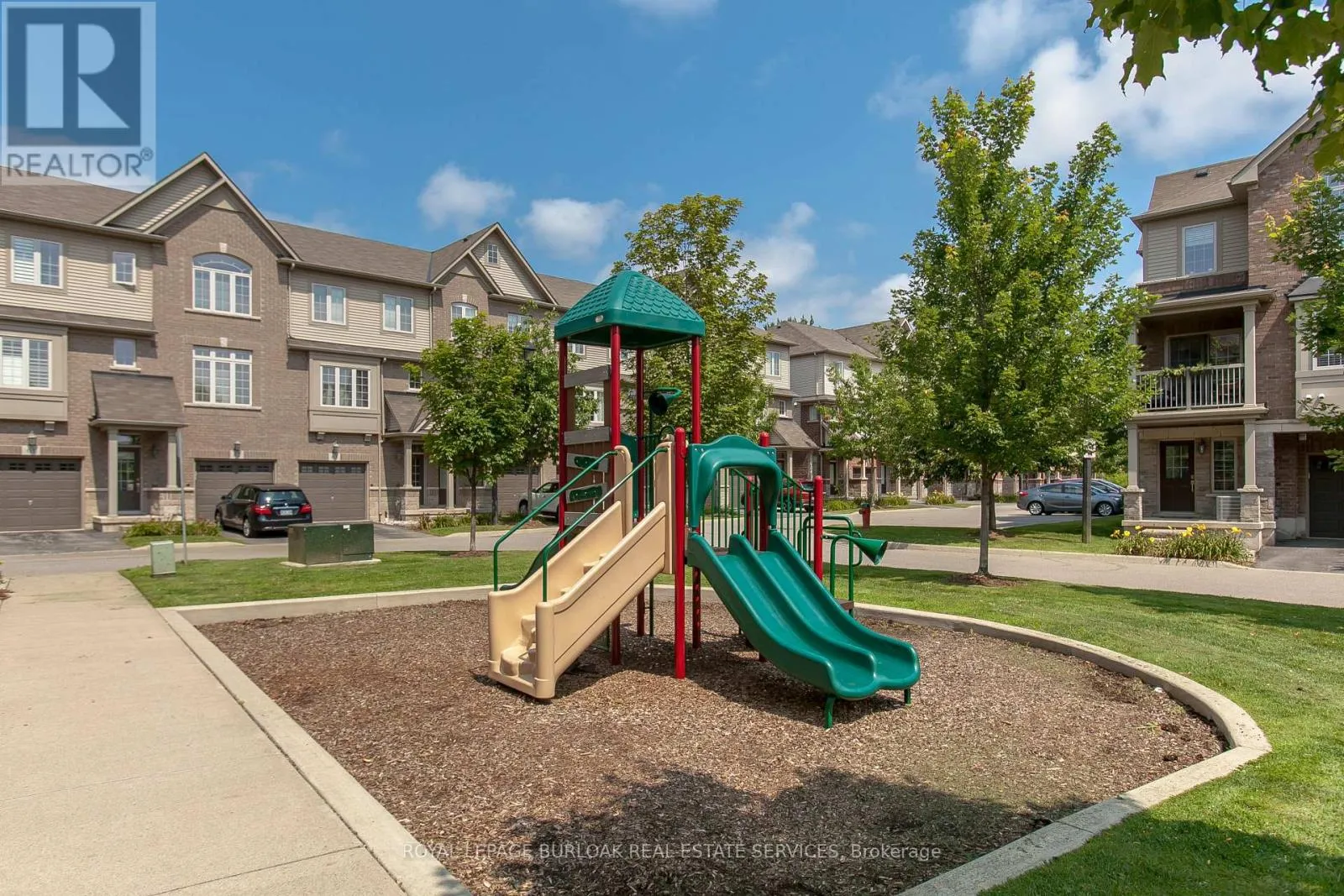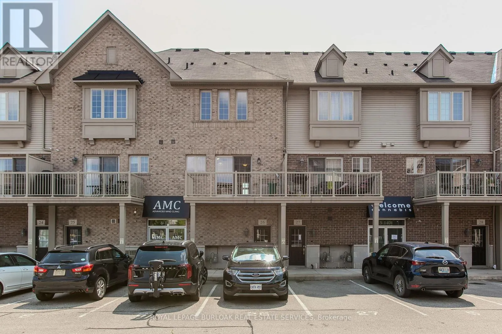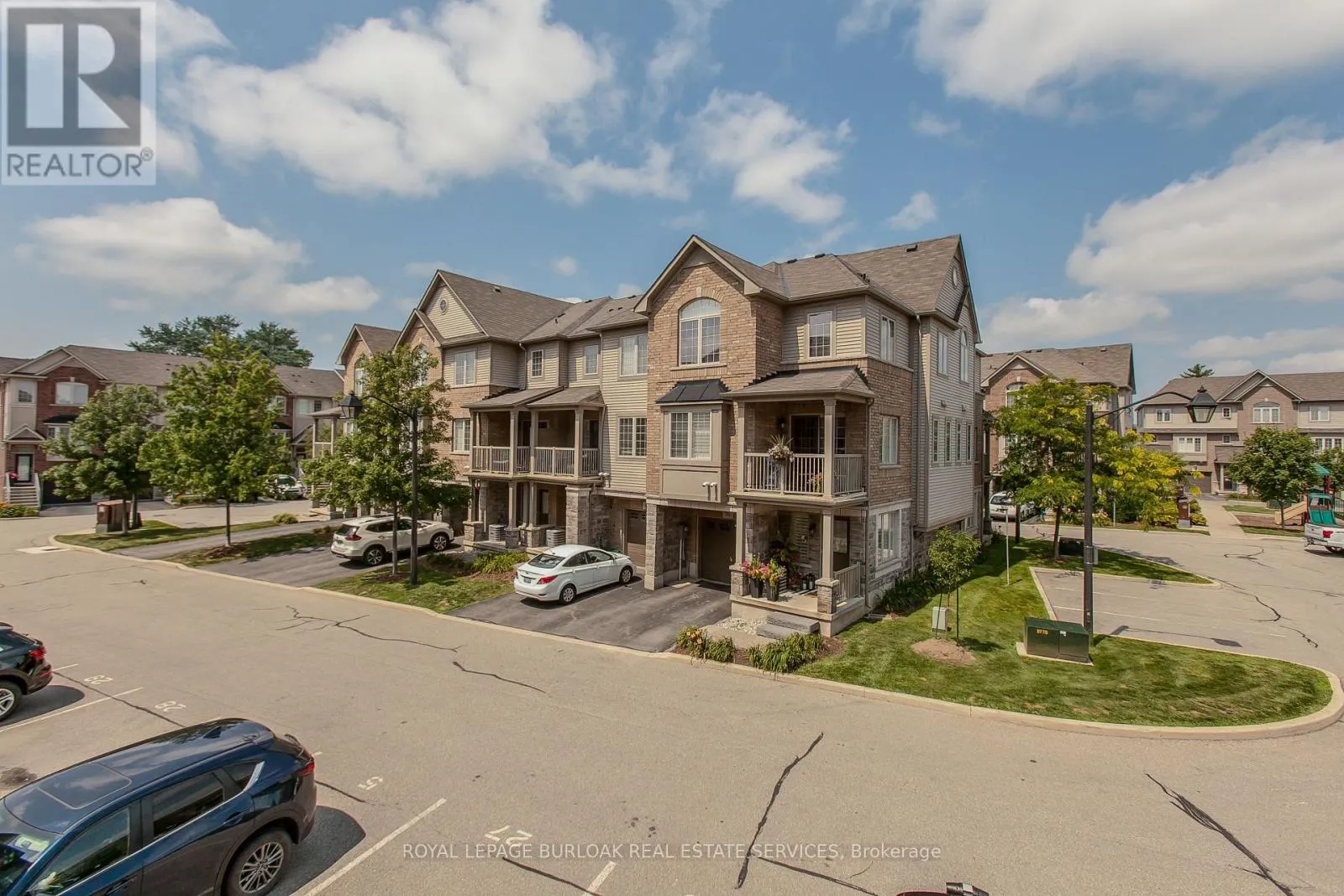Brant and Plains Welcome to easy, low-maintenance living in a well-maintained stacked townhouse condo, perfectly suited for first-time buyers, downsizers, or small families looking to enjoy a vibrant lifestyle. Ideally located in a prime Burlington neighbourhood, you're just minutes from the lake, downtown core, shopping, dining, parks, and scenic trails, with quick access to major highways and the GO Station, making daily commuting and weekend outings effortless. This thoughtfully updated home has been freshly repainted throughout and features modern light fixtures, creating a bright and inviting atmosphere from the moment you step inside. The main level offers a welcoming foyer, while the second level showcases a spacious, open-concept layout with hardwood flooring throughout-perfect for both everyday living and entertaining. The expansive living room is filled with natural light and offers plenty of space for cozy movie nights or hosting family and friends. The kitchen is both functional and stylish, complete with stainless steel appliances, rich wood cabinetry, tile backsplash, and a peninsula with ample prep space. The adjoining dining area features a walkout to a private balcony-ideal for enjoying your morning coffee or unwinding at the end of the day. Upstairs, you'll find a spacious primary bedroom with dual closets and a 4-piece ensuite, along with a second well-sized bedroom and an additional full bathroom-perfect for growing families or guests. Convenient bedroom-level laundry adds everyday ease. Enjoy added perks, including a dedicated parking space, visitor parking, and a children's playground right on-site. A fantastic opportunity to step into a connected, lifestyle-driven community with everything you need just moments away. (id:27476)